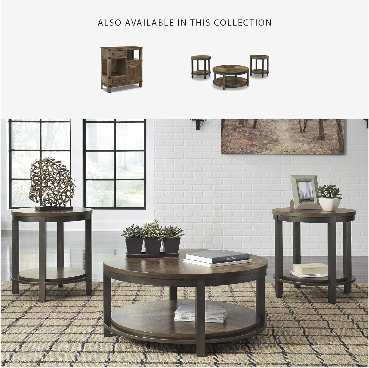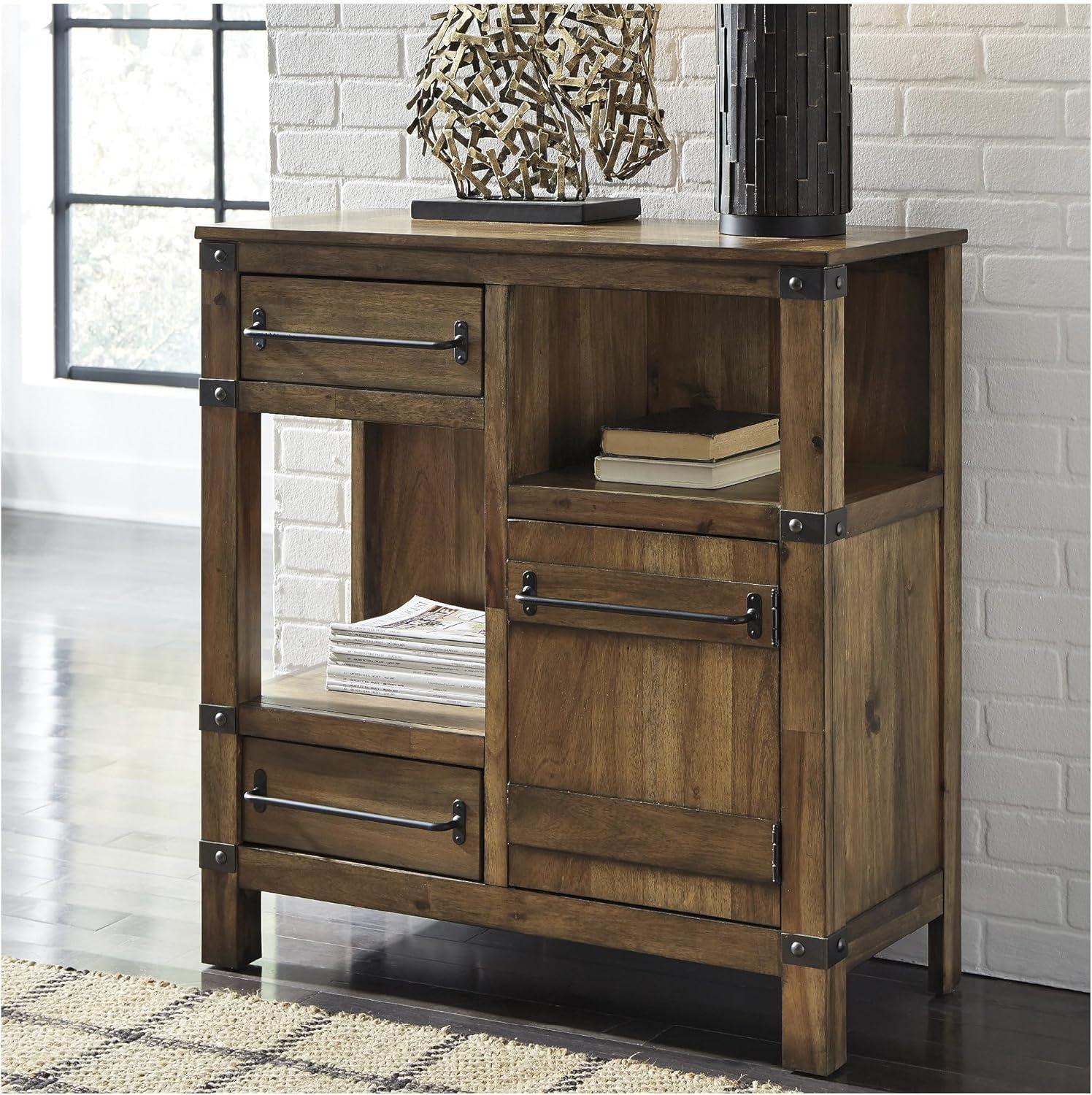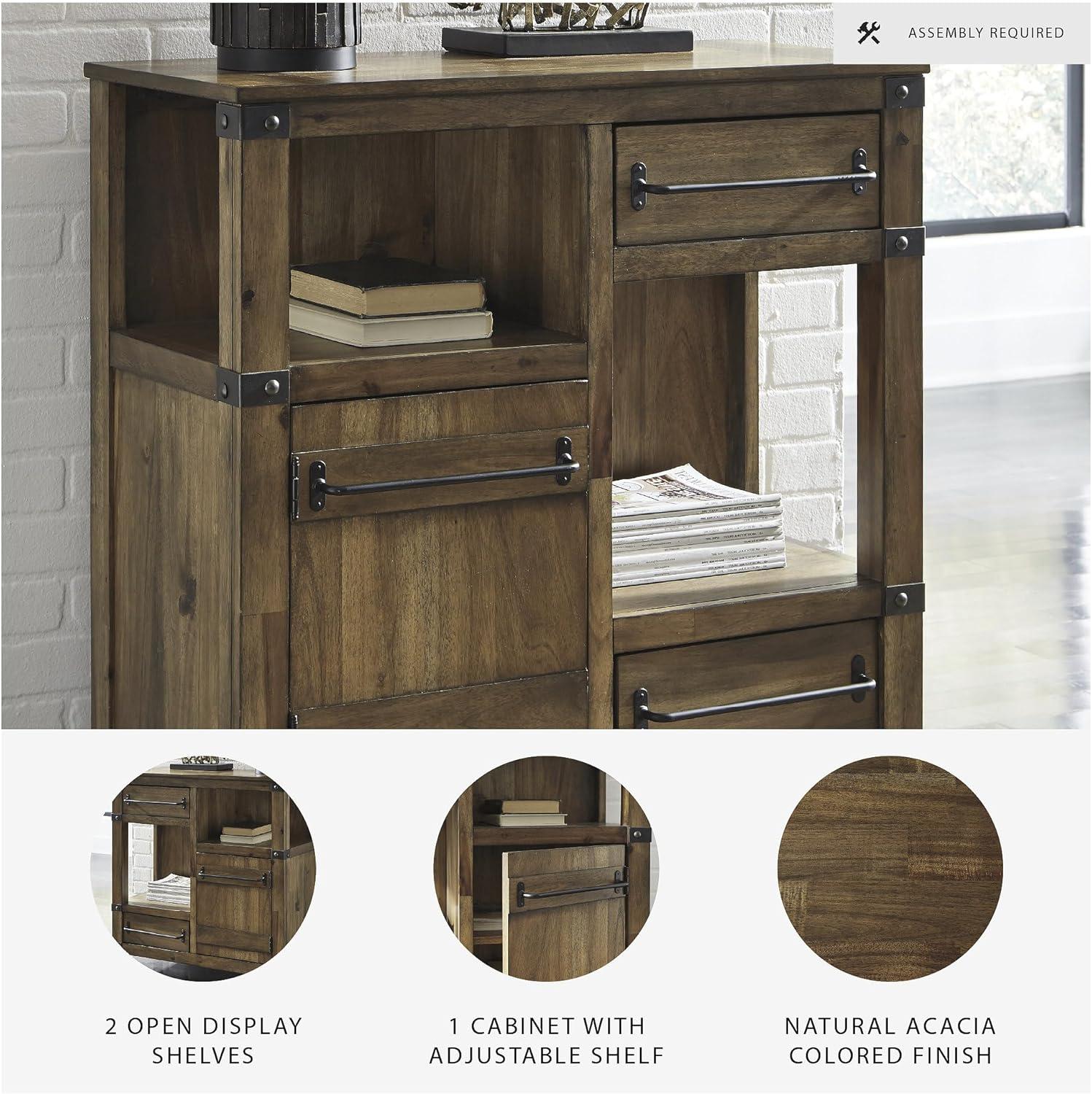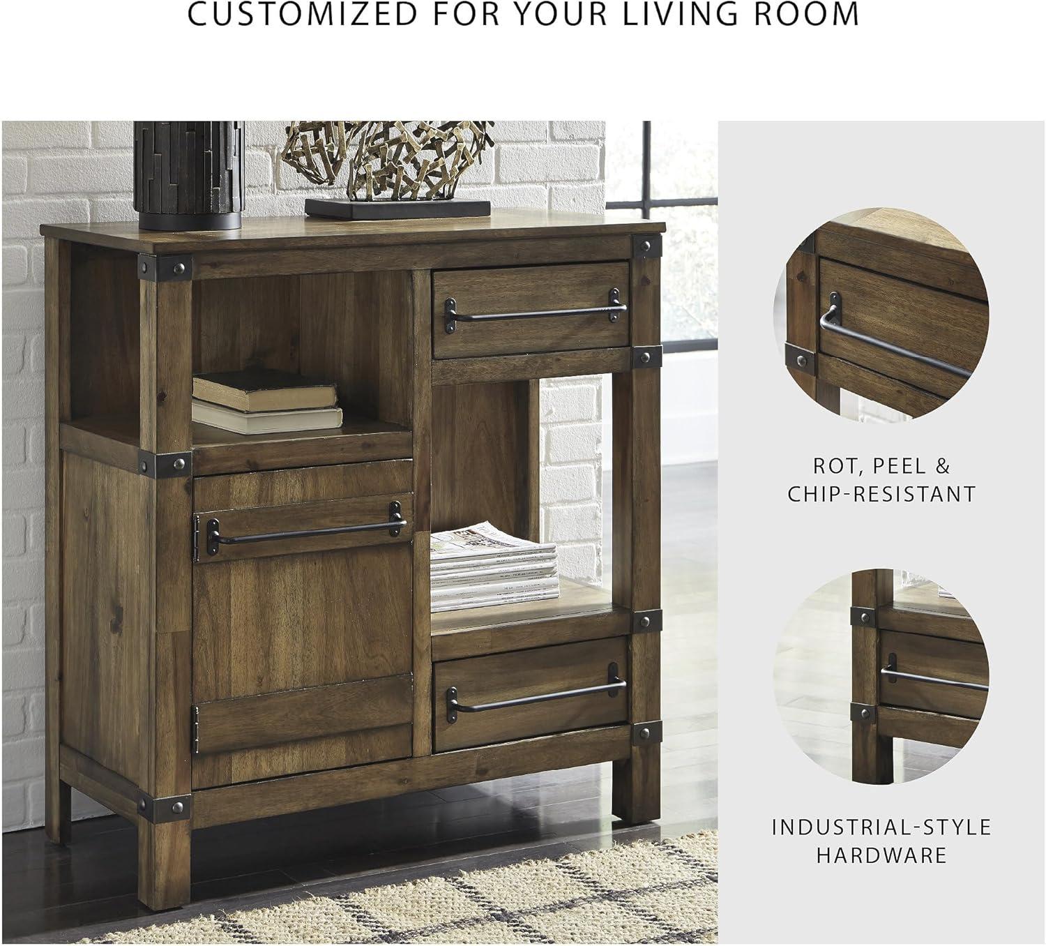 Signature Design by Ashley Roybeck Industrial Accent Cabinet with 2 Shelves, 1 Adjustable Shelf and 2 Drawers, Light Brown(Modern Farmhouse)