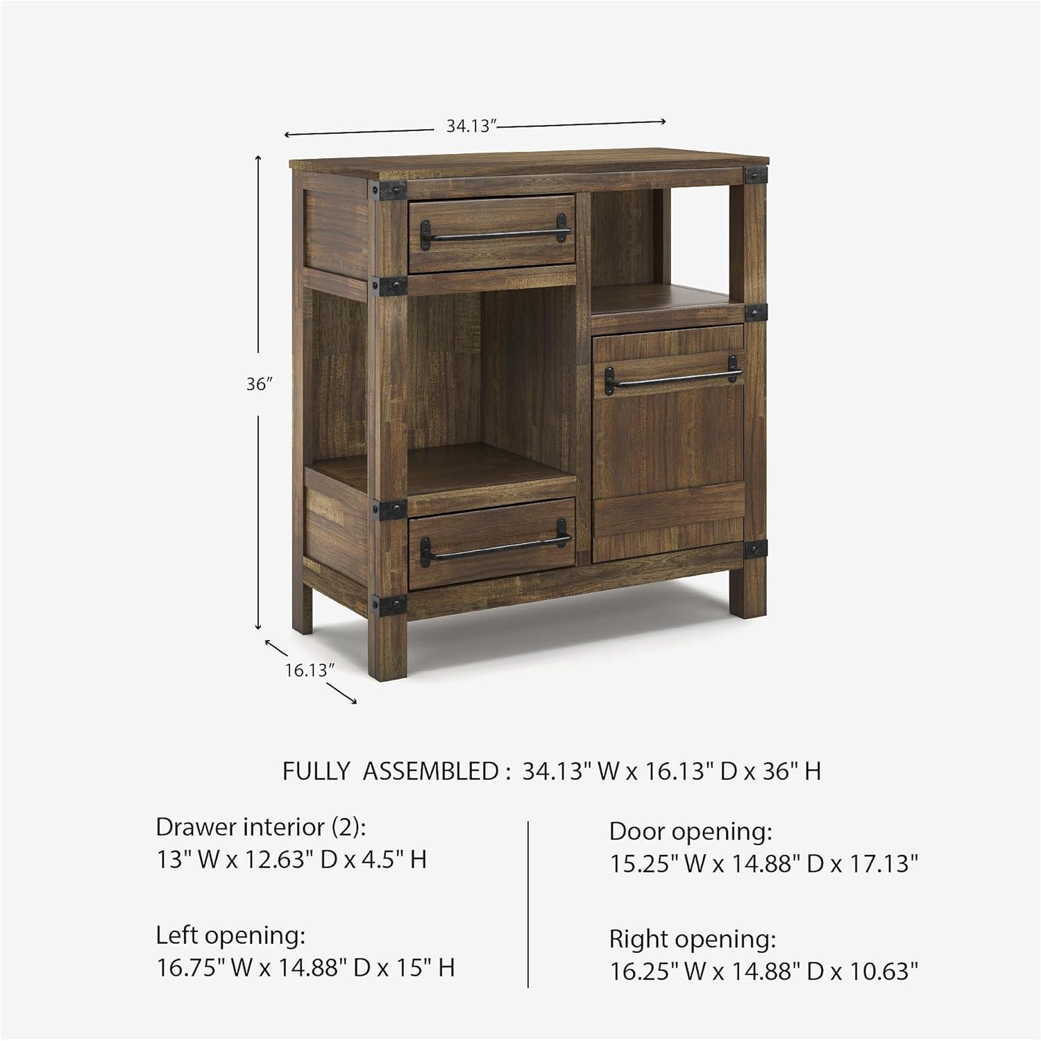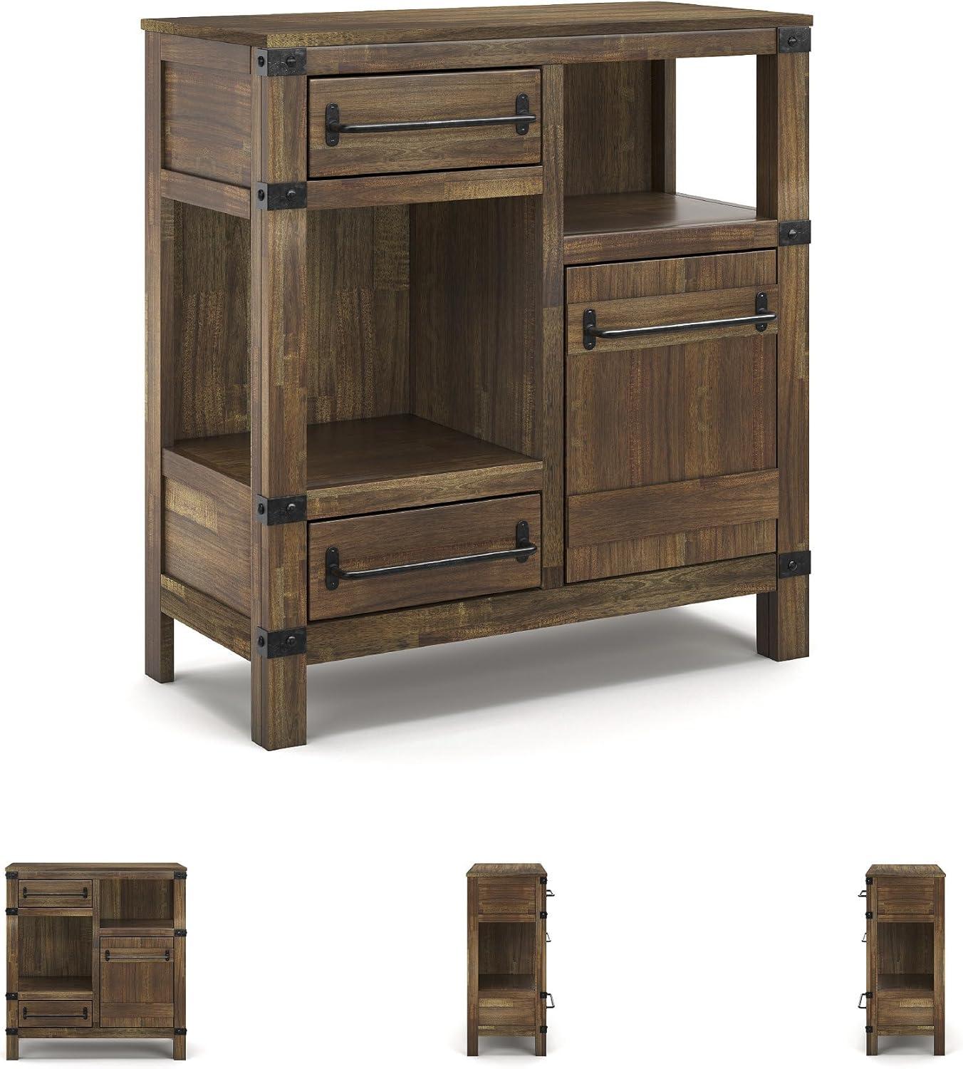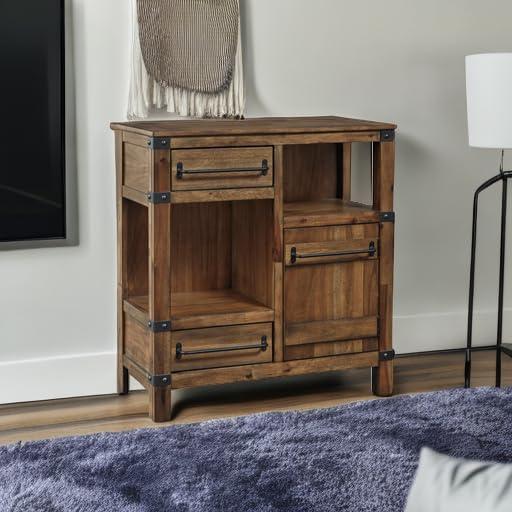 Accentuate your affinity for modern farmhouse living with this accent cabinet. Distinctive features include a natural acacia colored finish, dark bronze-tone industrial hardware and a butterfly matched inlay pattern that’s a work of art. Merging drawer and cabinet storage with open display space, this richly crafted cabinet is loaded with possibilities. From coats and boots to purses and backpacks, accent cabinets and entryway cabinets are the perfect pieces to attractively and efficiently store your on-the-go items. We offer a large variety of entryway storage cabinets, including accent cabinets with doors and accent cabinet with drawers. With so many high-quality, durable, and beautiful items, it’s easy to make a first impression with our entryway furniture.