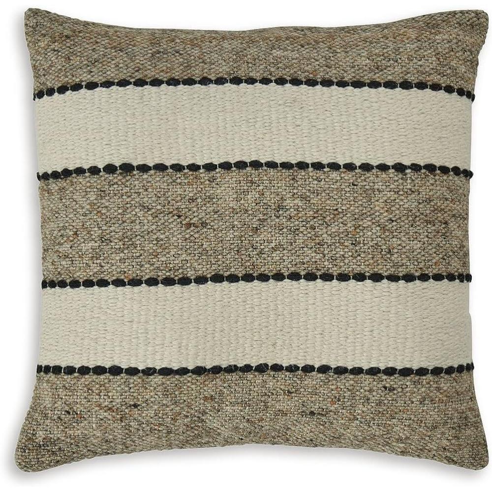 Signature Design by Ashley Rueford Antique Indoor Striped 20 x 20 Inches Pillow with Zipper Closure, Beige & Dark Brown(Square)
