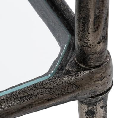CLASSIC DESIGN: Made with sand casted aluminum in an antiqued brass-tone finish for an edgy look. 5 clear glass shelves make a perfect perch for books, picture frames and a potted plant or two