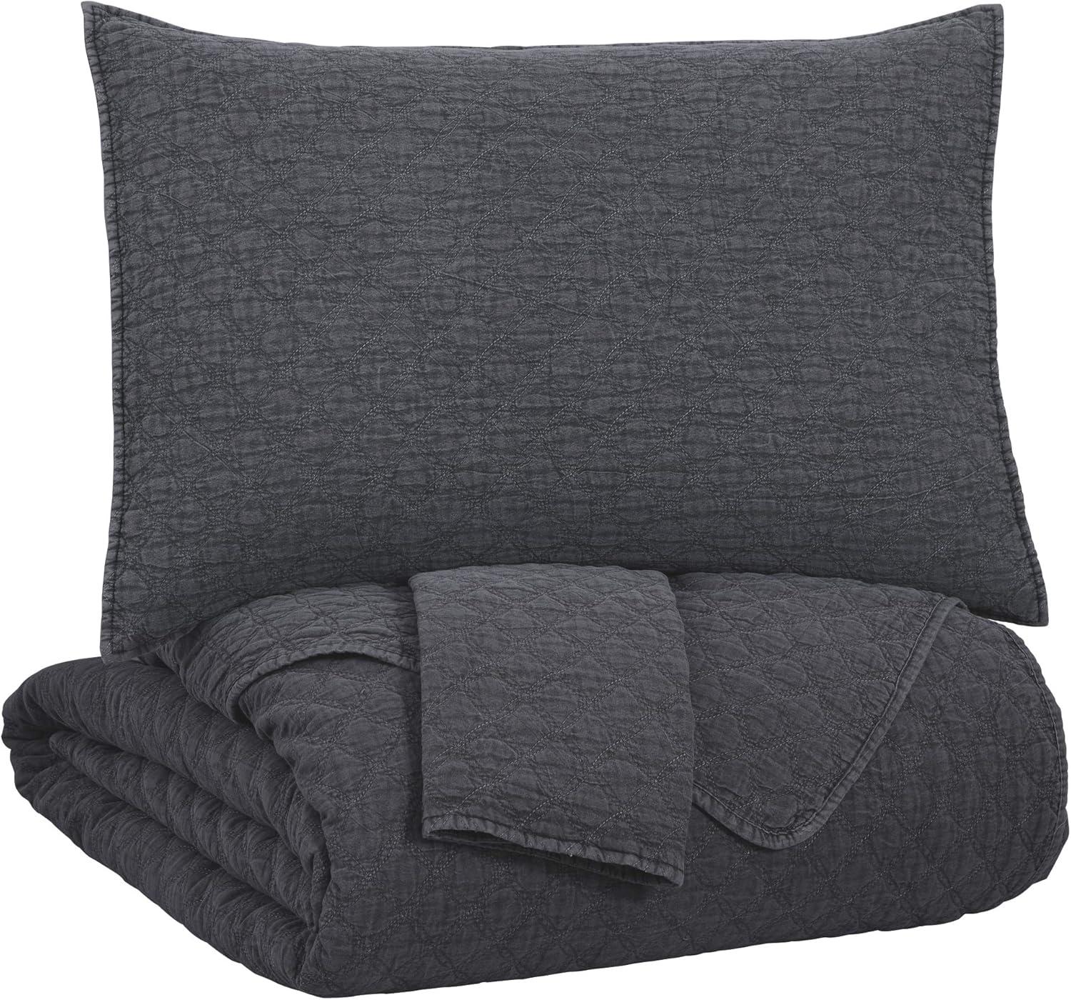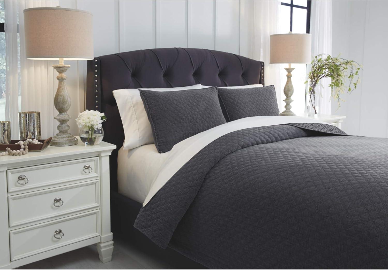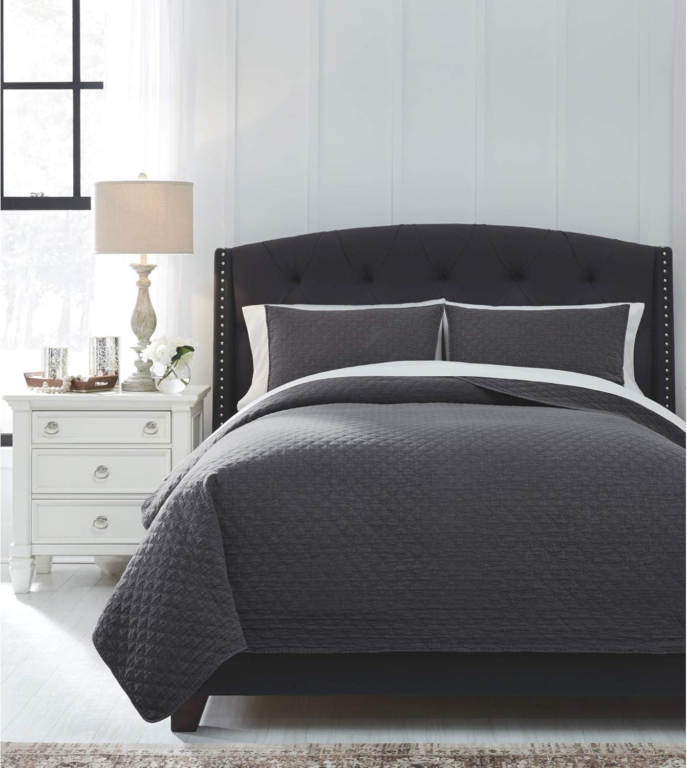Signature Design by Ashley Ryter Modern Stitched Diamond Design King Coverlet with Two Shams Set, Gray(Charcoal)