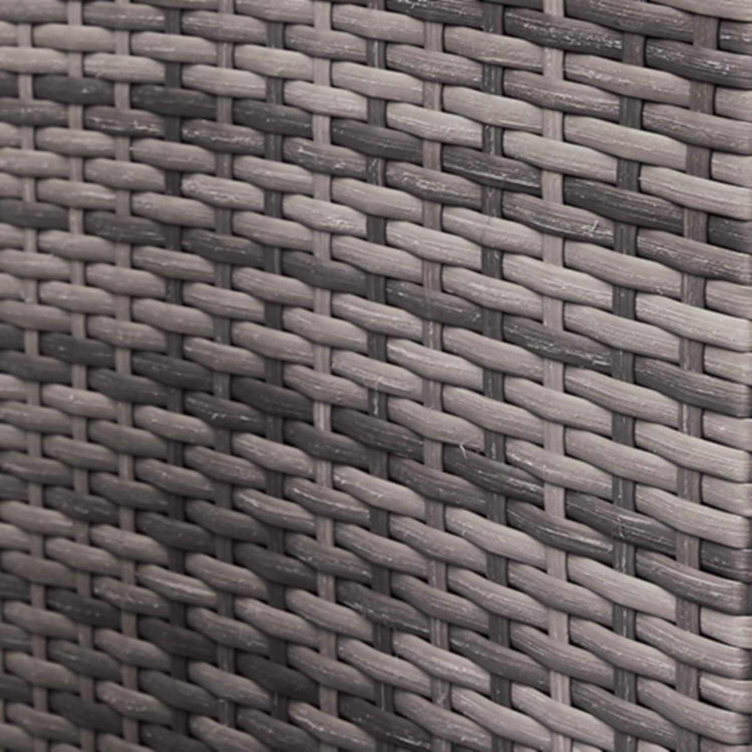 QUALITY FURNITURE All-weather design includes handwoven resin wicker over rustproof aluminum; foam cushions with Nuvella polyester fabric cover the sturdy frame