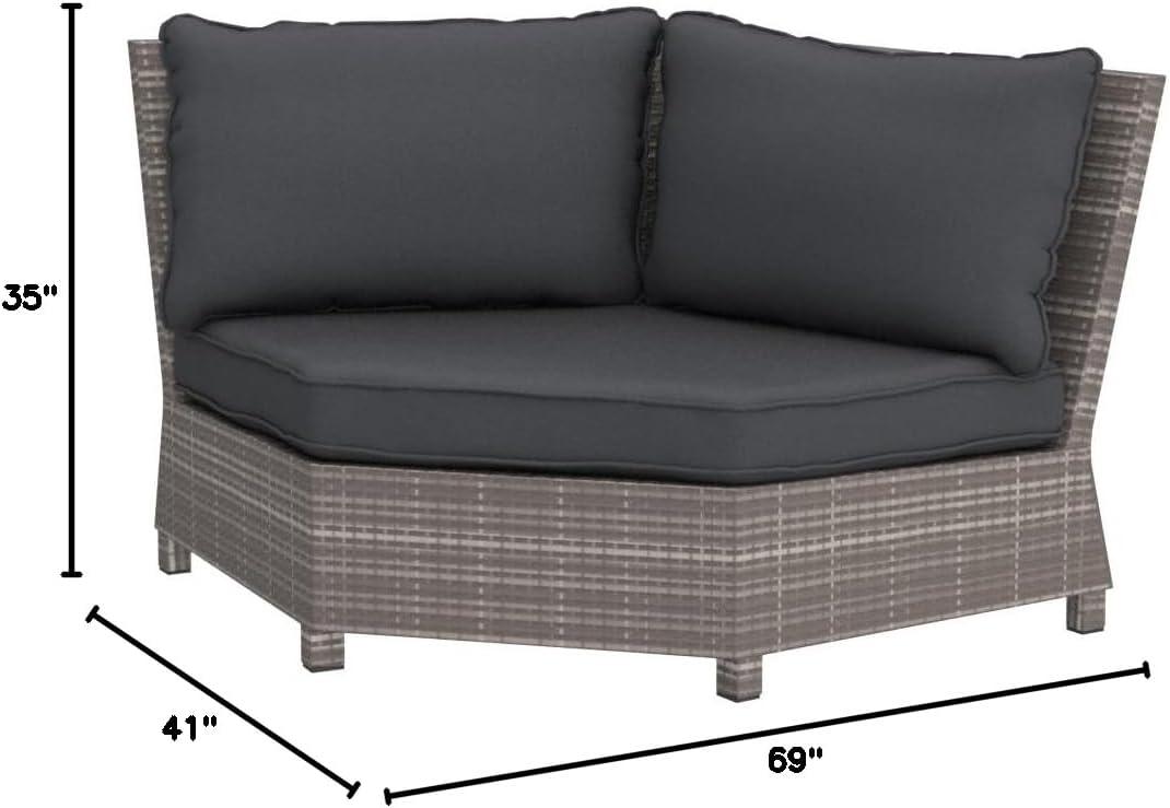 Bring a coastal cool vibe to your outdoor living space with this cushioned corner seat. What looks like rattan is actually handwoven resin wicker in gray with all-weather protection. Rest assured, the gorgeous blue-gray cushions are covered in Nuvella® fabric that weathers the elements and is a breeze to clean. Concealed frame is powder coated for seasons of carefree use. With patio chairs and tables, you have all the ingredients needed for an engaging, fun-filled evening flavored with plenty of entertainment. For the very best in value, selection and price, we're your go-to destination for the finest in elegant alfresco living.