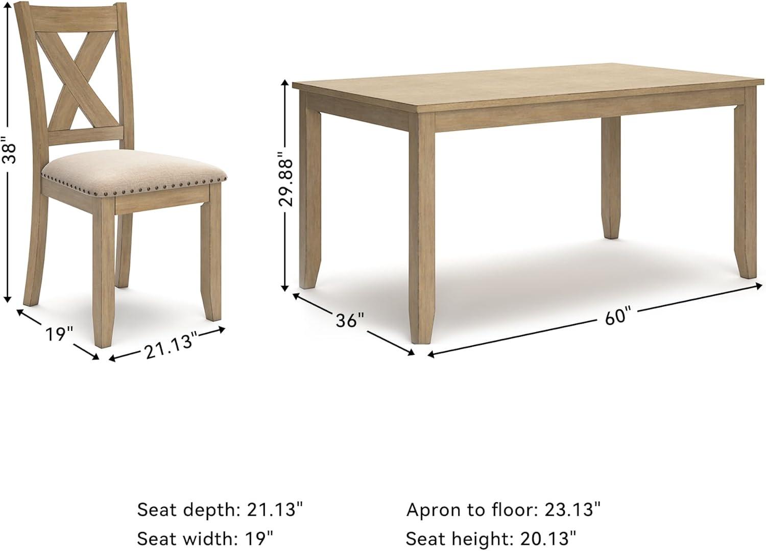 Signature Design by Ashley Sanbriar Casual Dining Table and Upholstered Chairs with Nailhead Trim, Set of 7, Light Brown & Beige(Light Brown)
