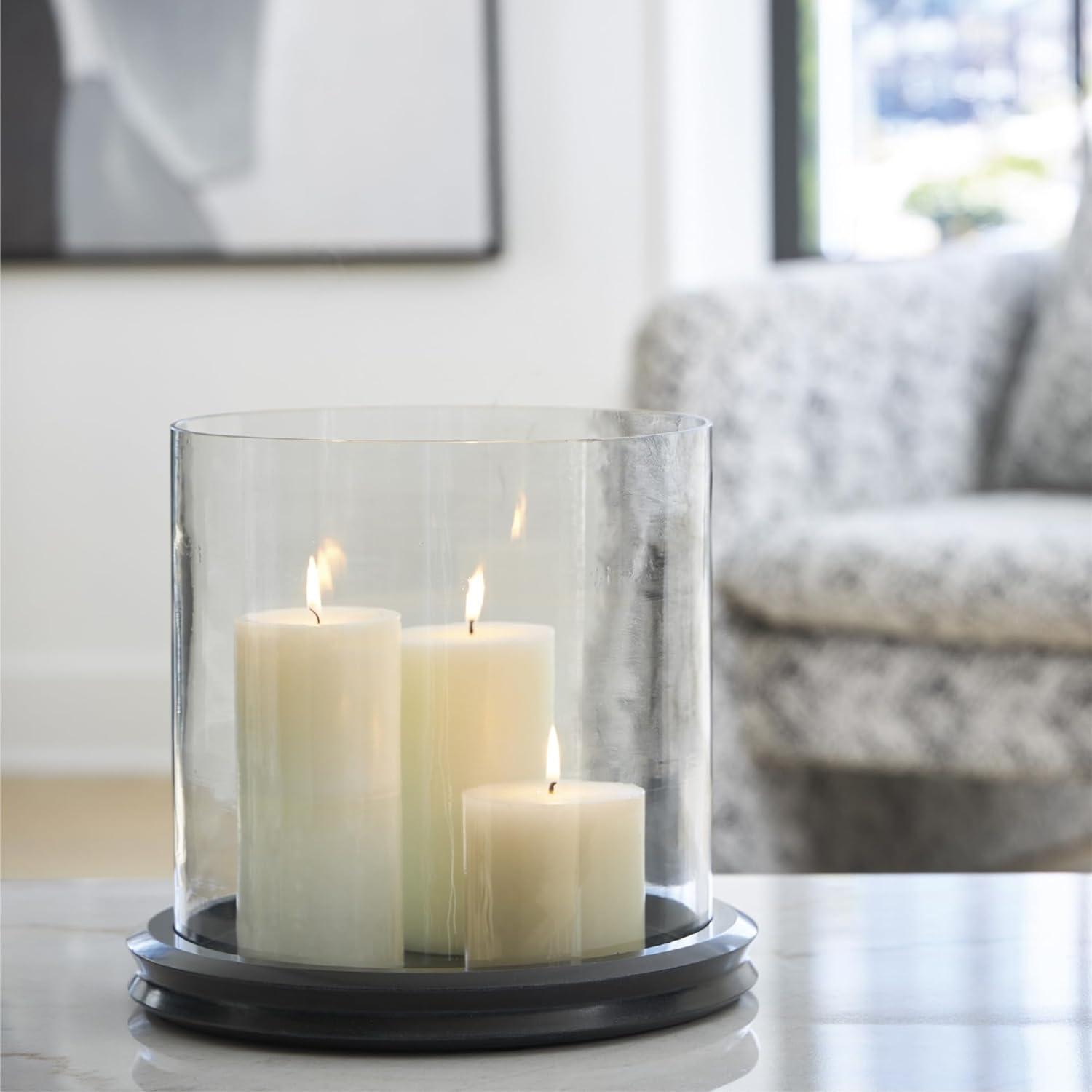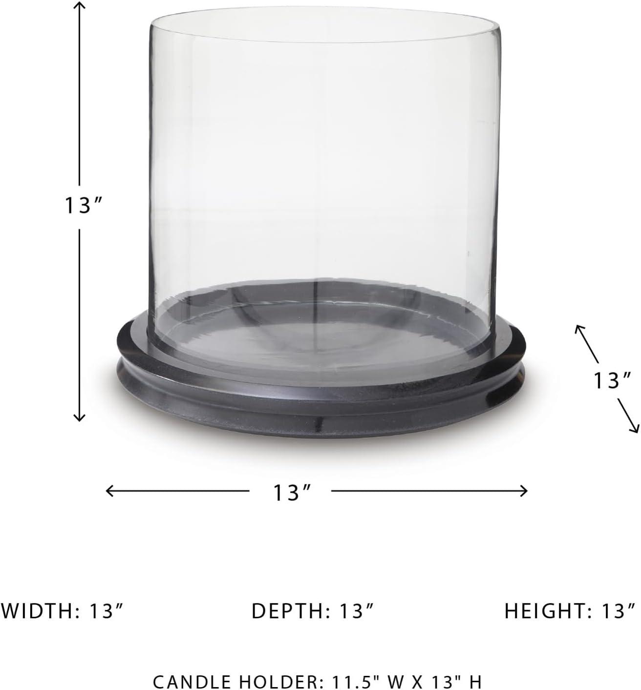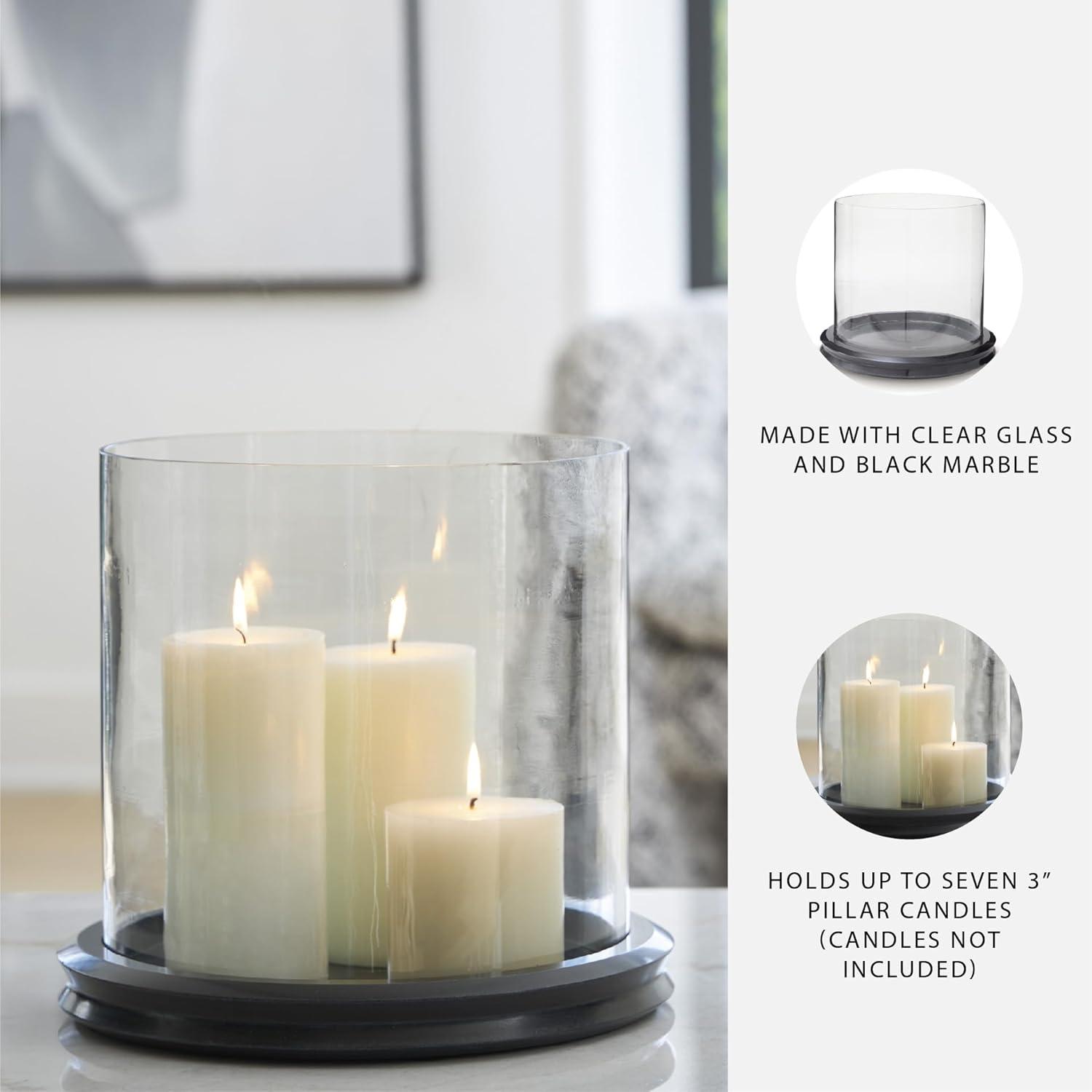 Signature Design by Ashley Saskia Casual Candle Holder with Marble Base, Beige & Clear(Black & Clear)