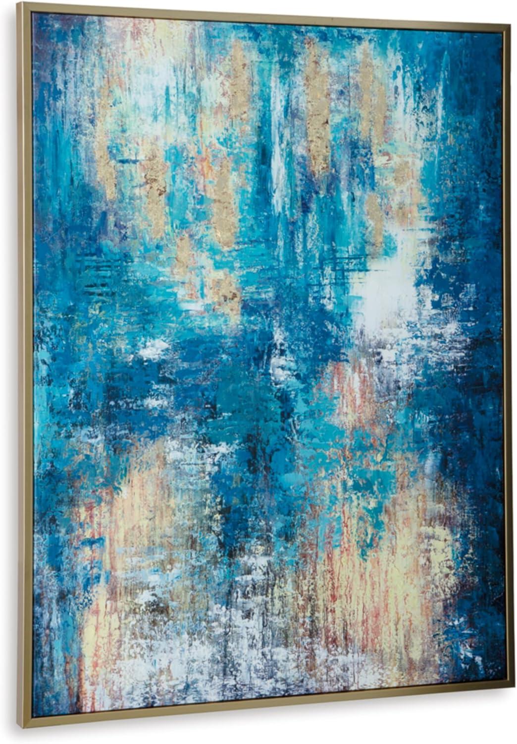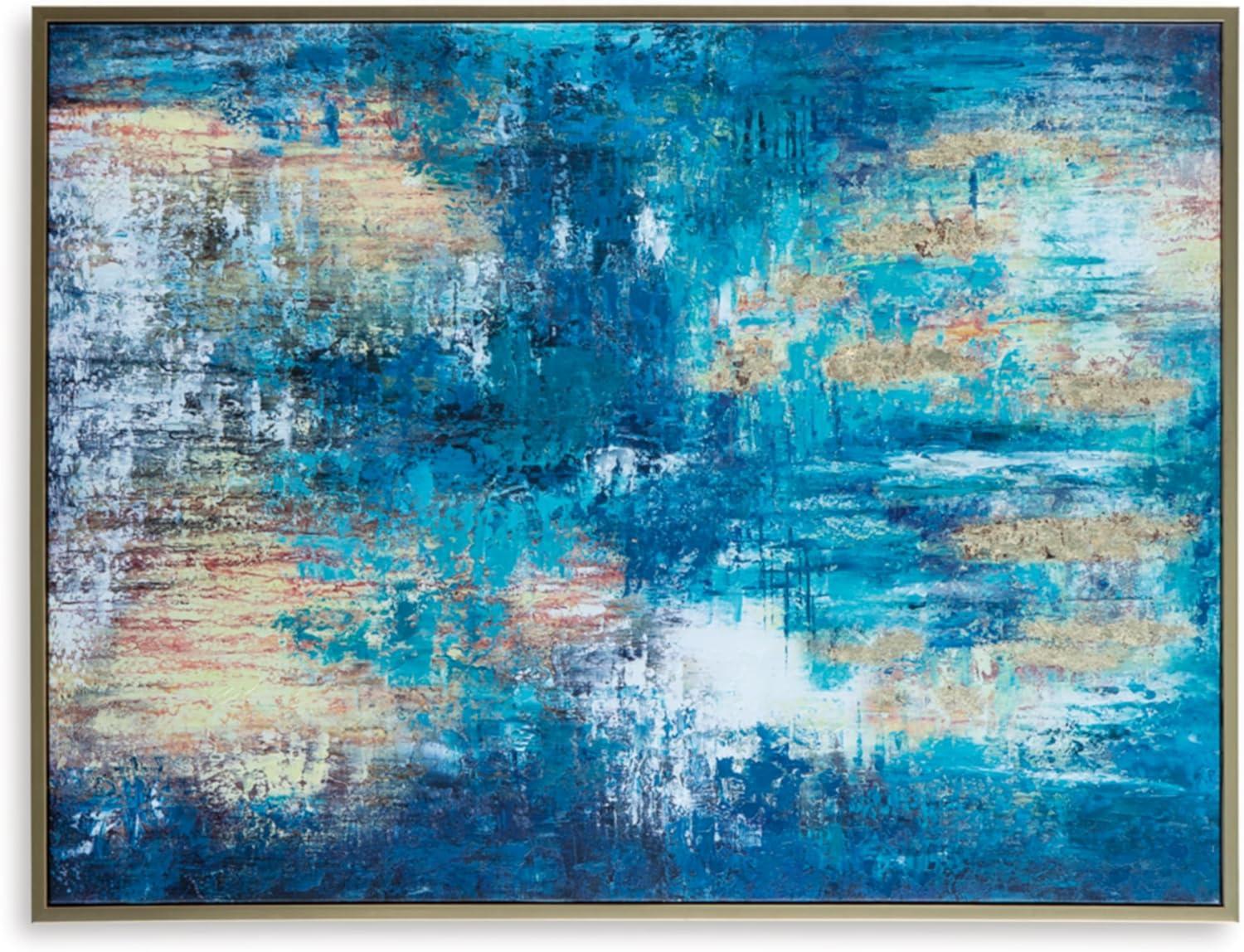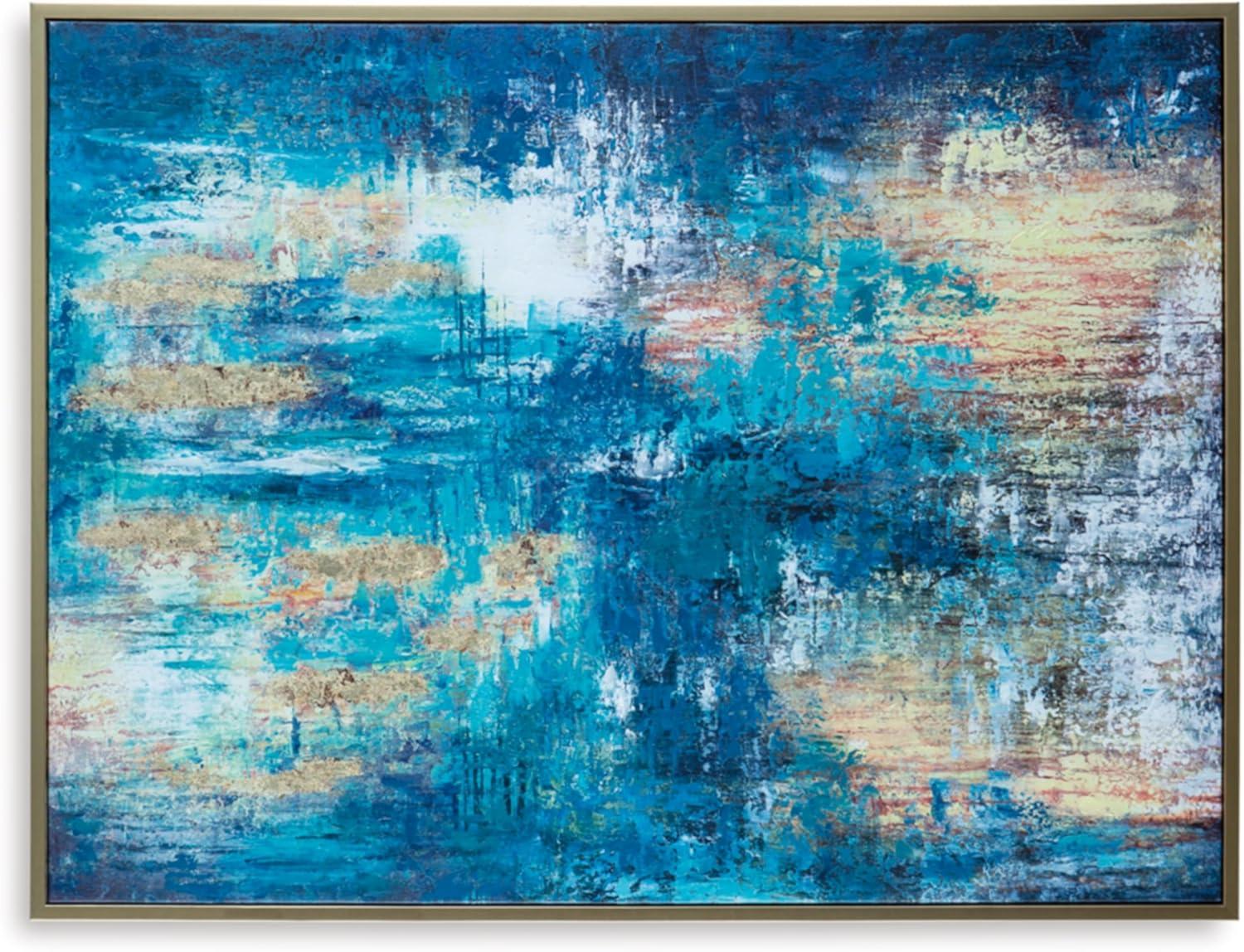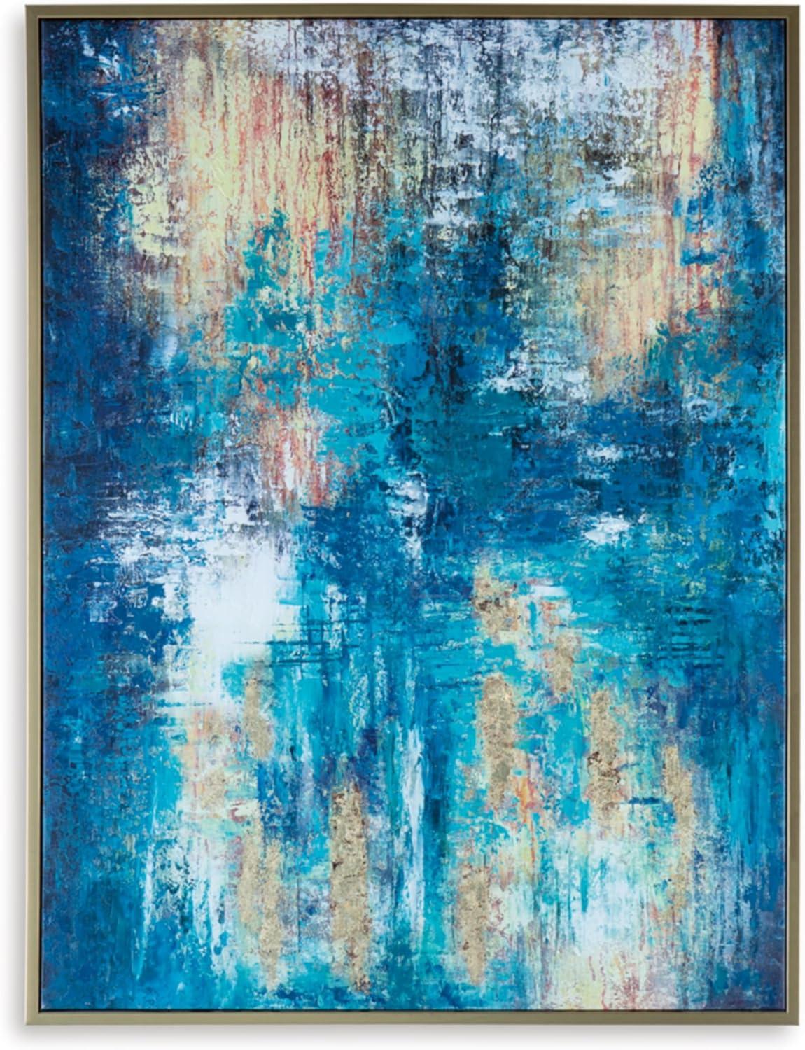 Signature Design by Ashley Scarlite Contemporary Rectangular Abstract Hand-painted Wrapped Canvas Wall Art 36 x 48 Inches, Blue & Yellow