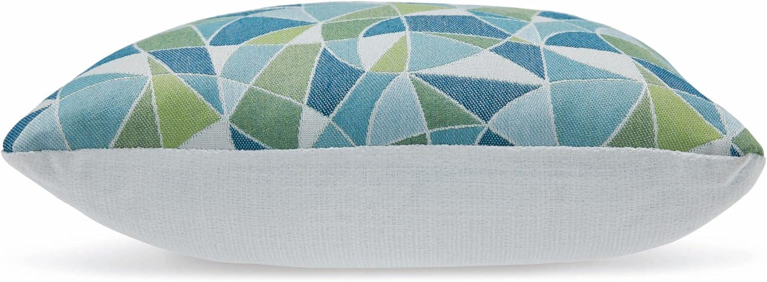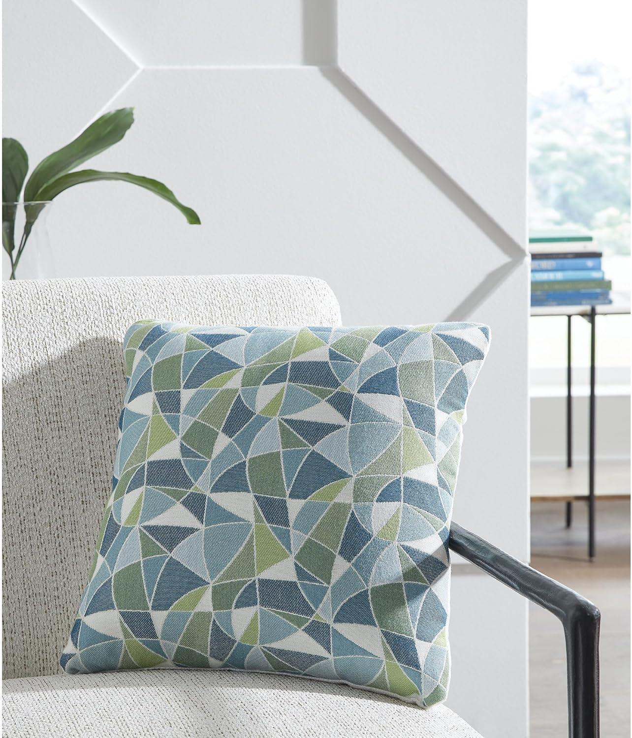 Signature Design by Ashley Seanow Next-Gen Nuvella Contemporary Indoor/Outdoor UV Resistant Geometric 18 x 18 Inches Pillow with Removable Cover and Zipper Closure, Green & Blue