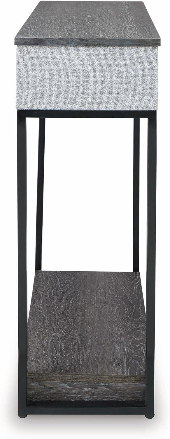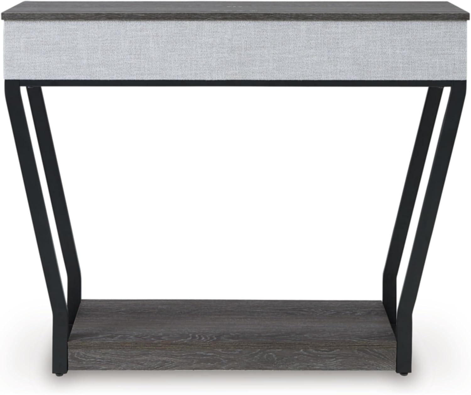 Signature Design by Ashley Sethlen Contemporary Console Sofa Table with Lower Shelf, Wireless Charging and USB-C Charging Ports, Gray & Black