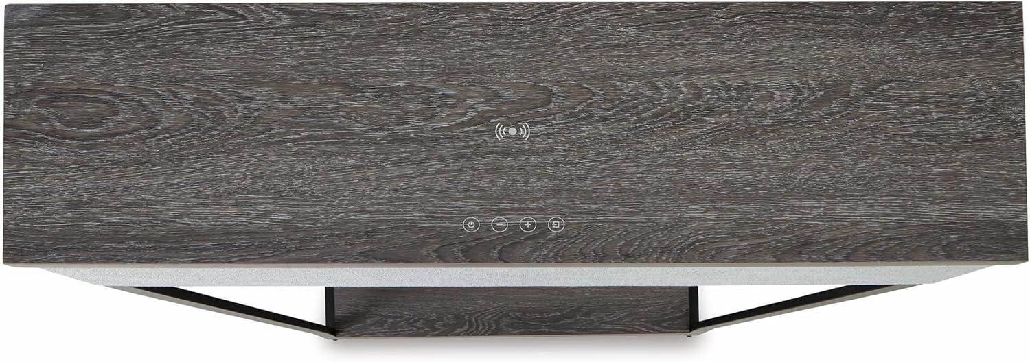 With its decidedly contemporary form, this console sofa table wows with subtly integrated functional features. Wirelessly connect your audio to its built-in speakers for ambiance as you host guests or relax solo. Need to charge up as you lounge? Rest this console against the back of your sofa to keep its wireless and USB charging options in reach. The table's spacious top and lower shelf leave plenty of room to customize the look with your favorite decorative accents. Signature Design by Ashley is a registered trademark of Ashley Furniture Industries, Inc.
