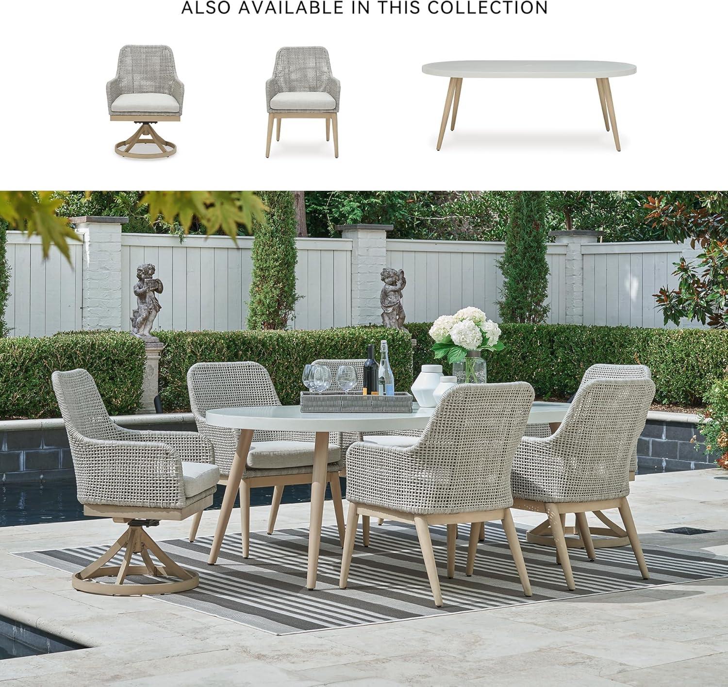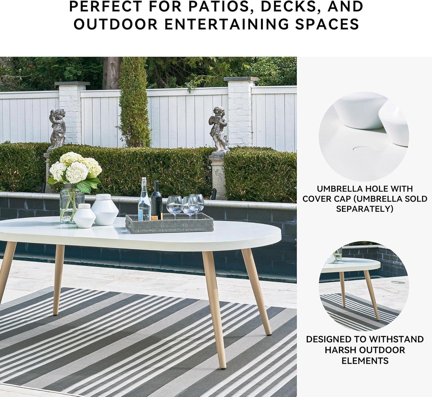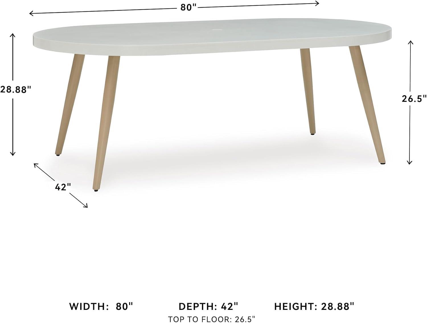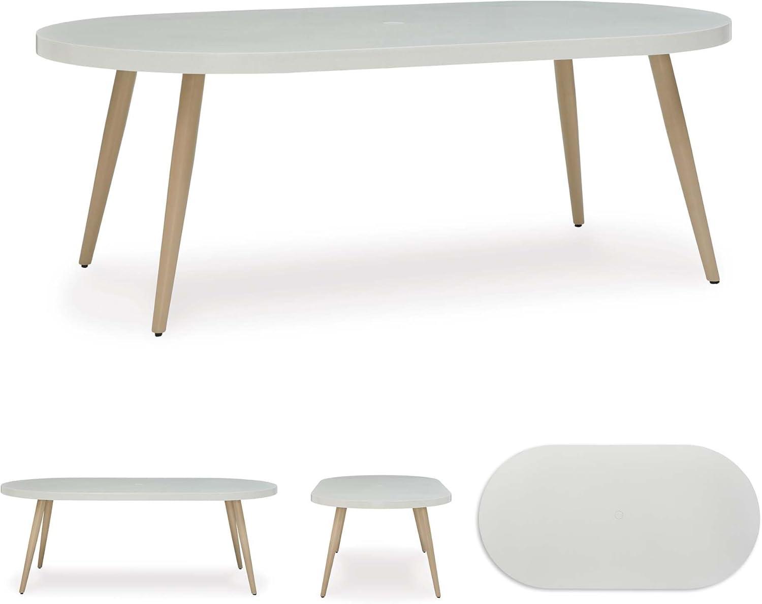Signature Design by Ashley Seton Creek Casual Aluminum Outdoor Dining Table with Umbrella Hole and Cover Cap, White & Light Brown