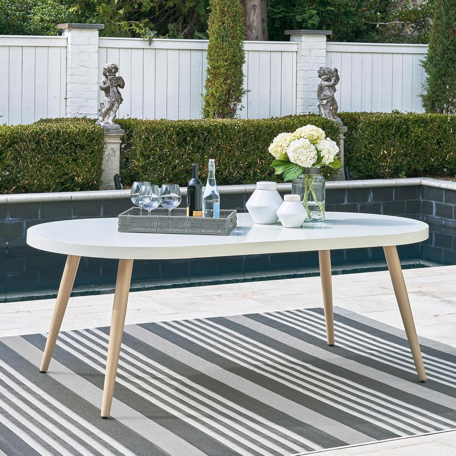 OUTDOOR DINING TABLE: This dining table invites your casual contemporary style outdoors. With an elegant faux stone top, it expertly marries refined design with durability