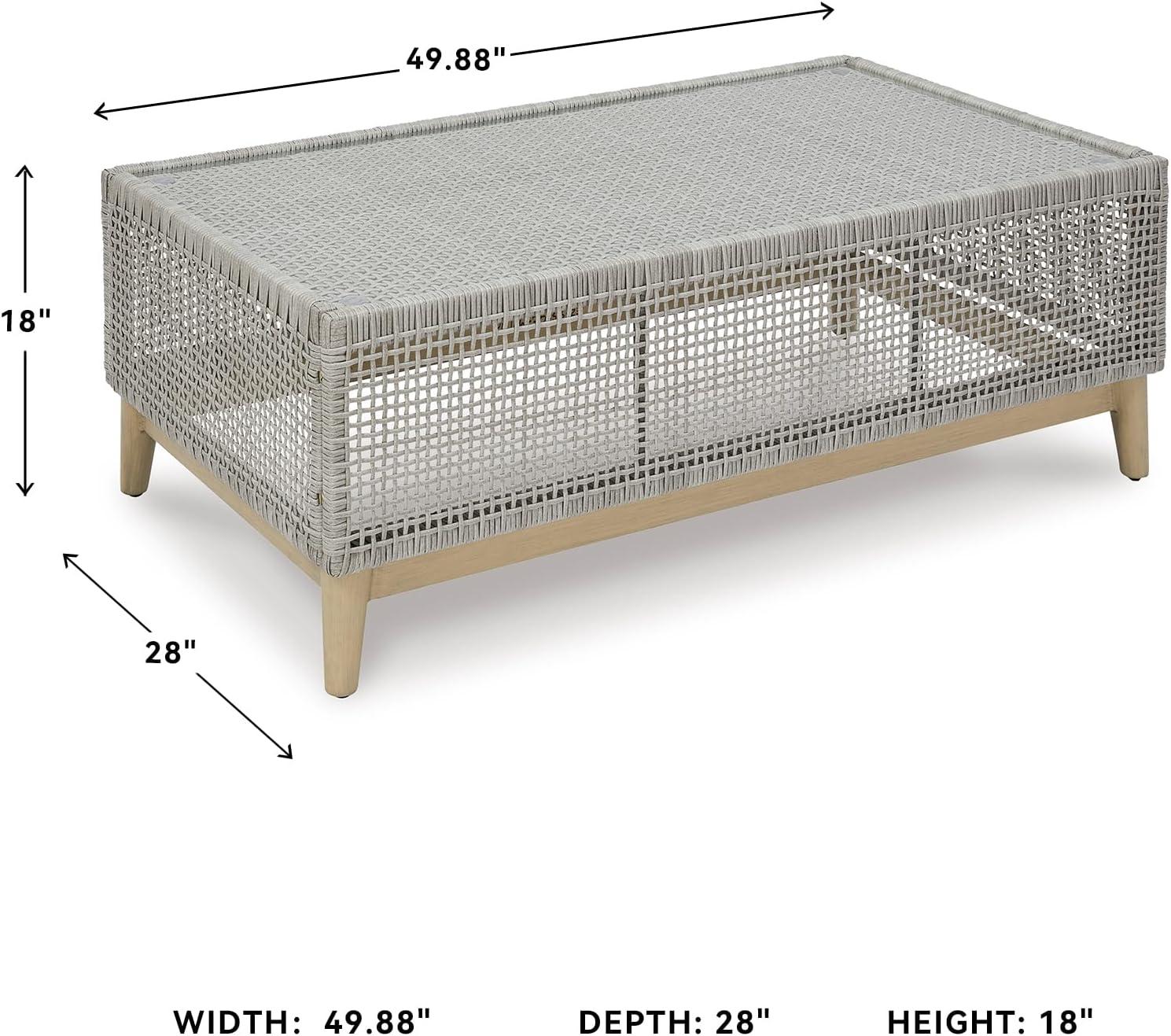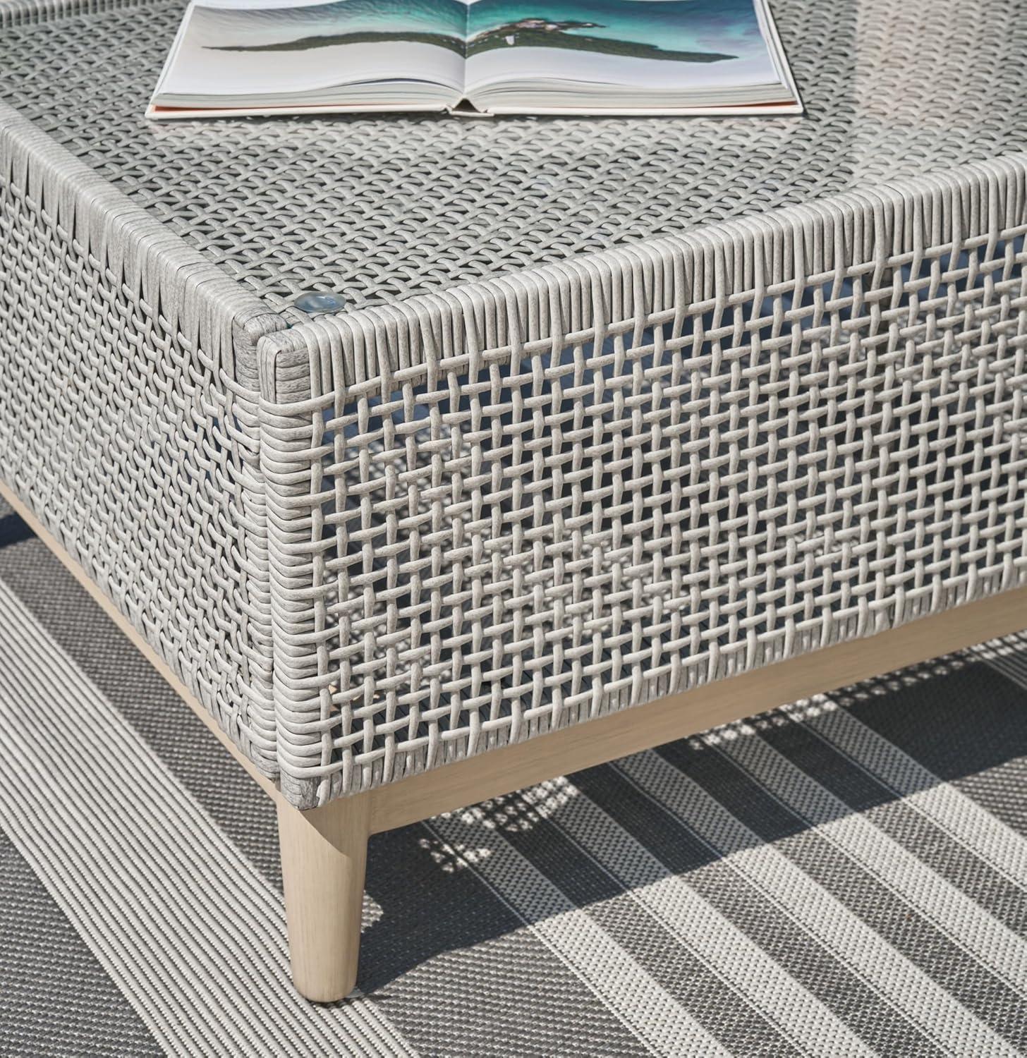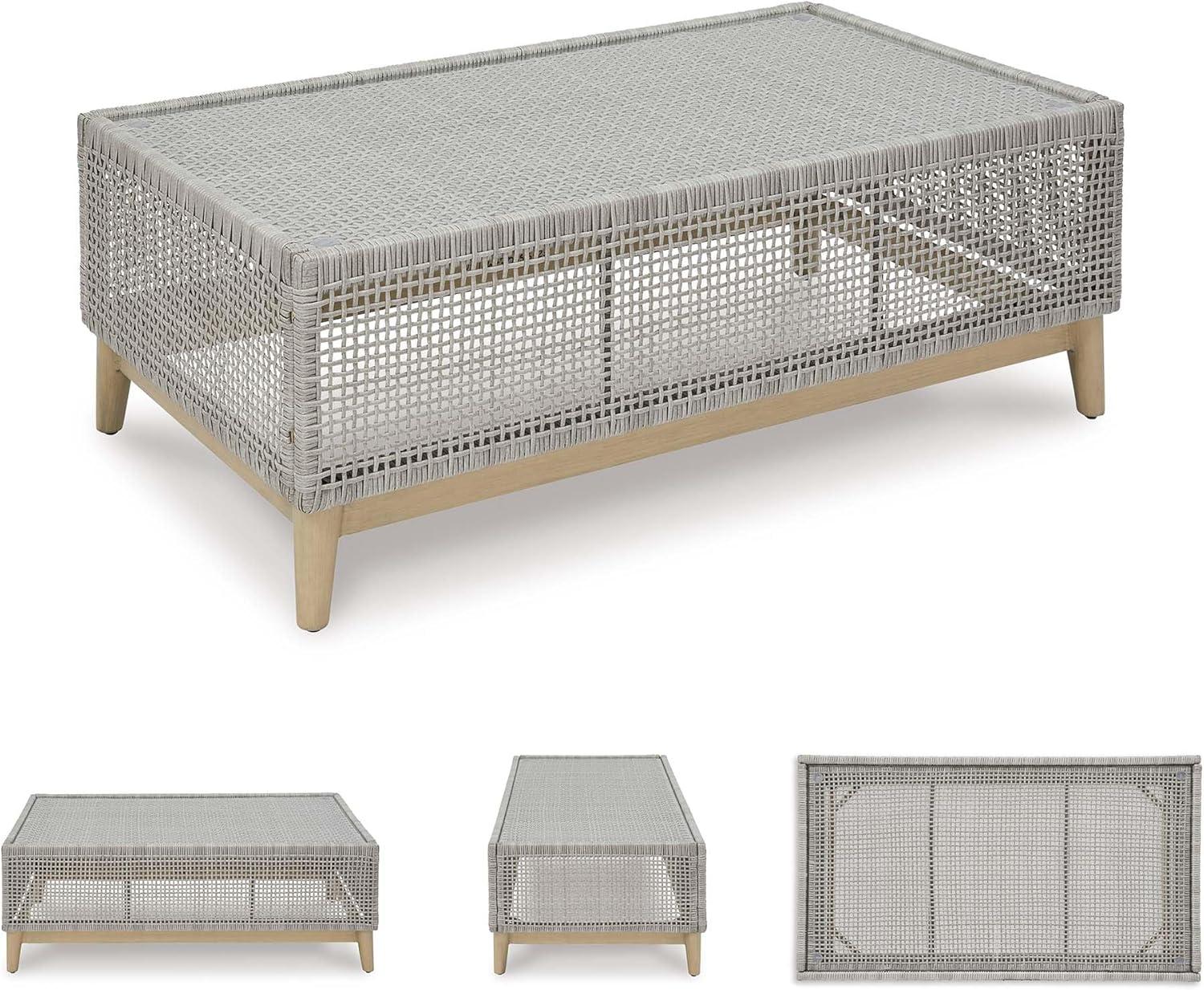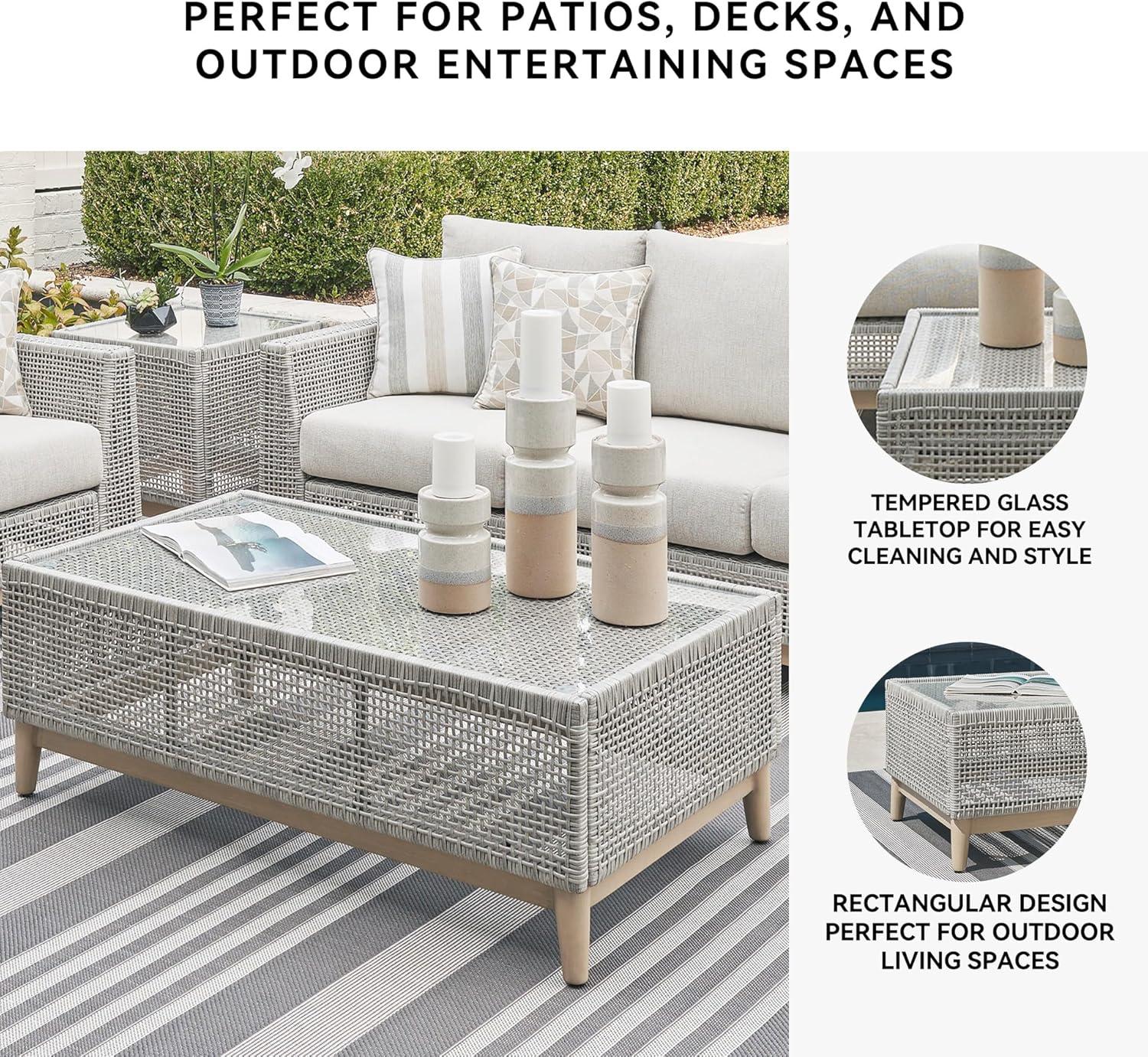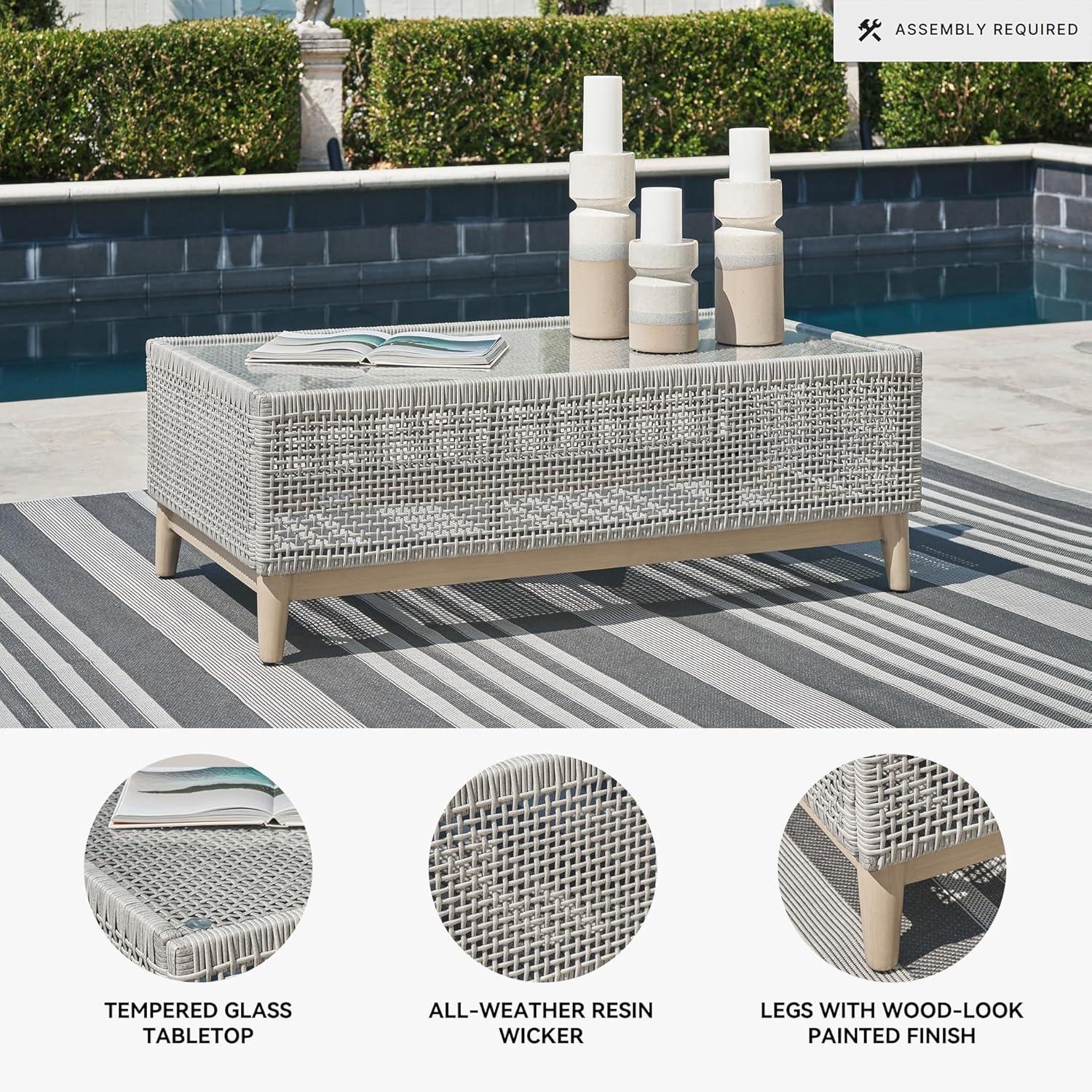 Signature Design by Ashley Seton Creek Contemporary Chic Outdoor All-Weather Resin Wicker End Table with Tempered Glass Tabletop, Gray & Light Brown(Outdoor Coffee Table)