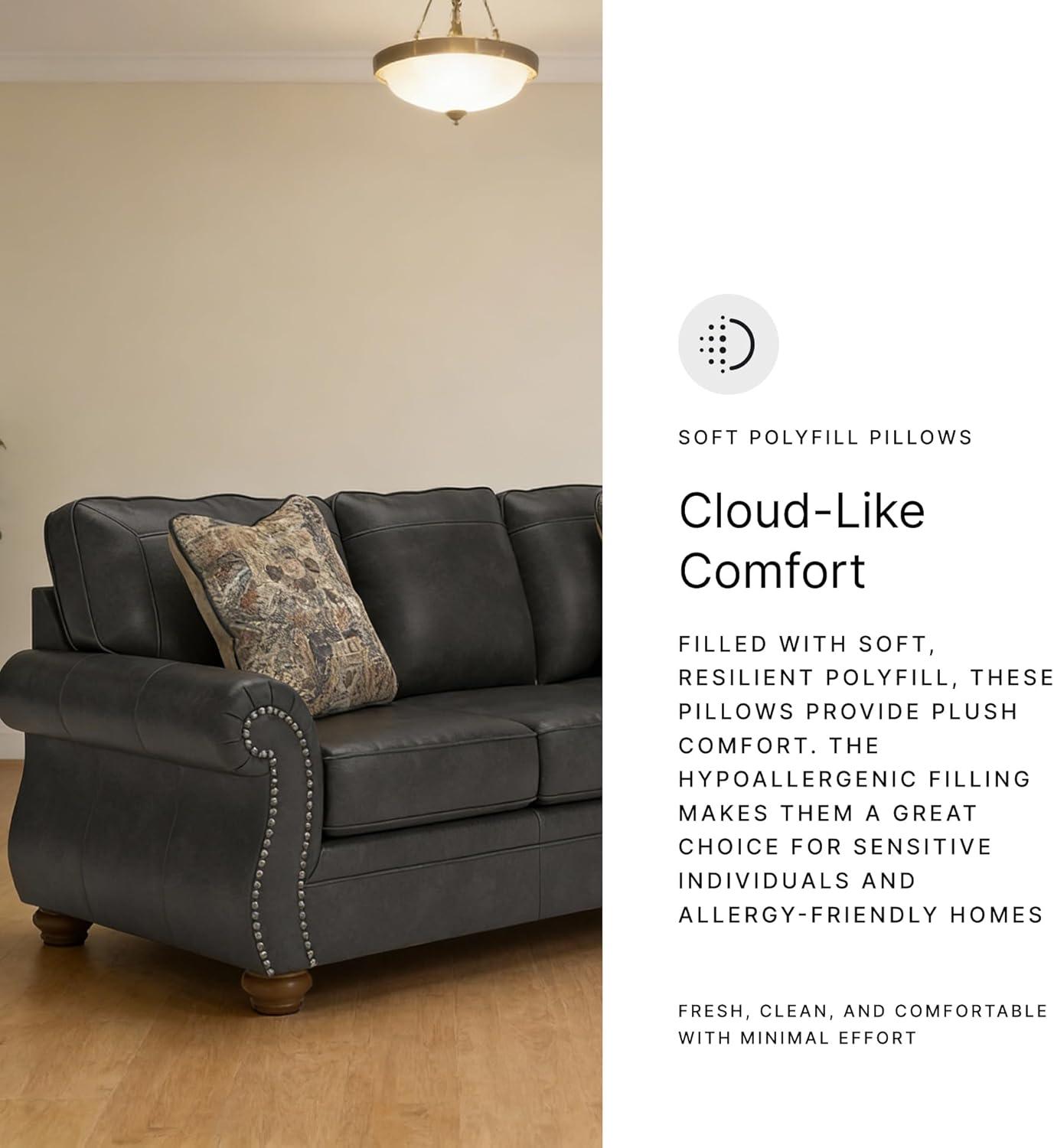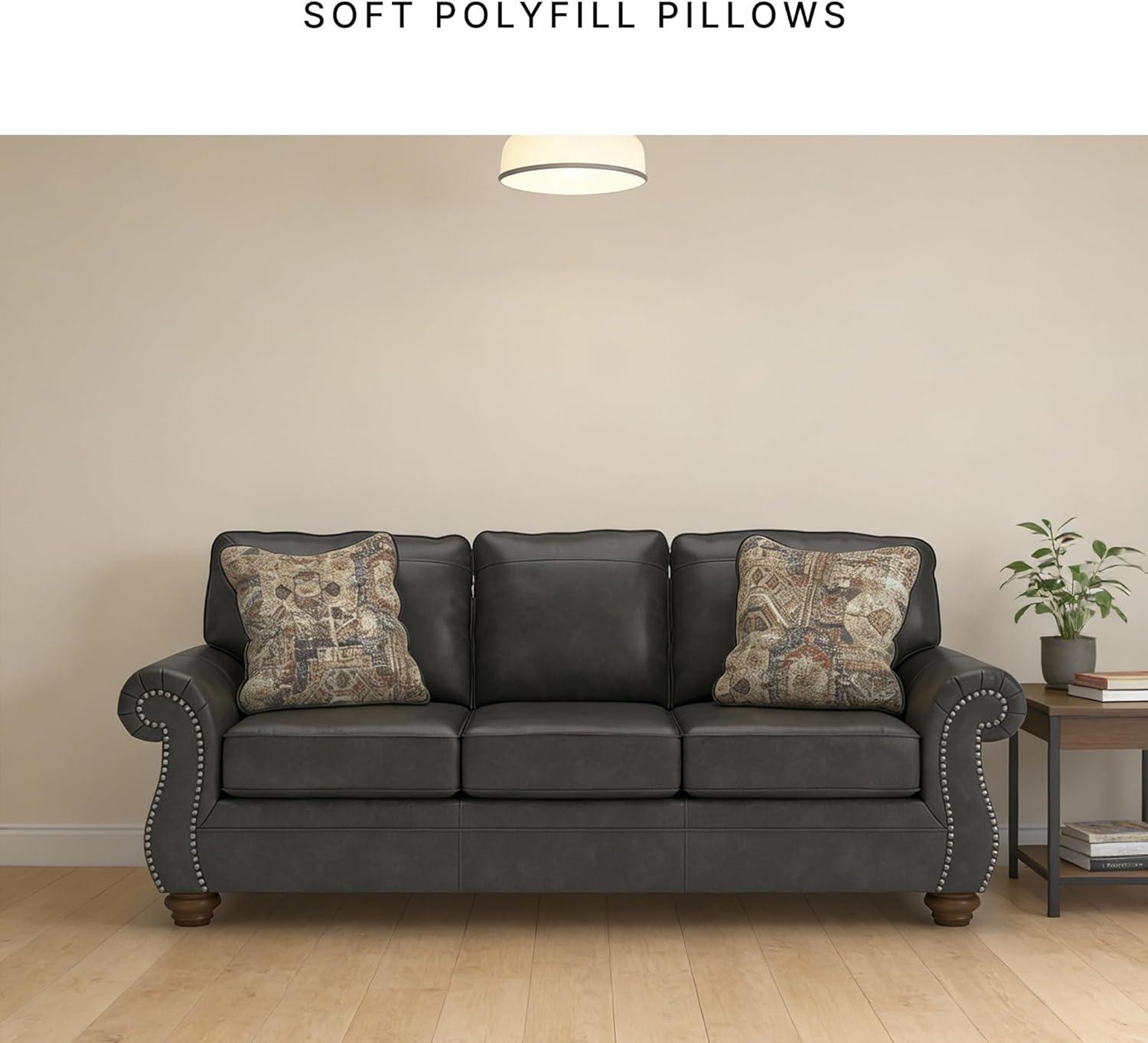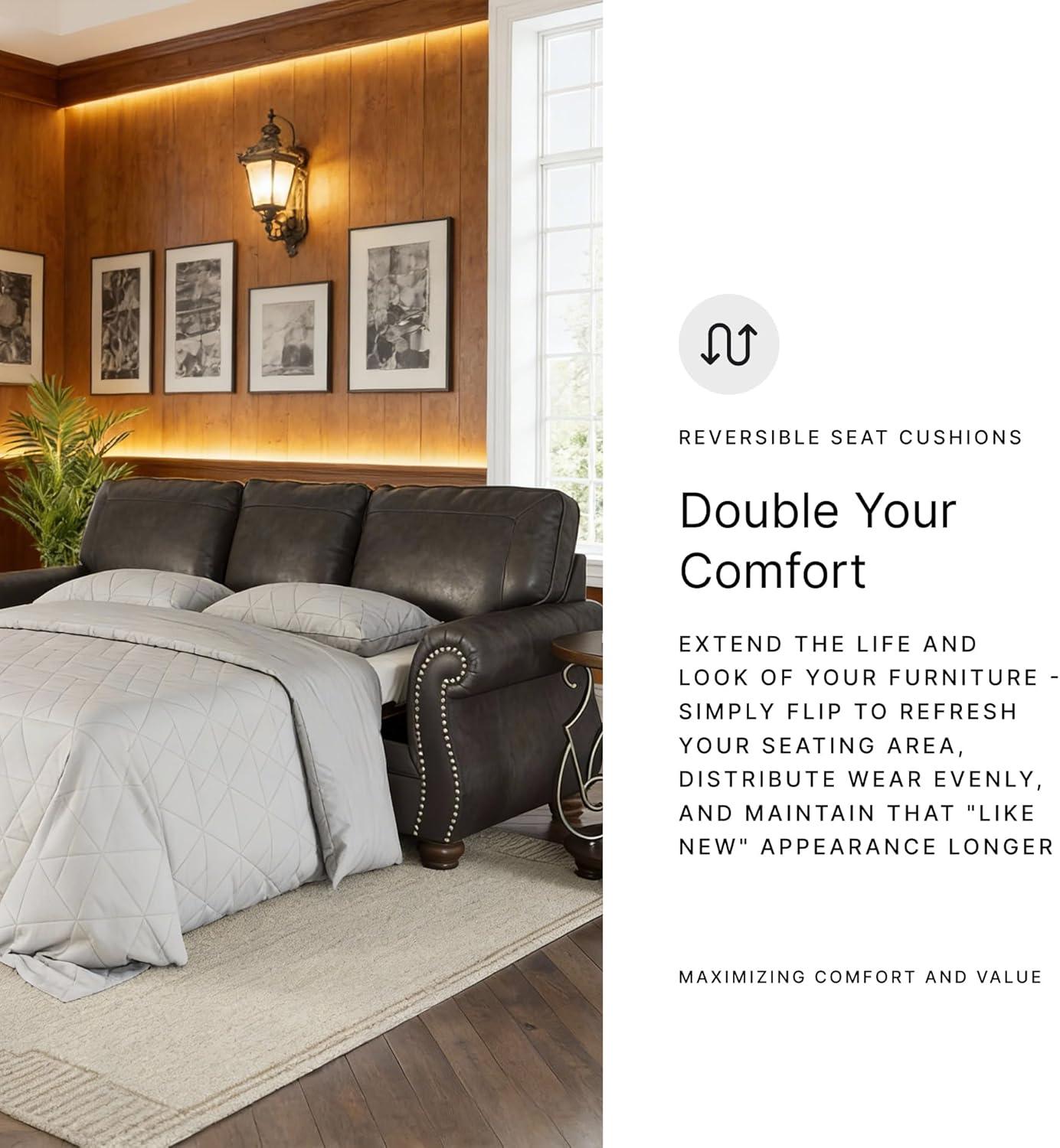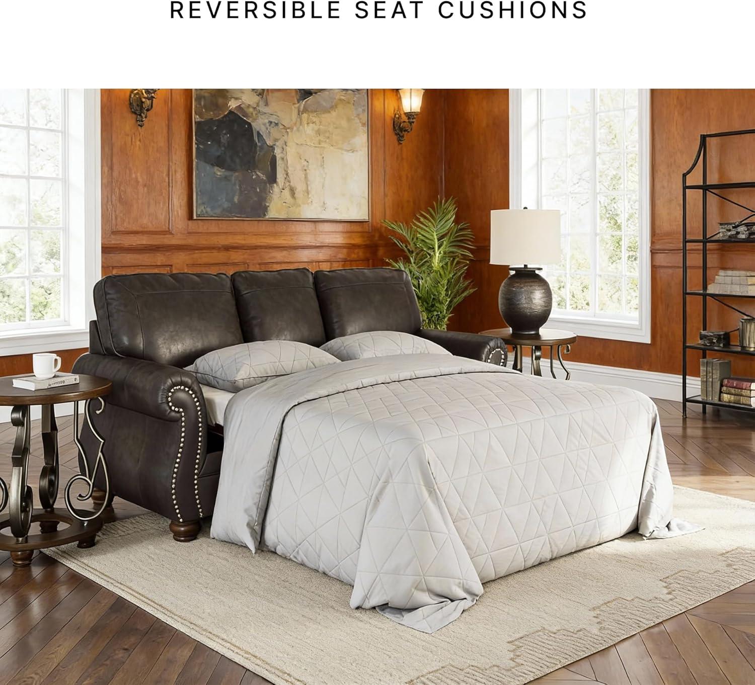 Signature Design by Ashley Shadsburne Rustic Faux Leather Sofa Sleeper with Bi-Fold Memory Foam Mattress, Nailhead Trim and 2 Throw Pillows, Queen, Brown(Grey)