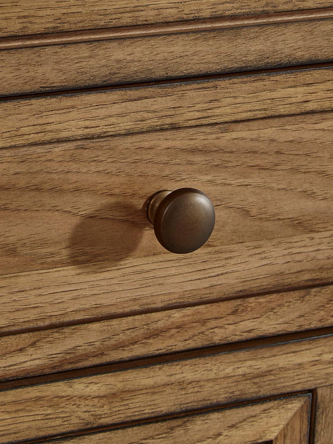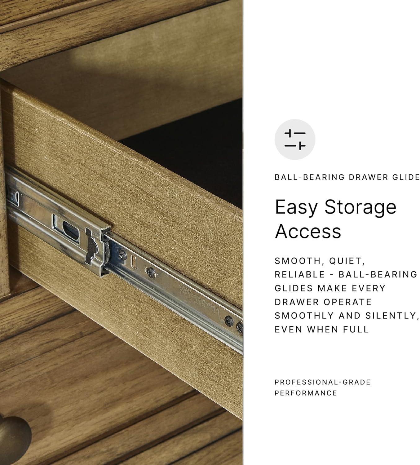 FINELY CRAFTED: Made with hardwood solids, hickory wood veneer & MDF substrates. Light brown wood-tone finish. Dark bronze-tone pulls. 9 drawers with fully finished interior (top drawers felt lined)