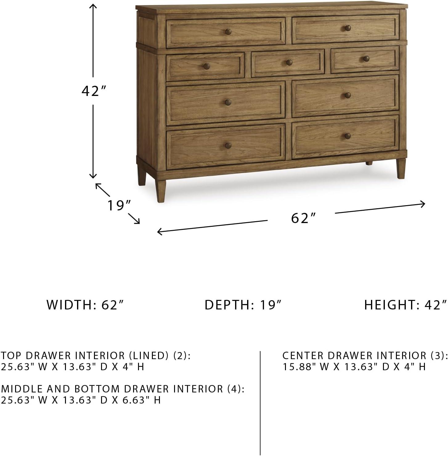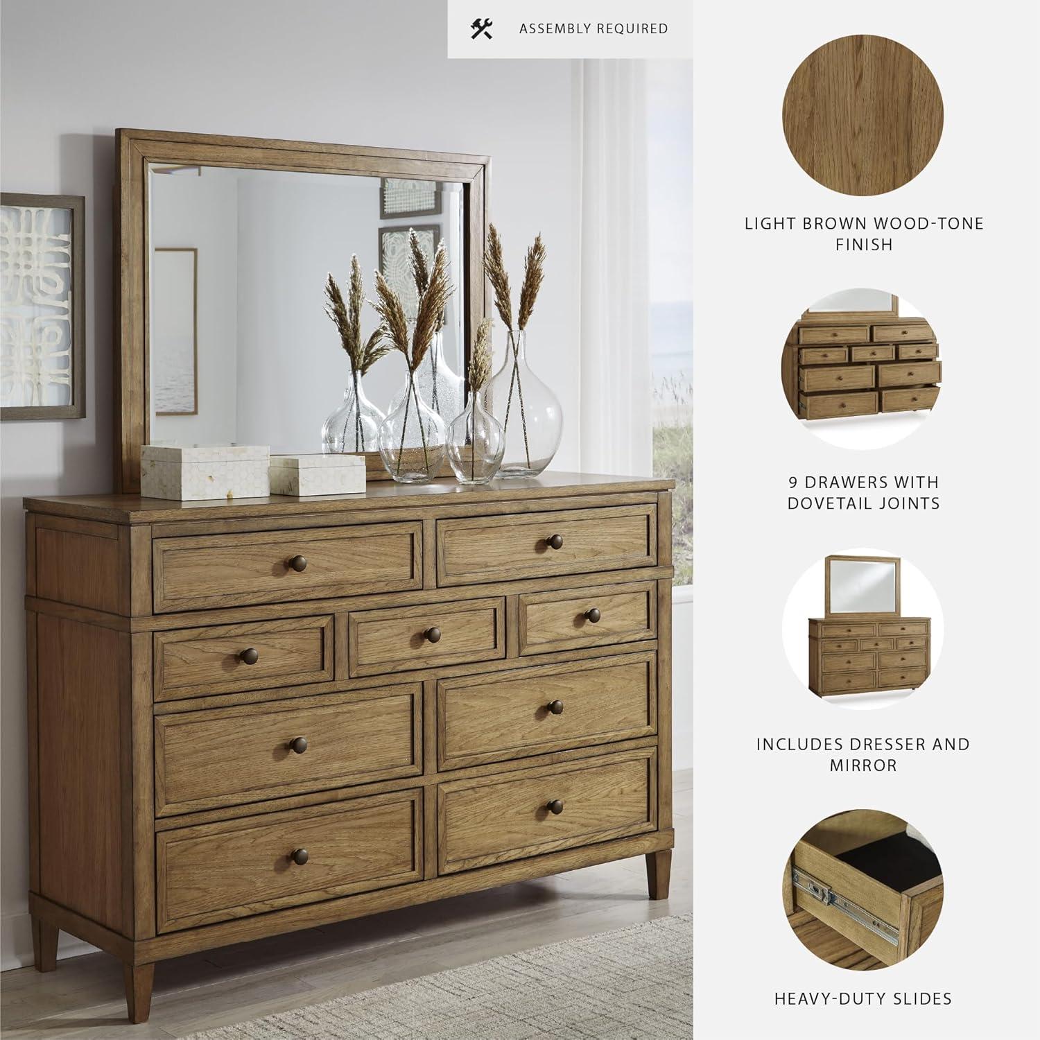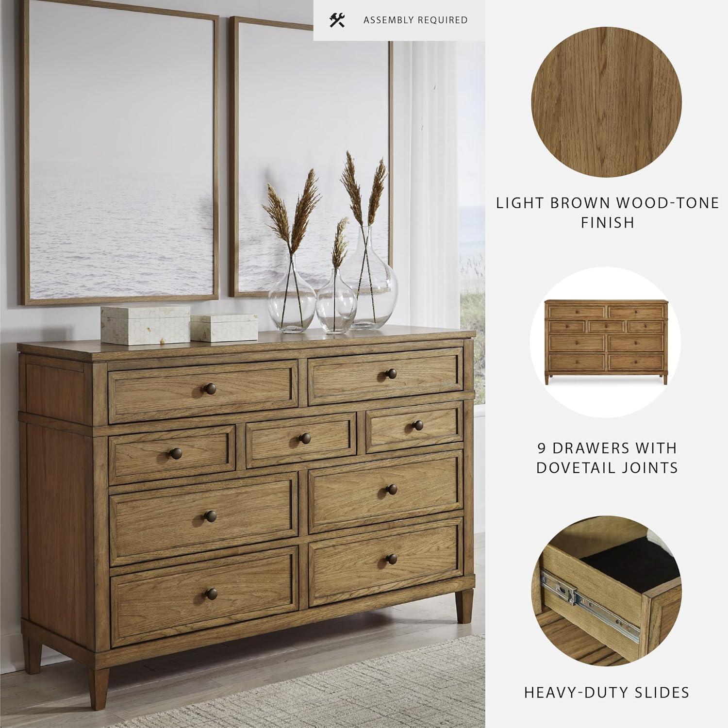 Signature Design by Ashley Sharlance Casual 9-Drawer Dresser with Felt-Lined Top Drawer and Easy Glide for Bedroom, Light Brown(Brown)