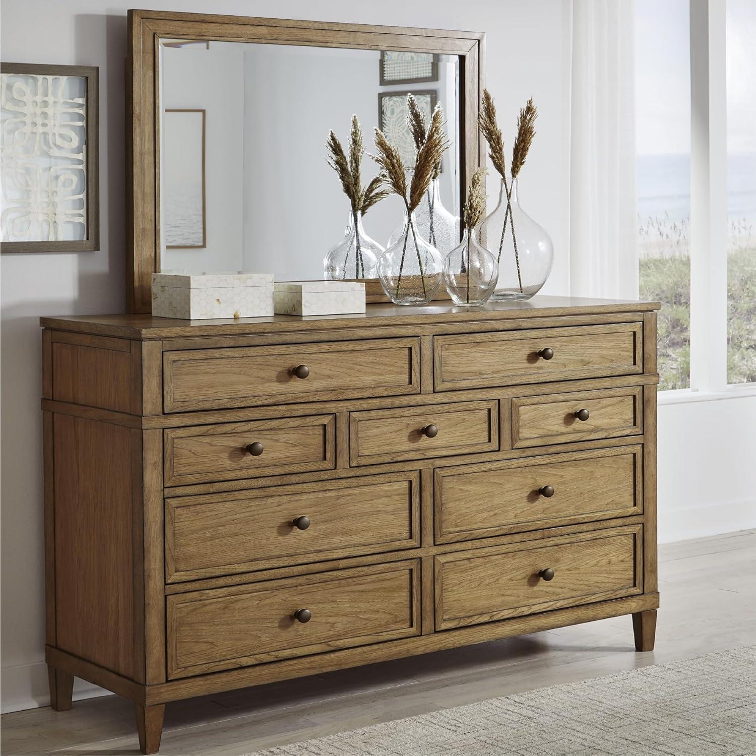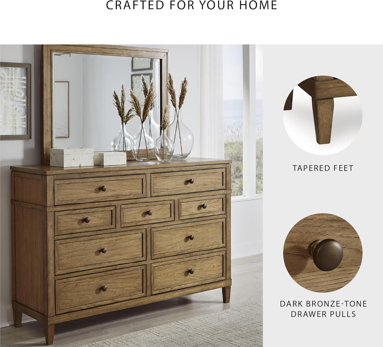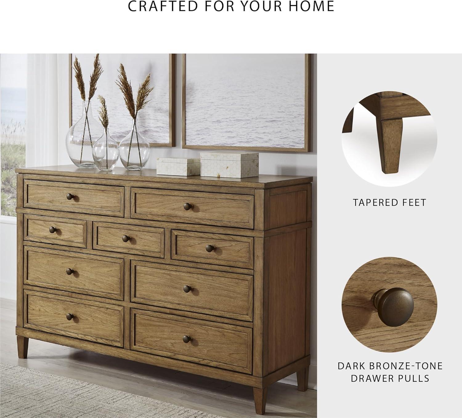 Signature Design by Ashley Sharlance Casual 9-Drawer Dresser with Felt-Lined Top Drawer and Easy Glide for Bedroom, Light Brown(Brown)
