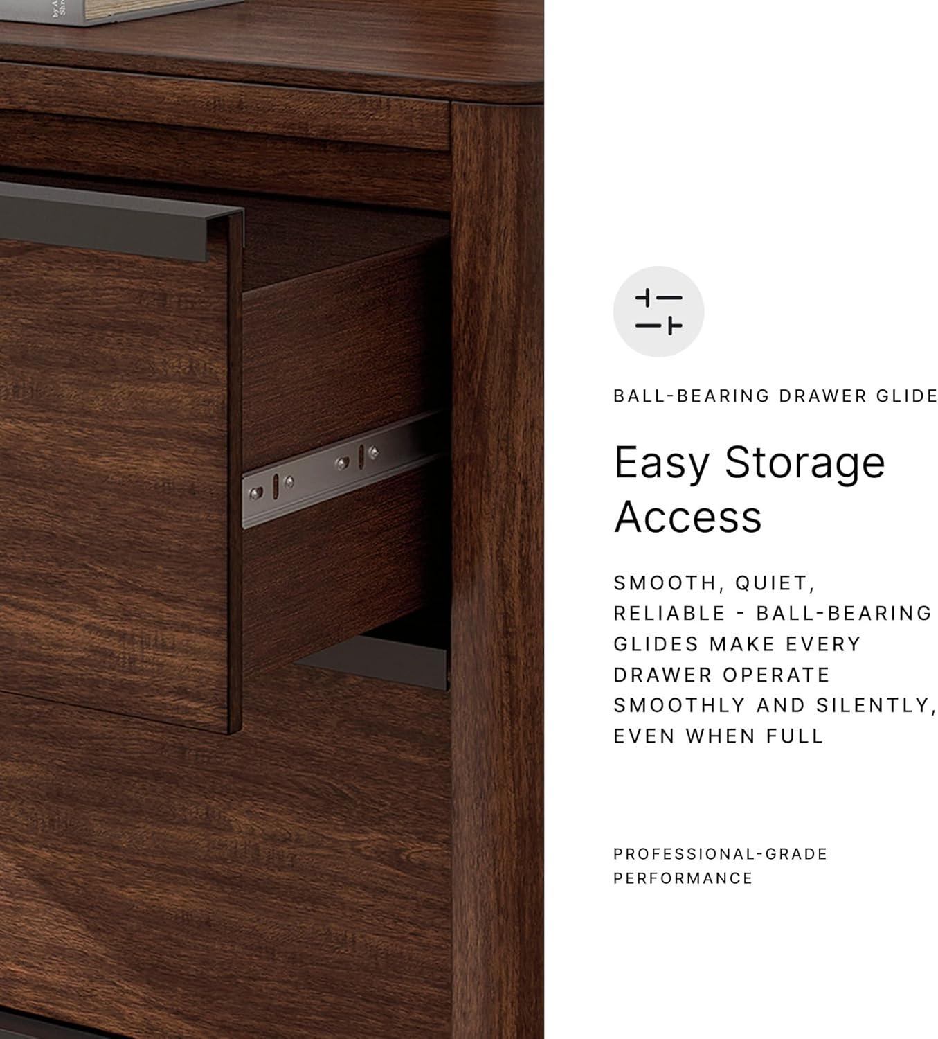 FINELY CRAFTED: Made with hardwood solids, hickory wood veneer & MDF substrates. Light brown wood-tone finish. Dark bronze-tone pulls. 9 drawers with fully finished interior (top drawers felt lined)