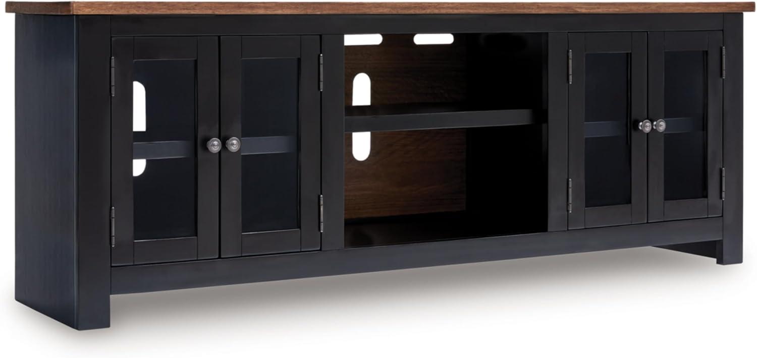 Signature Design by Ashley Sharlance Farmhouse 81″ TV Stand for TVs up to 93″ with Adjustable Shelves and Wire Management, Light Brown(Brown/Black)