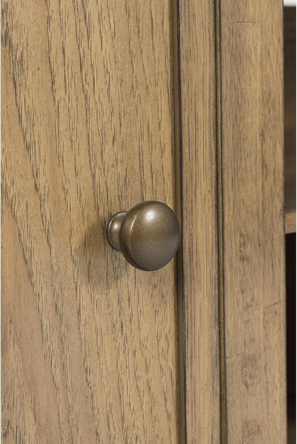 QUALITY CRAFTED: Made with hardwood solids, hickory wood veneer and MDF substrate. Light brown wood-tone finish. Dark bronze-tone drawer pulls. 2 cabinets, each with an adjustable shelf. 4 smooth-gliding drawers. Cutouts for wire management