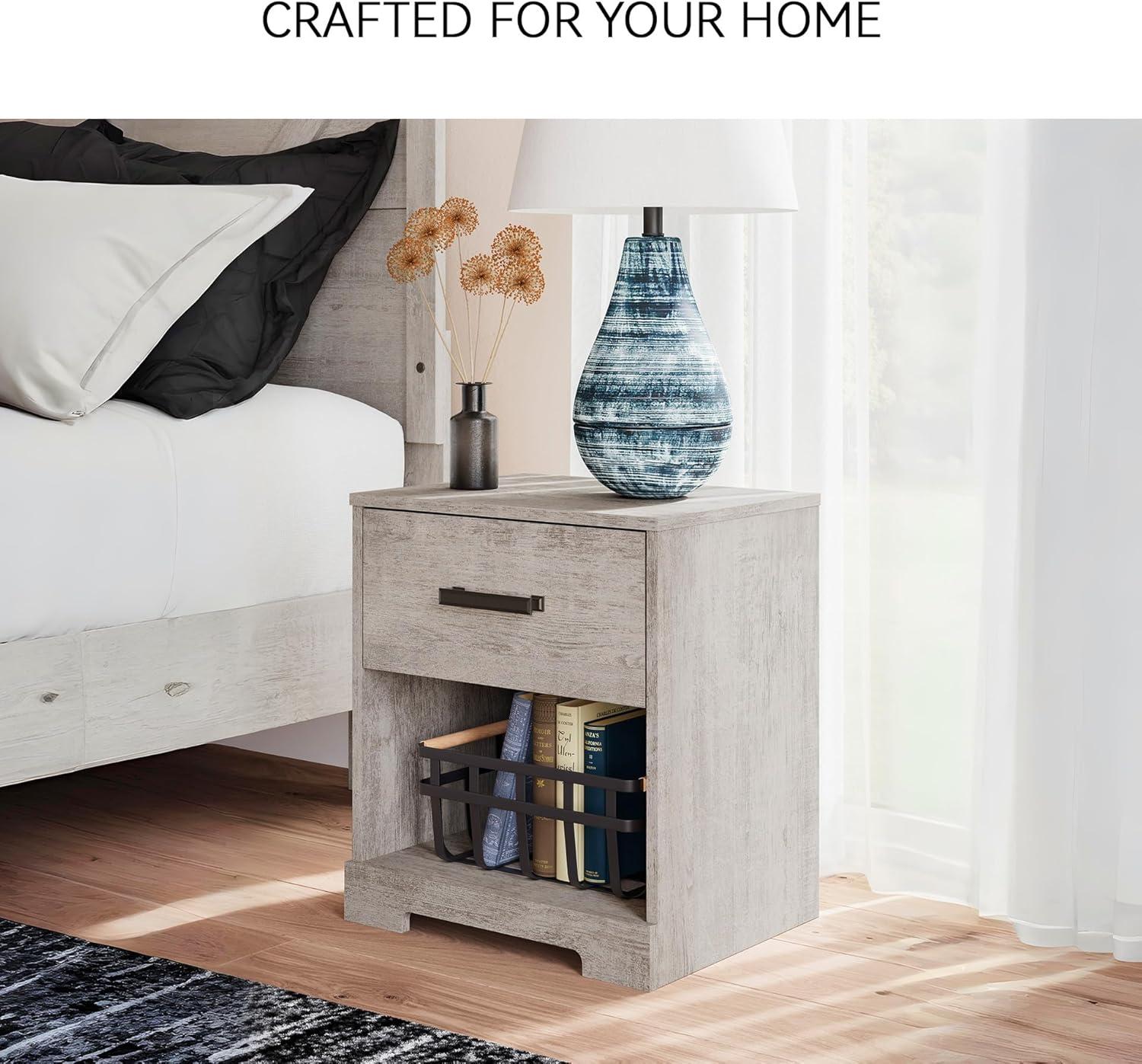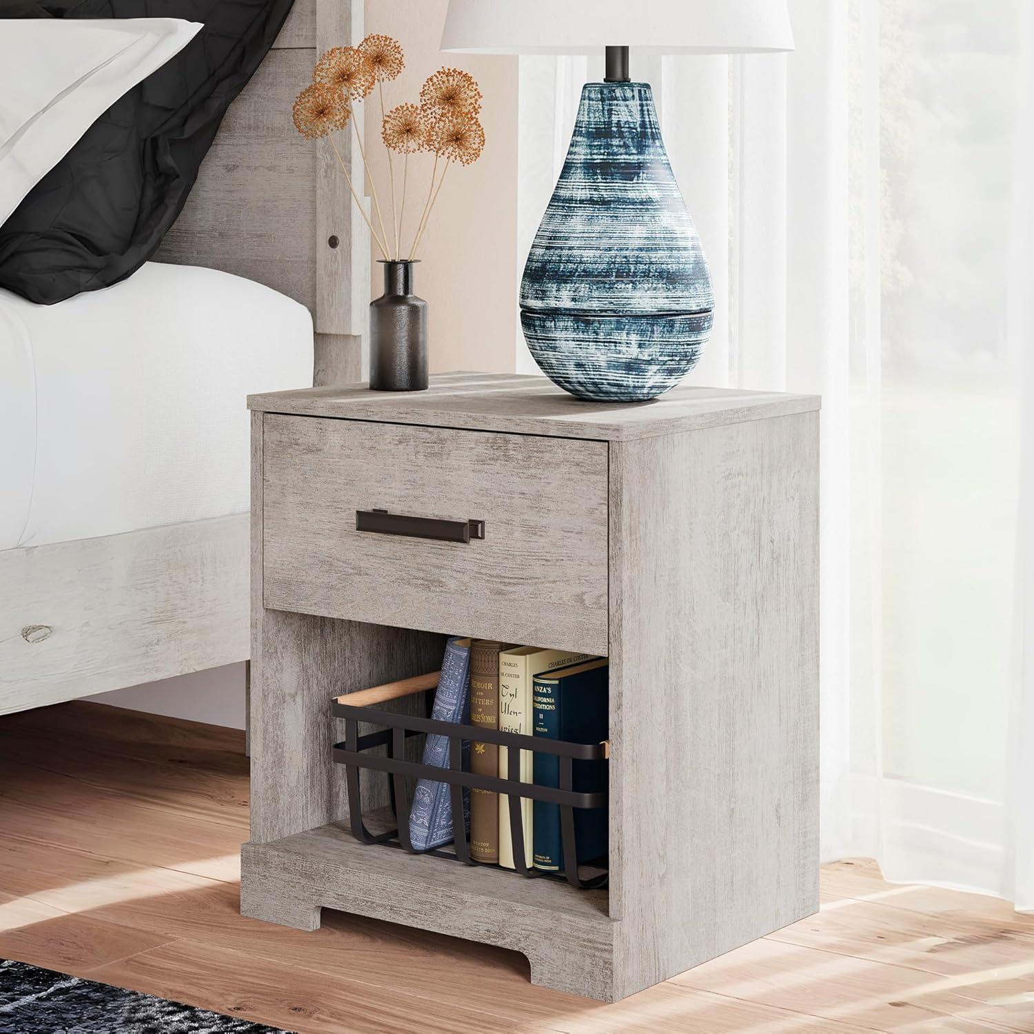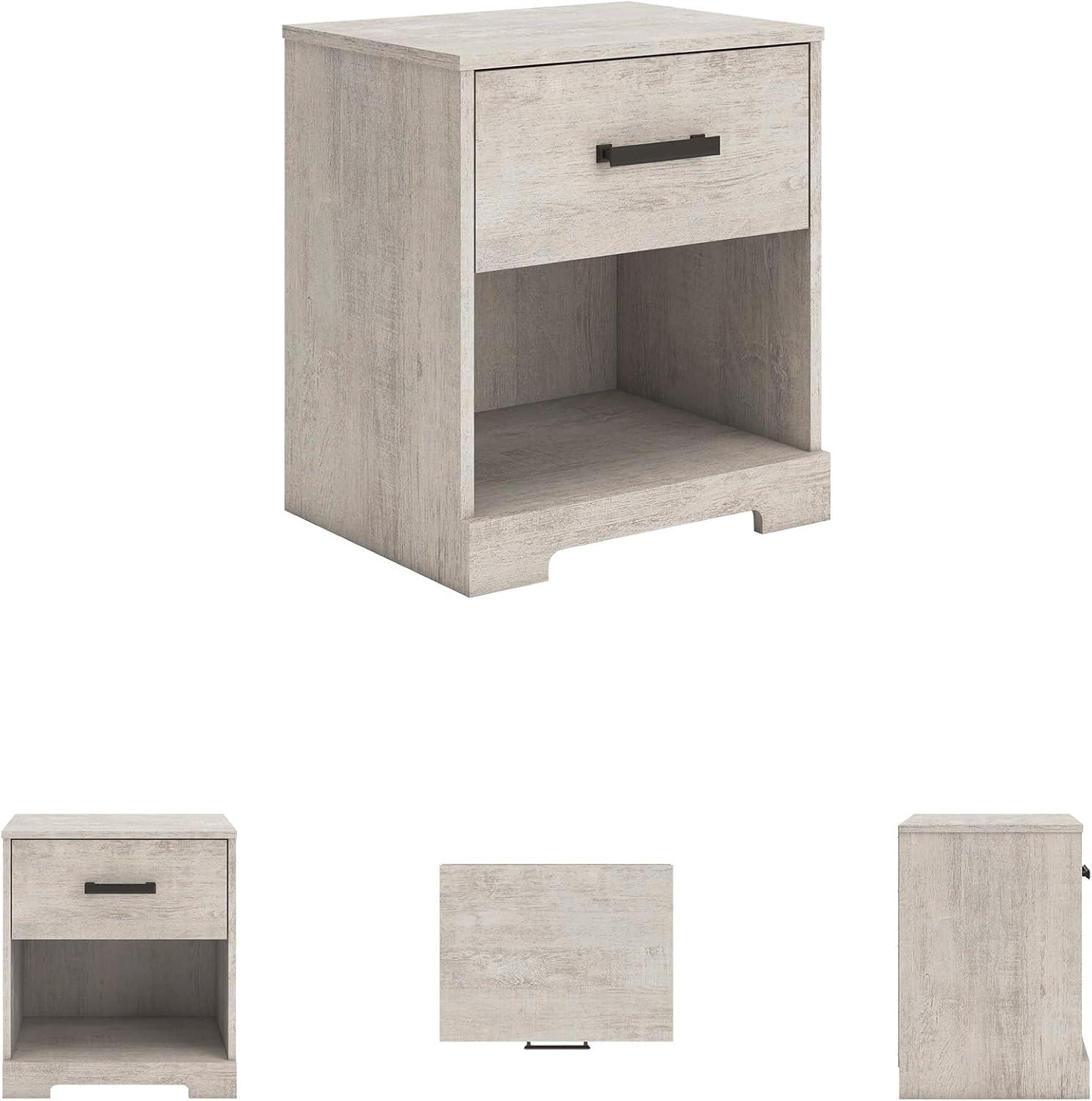 Signature Design by Ashley Shawburn 1 Drawer Night Stand Nightstand, 22.09″ Tall, Whitewash & Gray(Graywash)