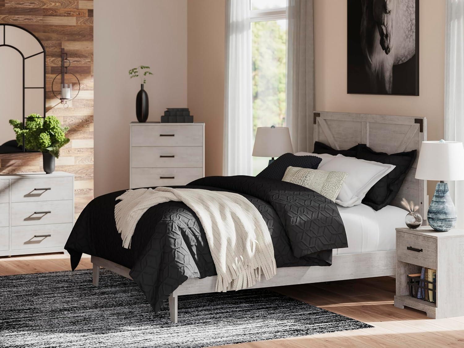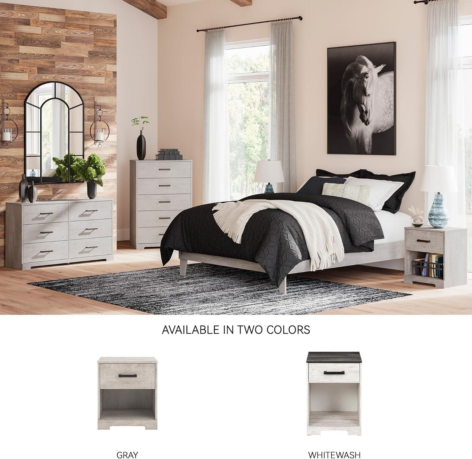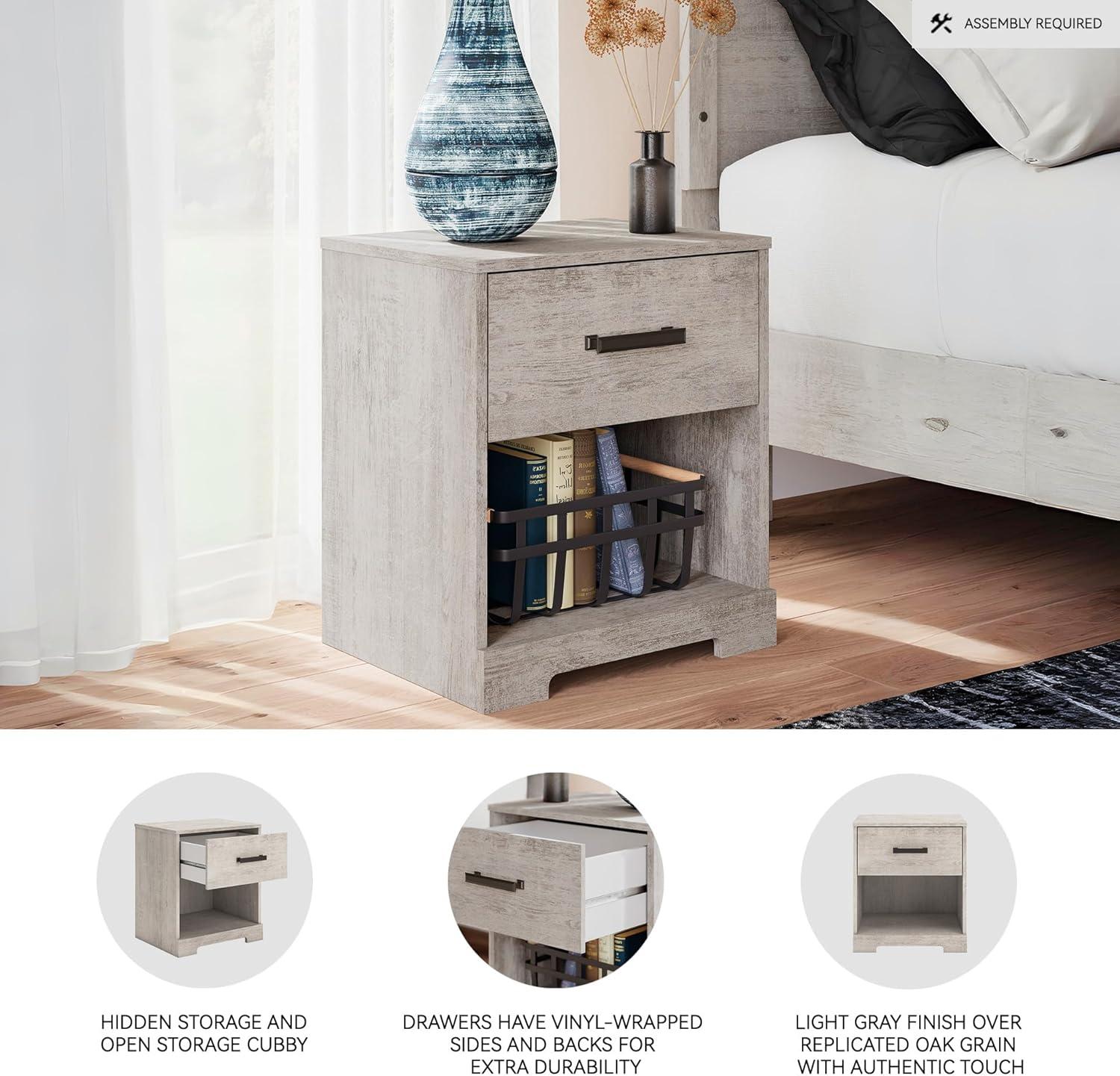 Signature Design by Ashley Shawburn 1 Drawer Night Stand Nightstand, 22.09″ Tall, Whitewash & Gray(Graywash)