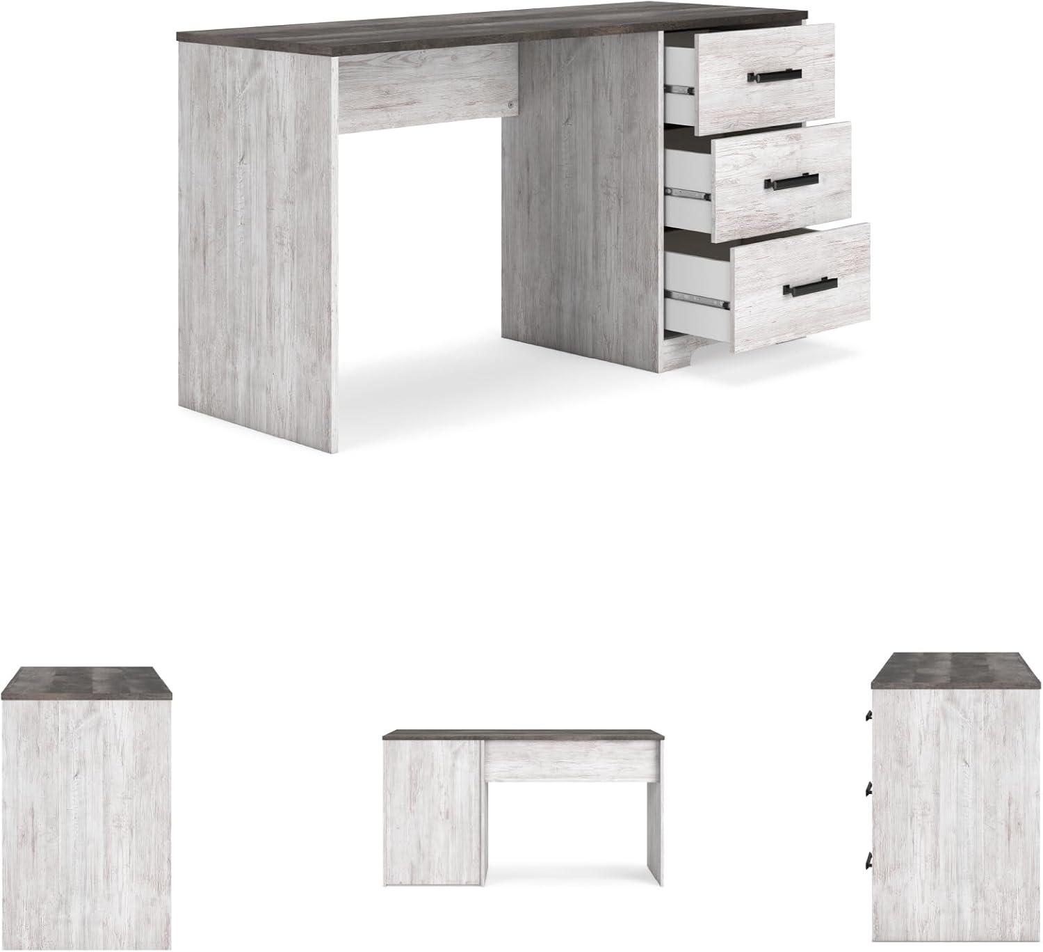 Signature Design by Ashley Shawburn Farmhouse 3-Drawer 54″ Home Office Desk, White & Gray