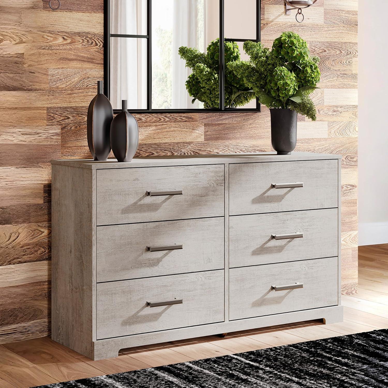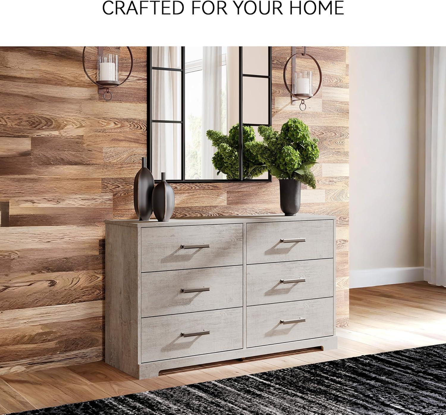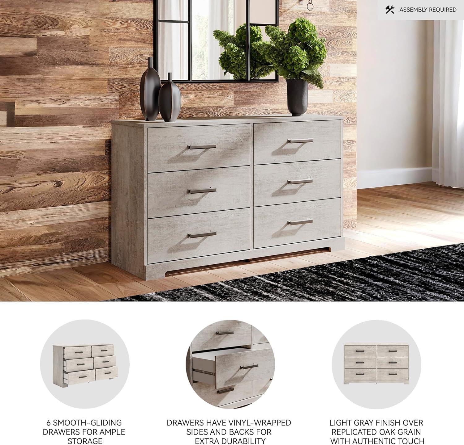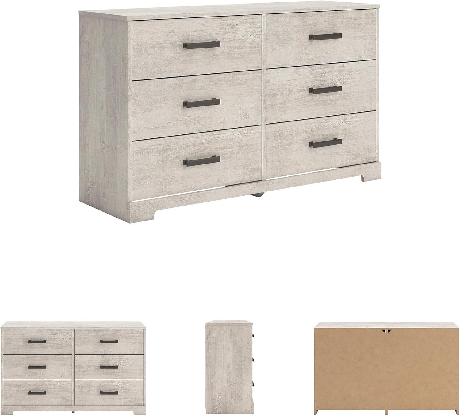 Signature Design by Ashley Shawburn Vintage 5 Drawer Chest with Safety Stop, Light Gray(6 Drawer Dresser)
