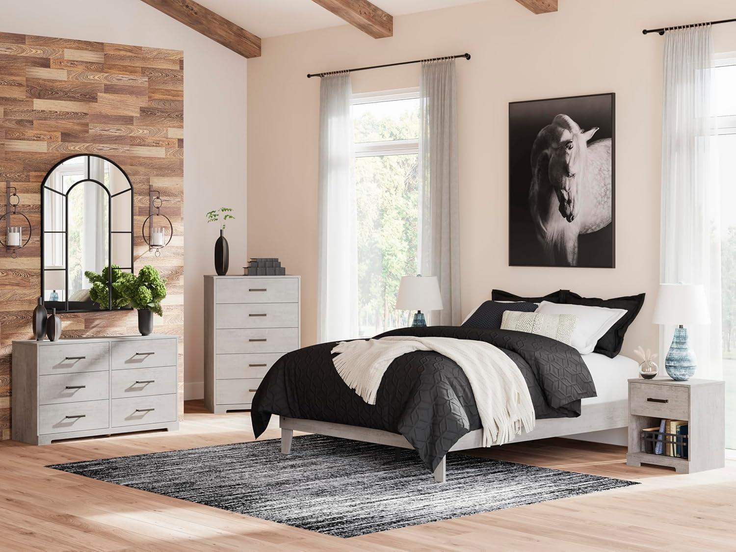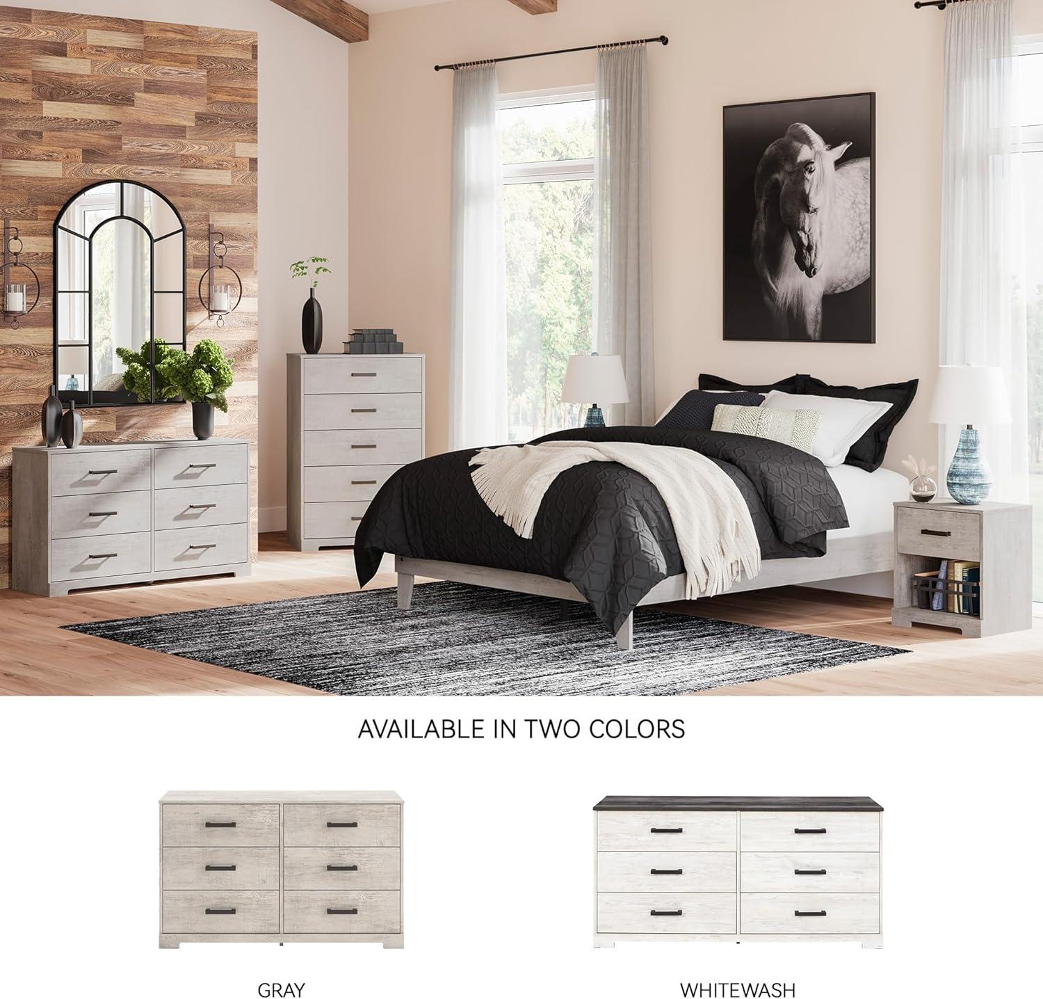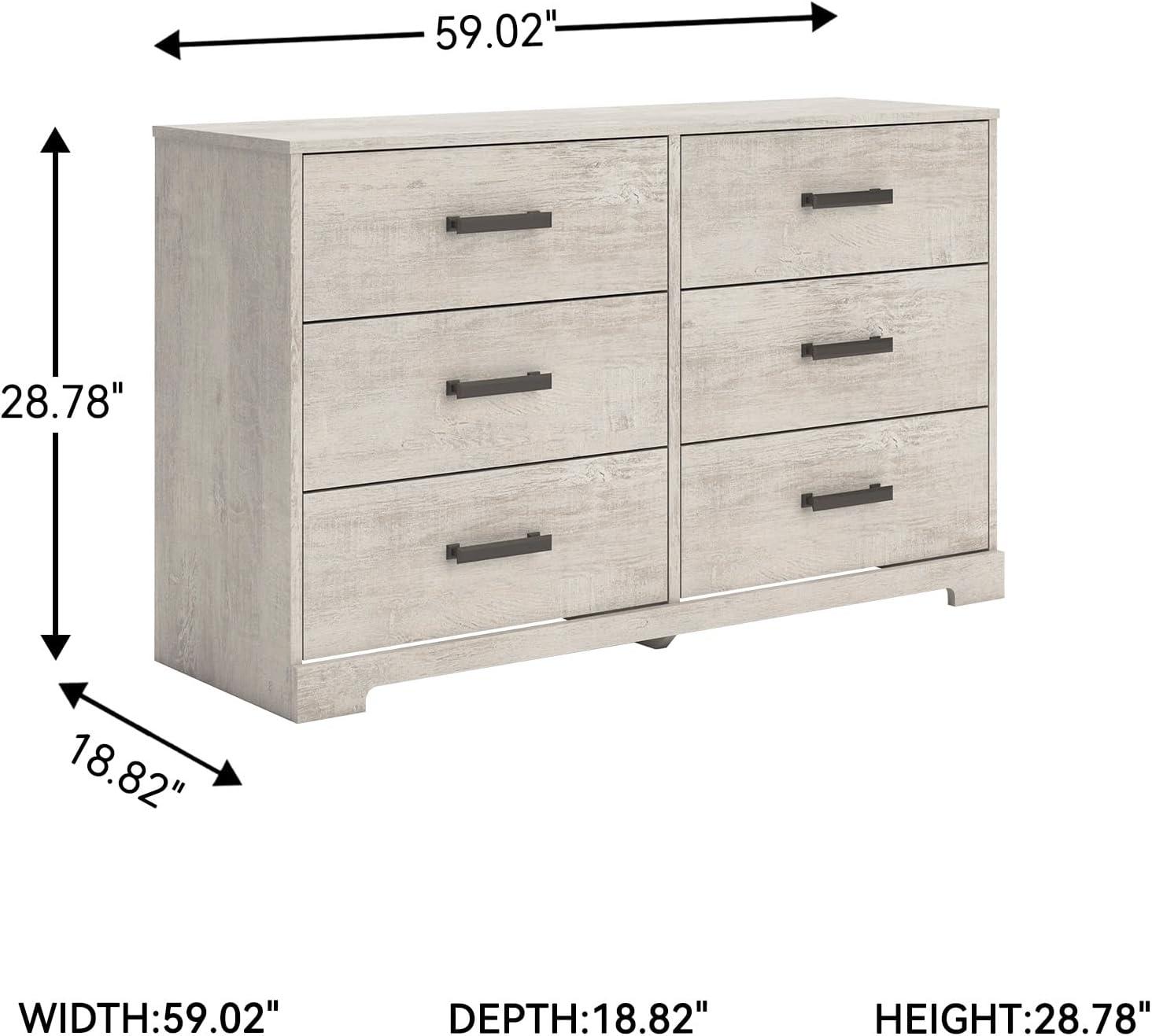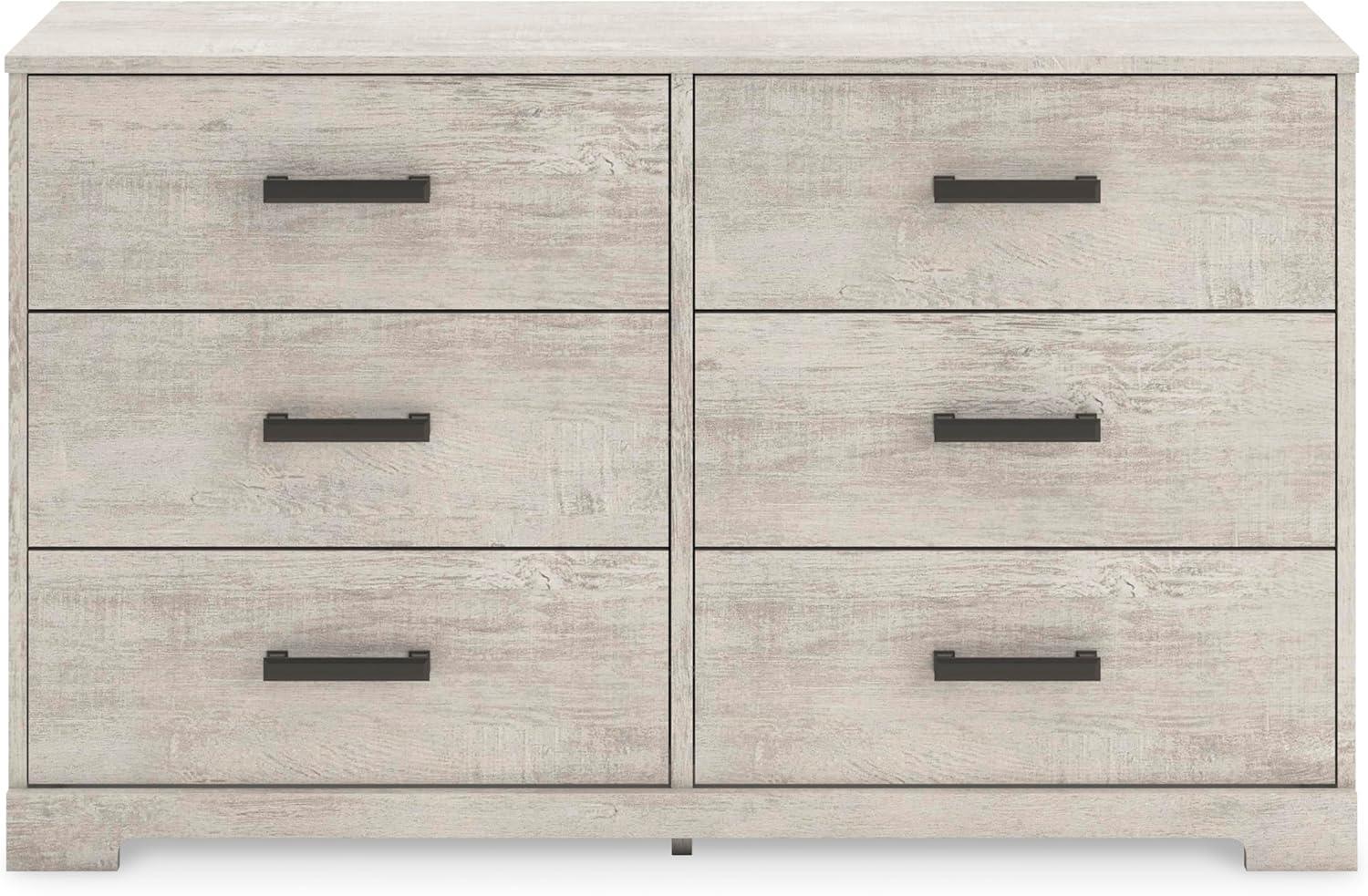 Signature Design by Ashley Shawburn Vintage 5 Drawer Chest with Safety Stop, Light Gray(6 Drawer Dresser)