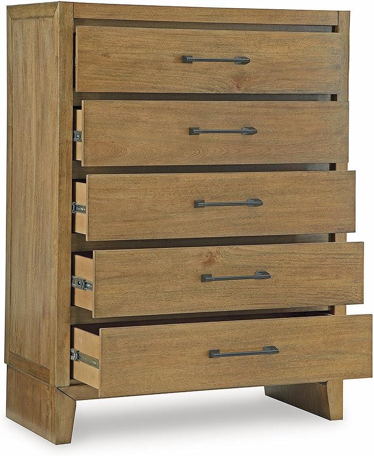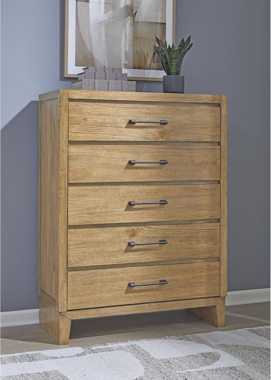 Signature Design by Ashley Sherbana Casual 5-Drawer Chest of Drawers with Safety Stop and Felt-Lined Top Drawer, Light Brown
