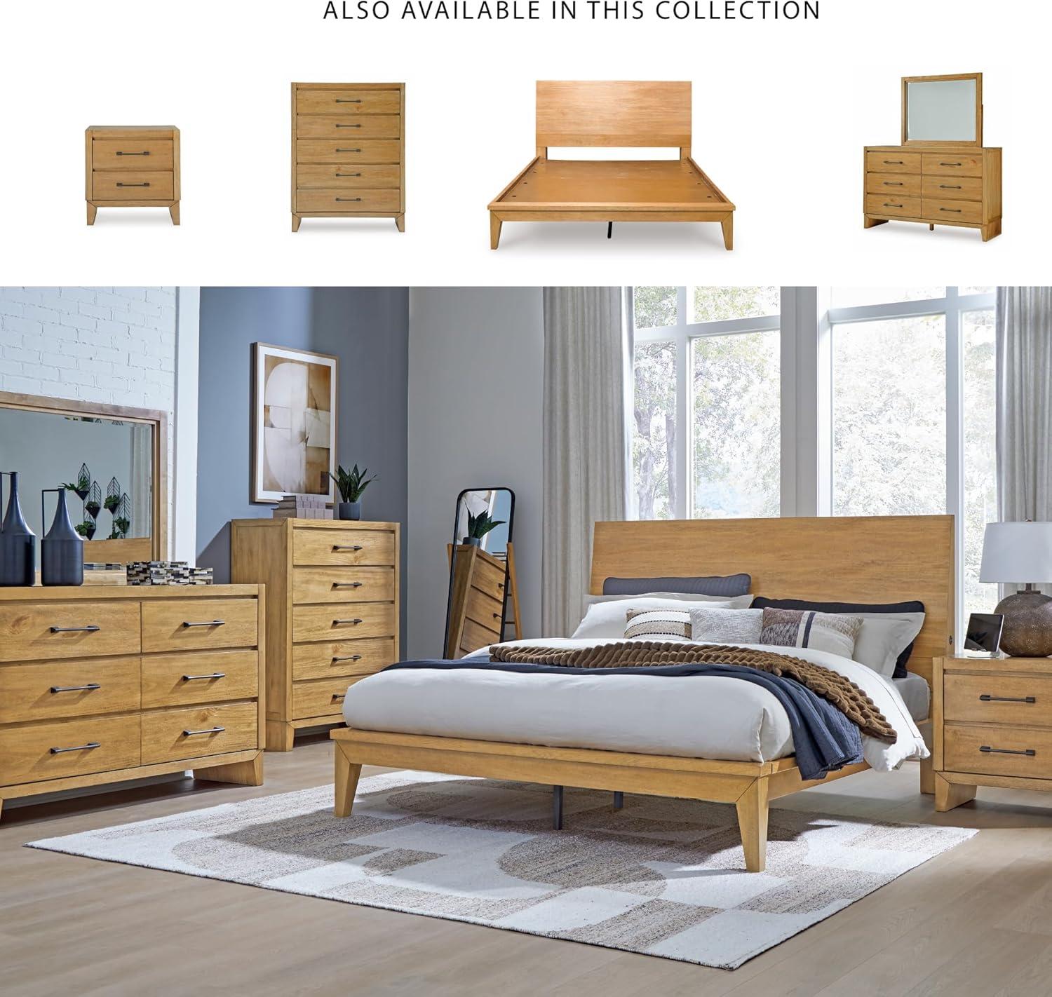 Signature Design by Ashley Sherbana Scandinavian Queen Panel Platform Bed with Bunkie Board and USB Charging Ports, Foundation or Box Spring Not Needed, Light Brown(Casual)
