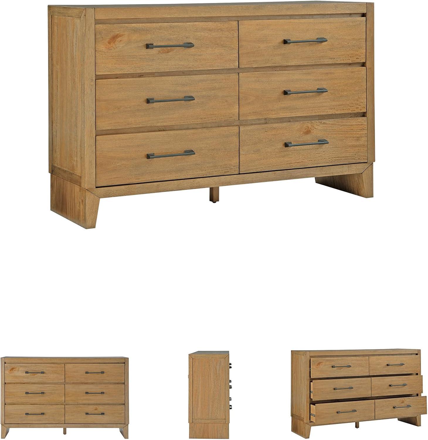 Signature Design by Ashley Sherbana Scandinavian Queen Panel Platform Bed with Bunkie Board and USB Charging Ports, Foundation or Box Spring Not Needed, Light Brown(Dresser)