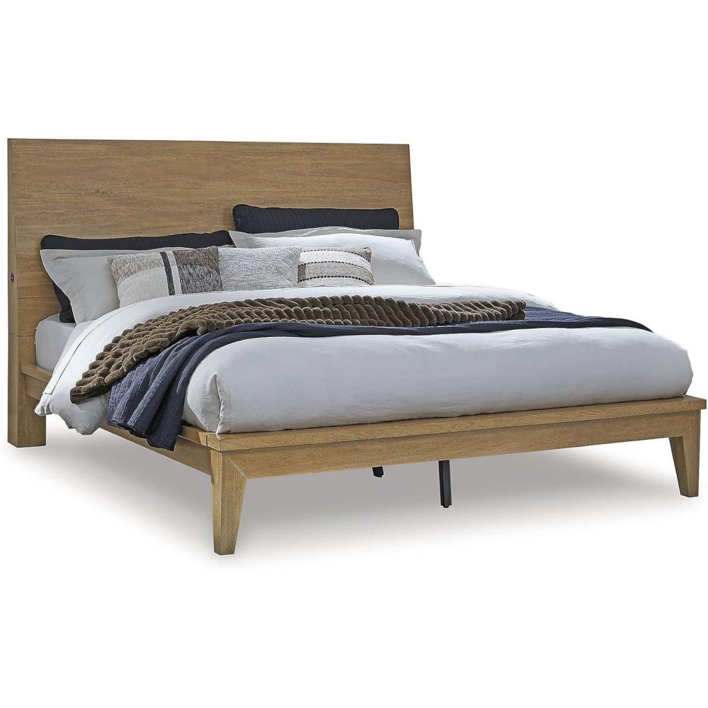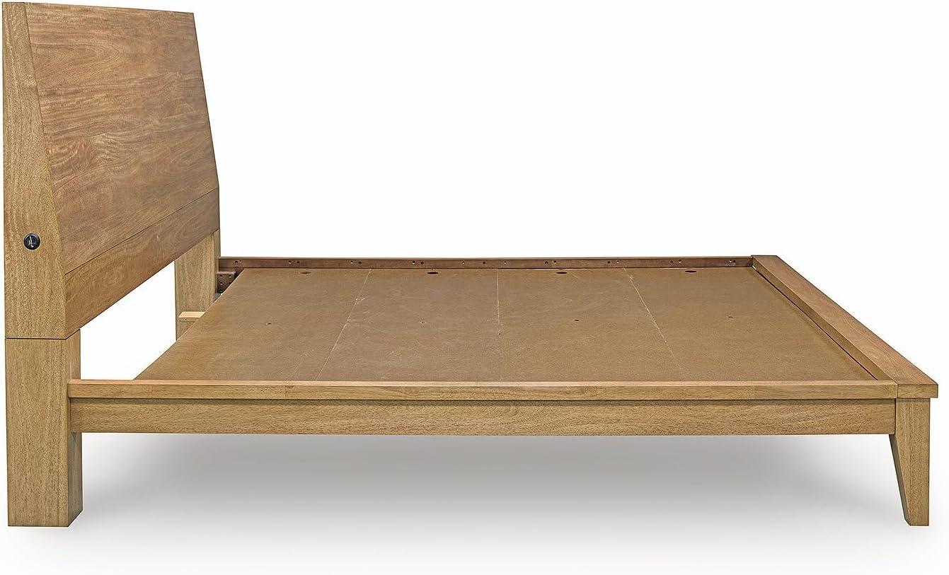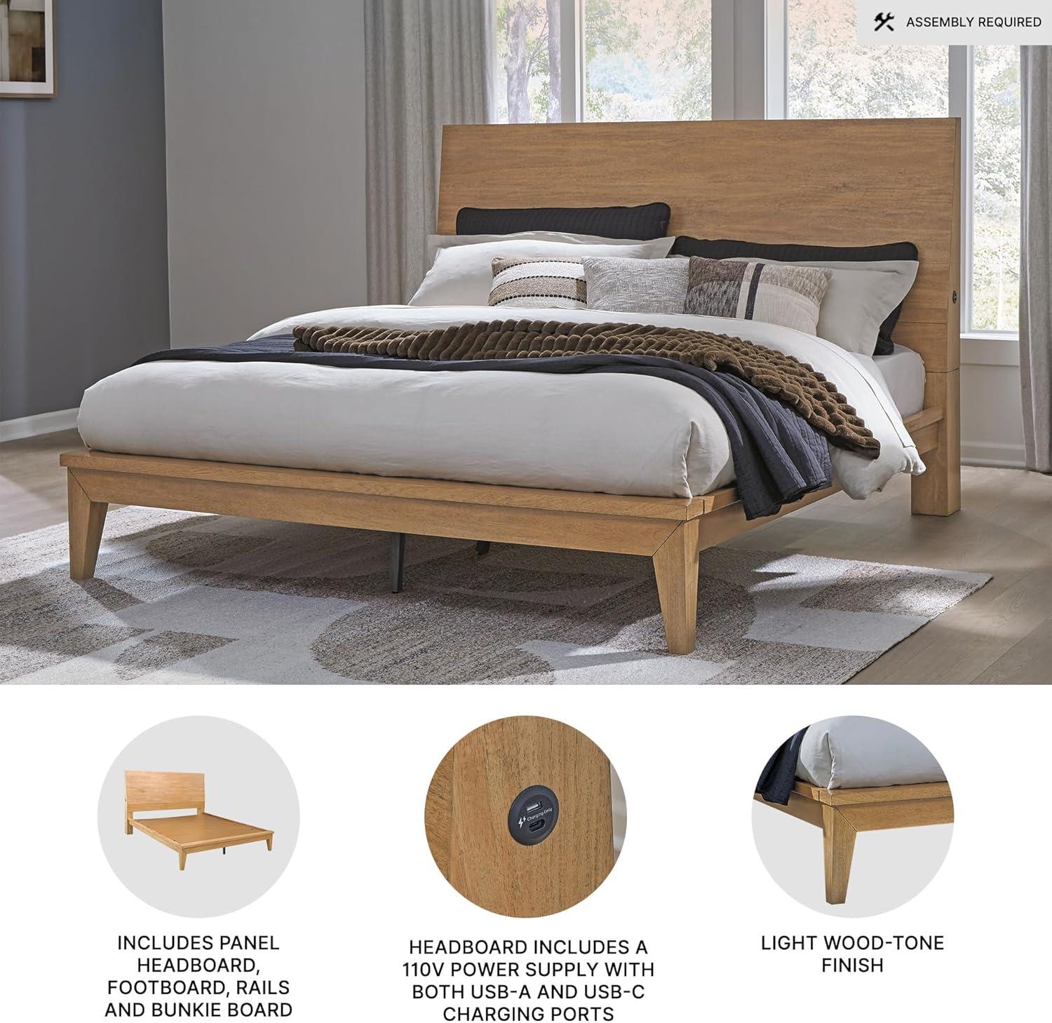 Signature Design by Ashley Sherbana Scandinavian Queen Panel Platform Bed with Bunkie Board and USB Charging Ports, Foundation or Box Spring Not Needed, Light Brown(Queen Panel Bed)