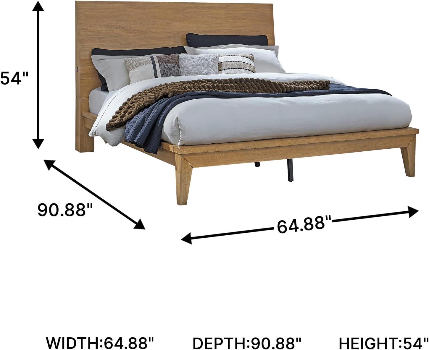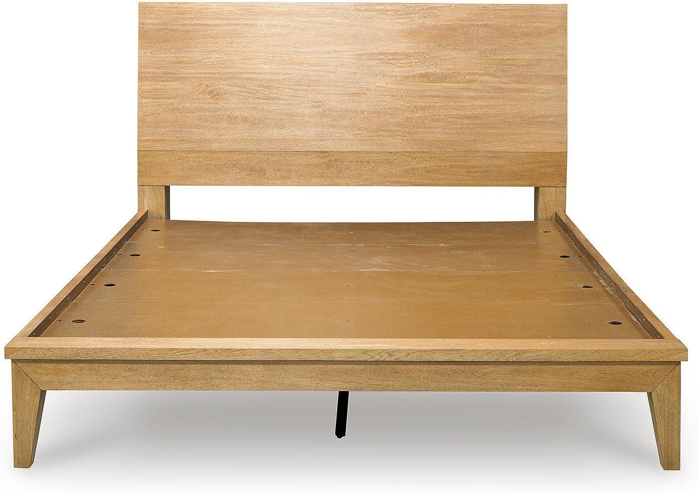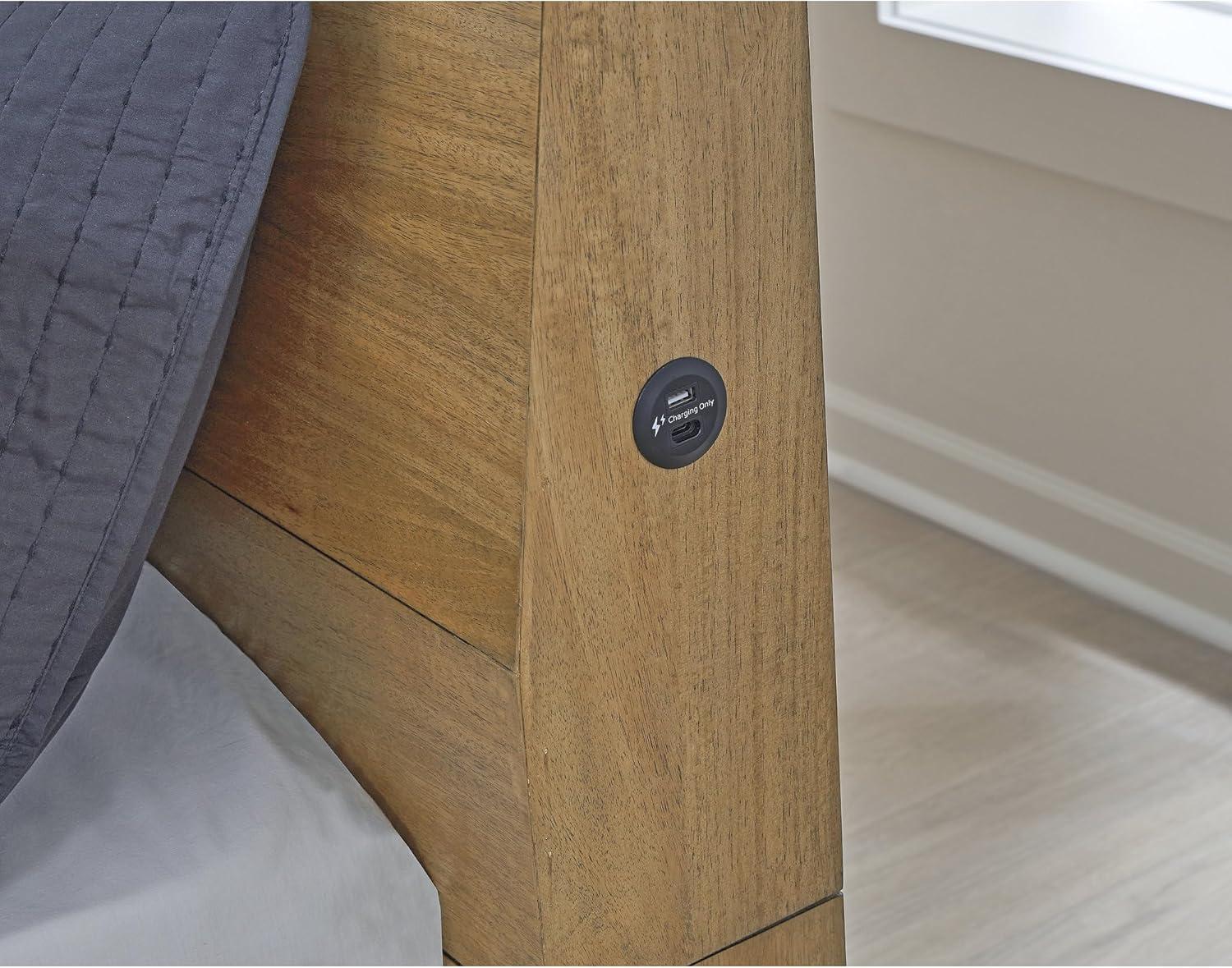 Signature Design by Ashley Sherbana Scandinavian Queen Panel Platform Bed with Bunkie Board and USB Charging Ports, Foundation or Box Spring Not Needed, Light Brown(Queen Panel Bed)
