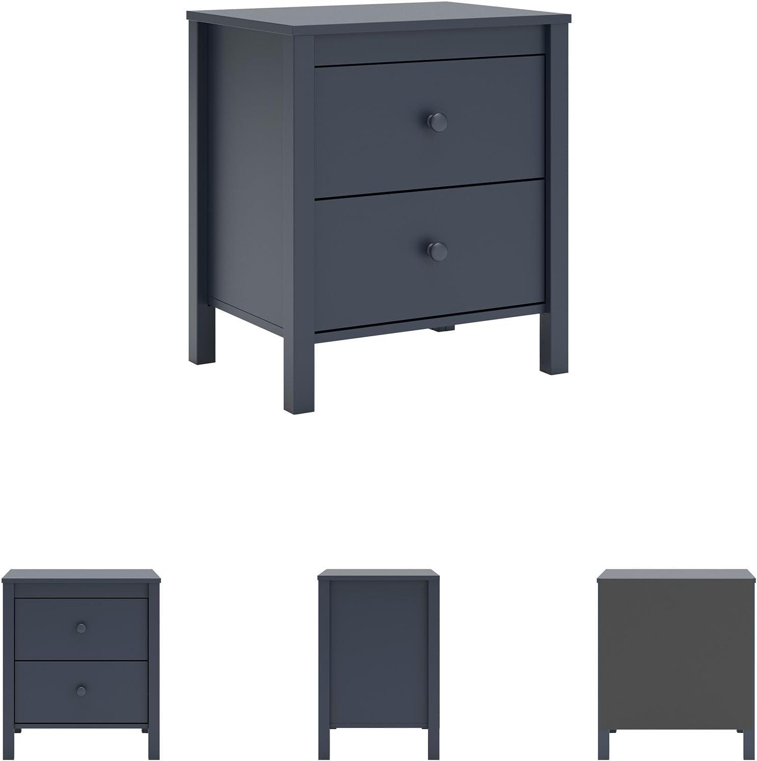 WELL MADE: Engineered wood & decorative laminate with matte navy blue finish. Knobs with matte navy blue finish. 2 smooth-gliding drawers with vinyl-wrapped sides and back for durability