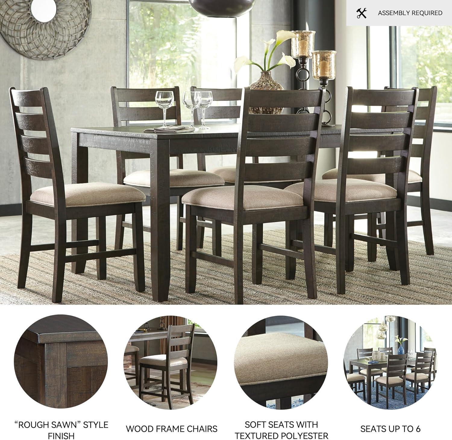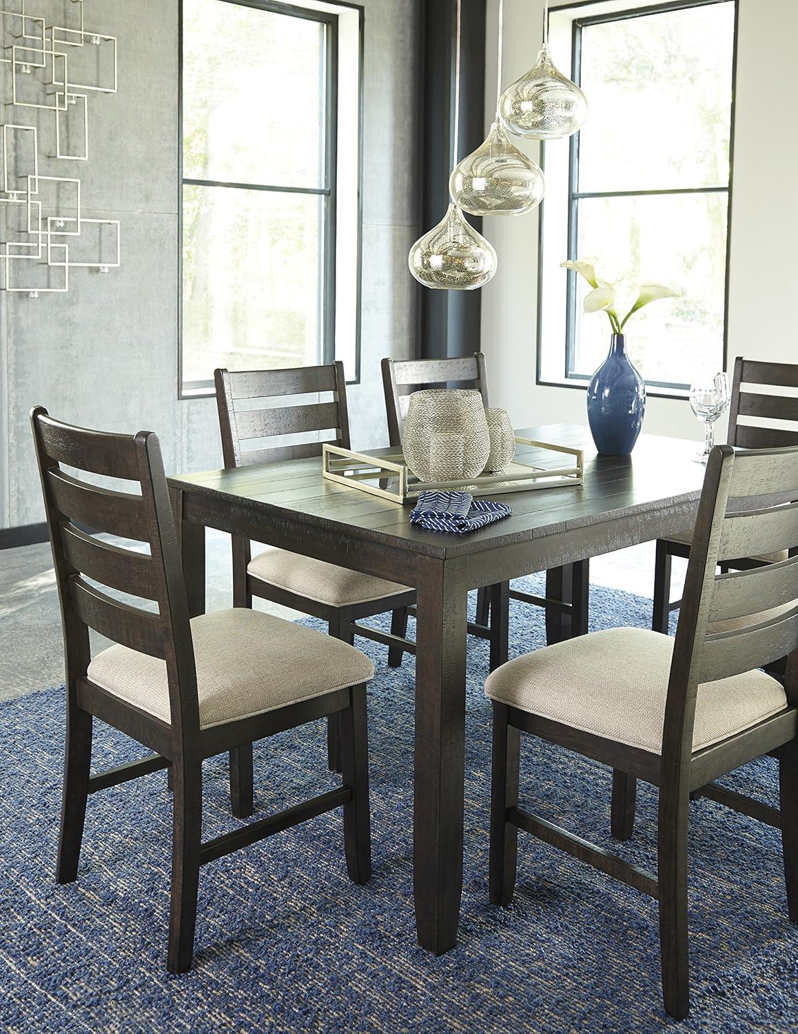 Set the scene for coastal chic or modern farmhouse living with this dining room table set. Clean-lined, simply striking table doubles the charm with a brown tone top with plank effect, paired with a grayish white base with rub through effect for timeworn appeal. Six chairs with classic ladderback styling and comfortably upholstered seats make room for one and all. Whether your home is contemporary or modern, there’s a durable dining table set finish or material that’s perfect for your space. Whatever your specific tastes, we have a dining room set that combines the latest trends with technology to give you the very best for your home. With unmatched prices and quality, we’re your one-stop destination for furniture and home accents and decor, like throw pillows, blankets and more.