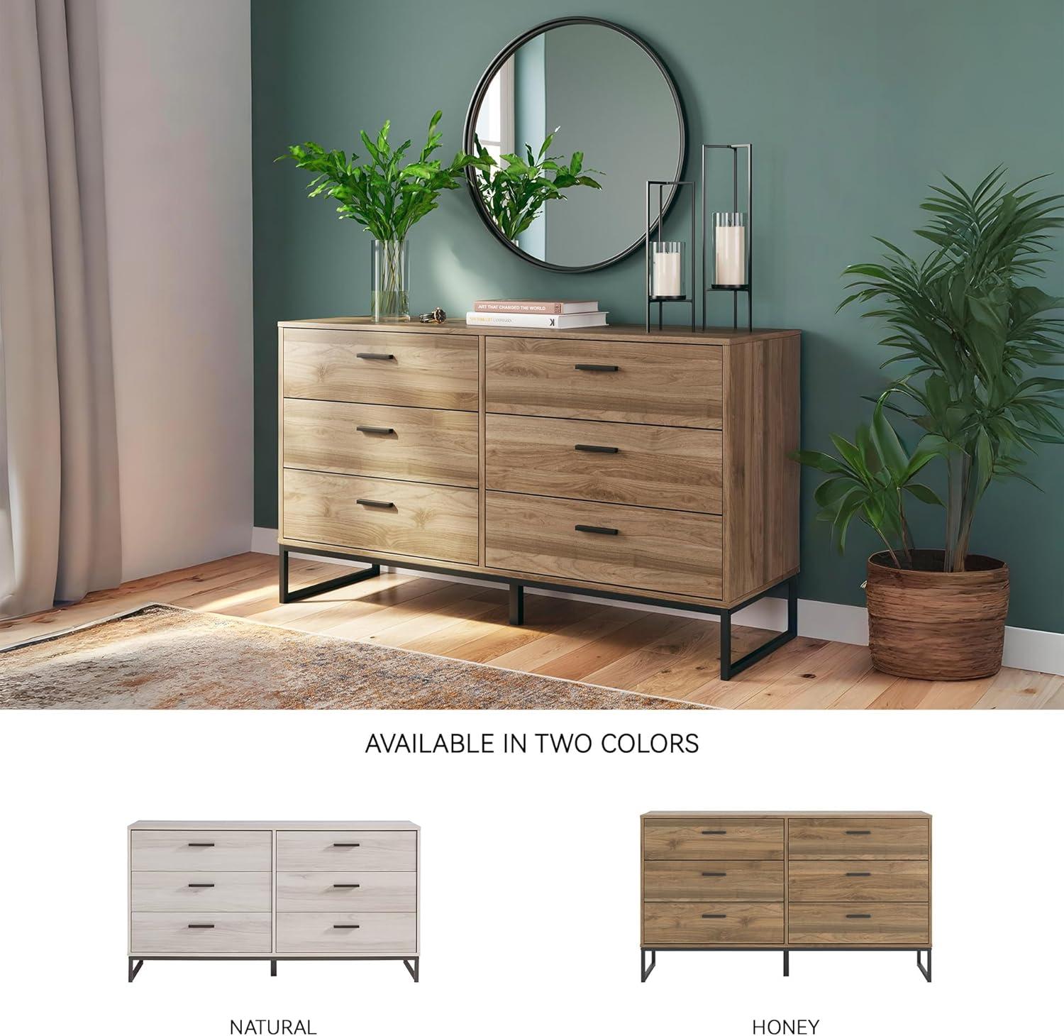 Light and bright, this dresser is inspired by chic design. A light natural finish over replicated oak grain offers an authentic touch to this so-cool piece. It beautifully blends the hues of natural living with the edginess of your modern lifestyle. Whether you need storage space for clothes, linens or toys, you're sure to find the right fit. Your dream bedroom is closer than you think–our wide selection of finishes and features fulfill your decor needs, from casual to contemporary. And we go the extra mile to package, protect and deliver your purchase in a timely manner. Trust us to bring your space to life with furniture and decor that show off your style and personality.