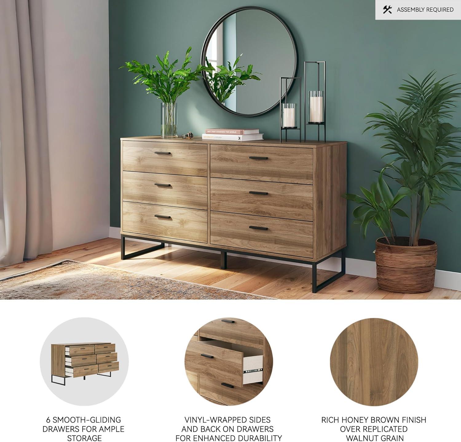 Signature Design by Ashley Socalle 6 Drawer 59″ Dresser, Beige(Brown/Black)