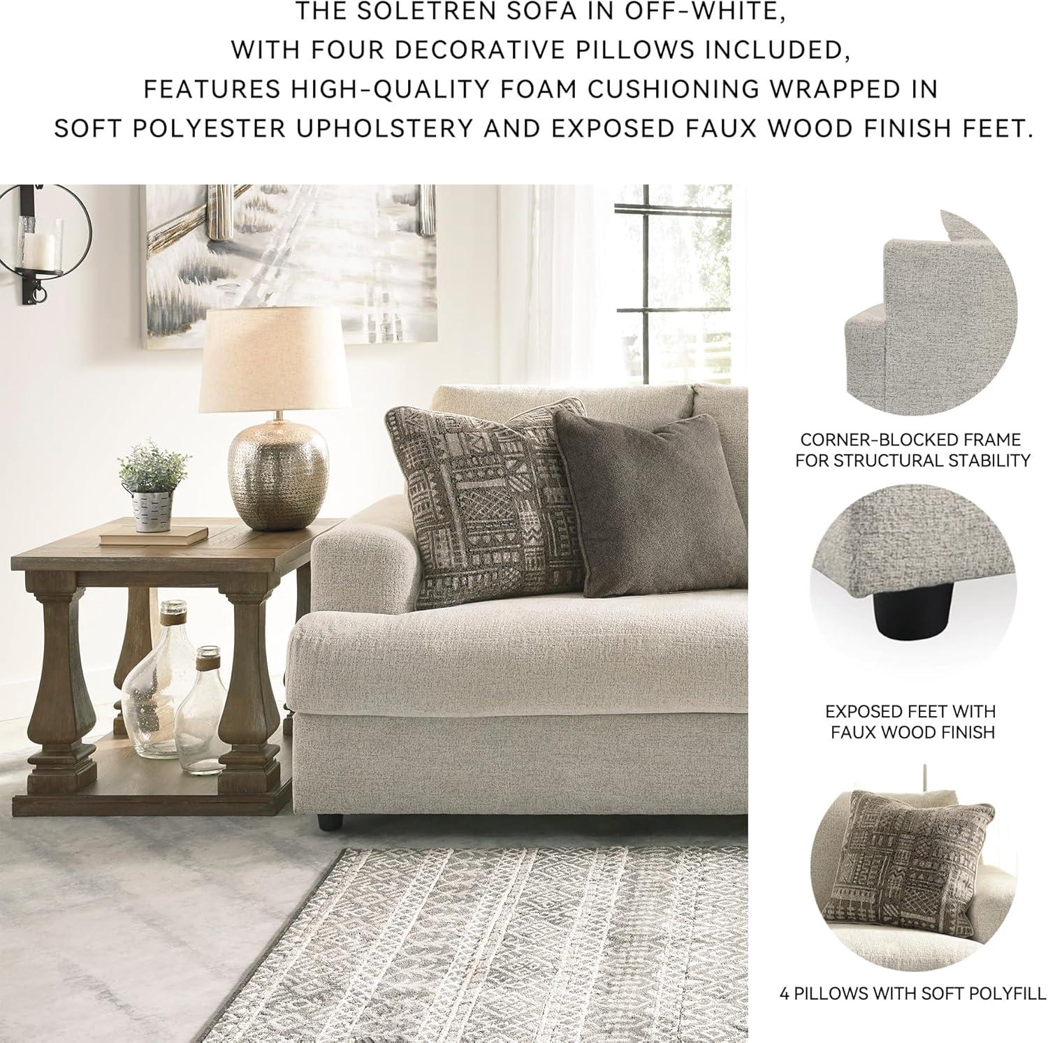 Signature Design by Ashley Soletren Contemporary Chenille Queen Sofa Sleeper with 4 Accent Pillows, Off-White(Cream)