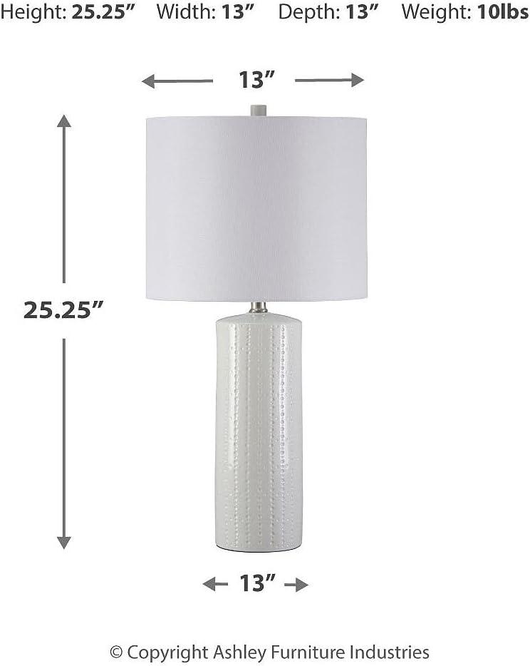 Its base teeming with texture, this ceramic table lamp proves that a monochromatic design can still be visually interesting. Clean lines and a crisp finish are quintessential contemporary. It is the perfect way to spice up your room, all while providing warm ambient lighting to set the mood. Brighter, well-lit spaces always tend to look larger, smarter and so much more visually appealing. With our wide variety of table lamp shapes, sizes and styles, we’d say your future is definitely looking bright. And we go the extra mile to package, protect and deliver your purchase in a timely manner.