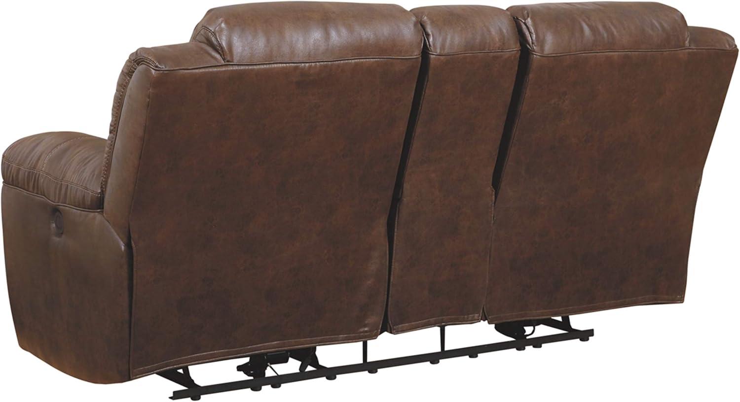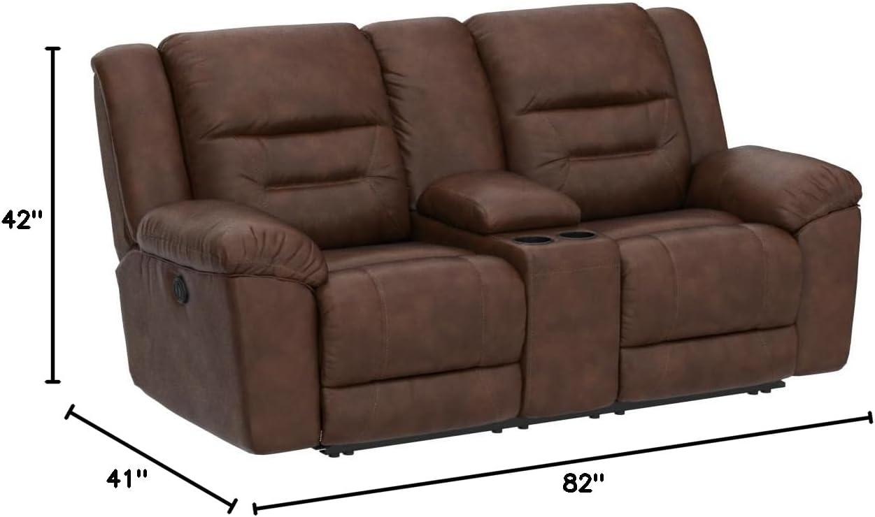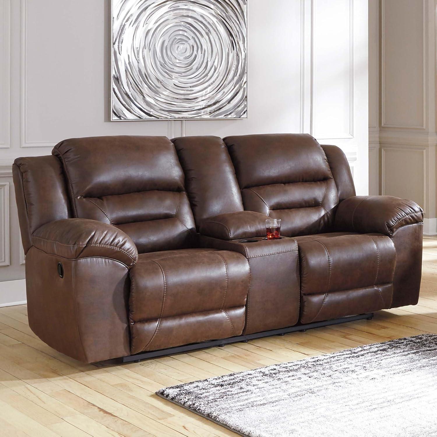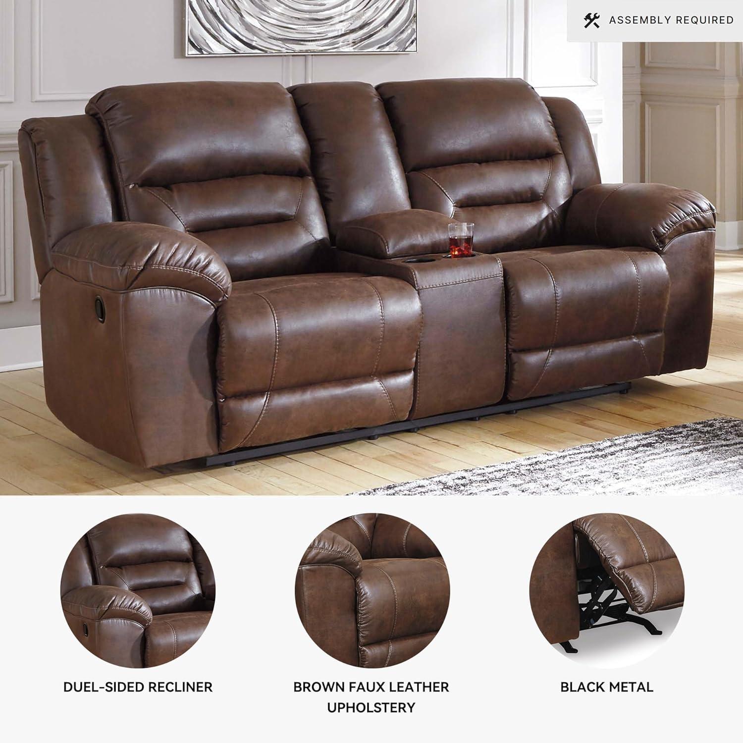 Signature Design by Ashley Stoneland Faux Leather Power Double Reclining Loveseat with Center Console, Dark Brown(Brown)