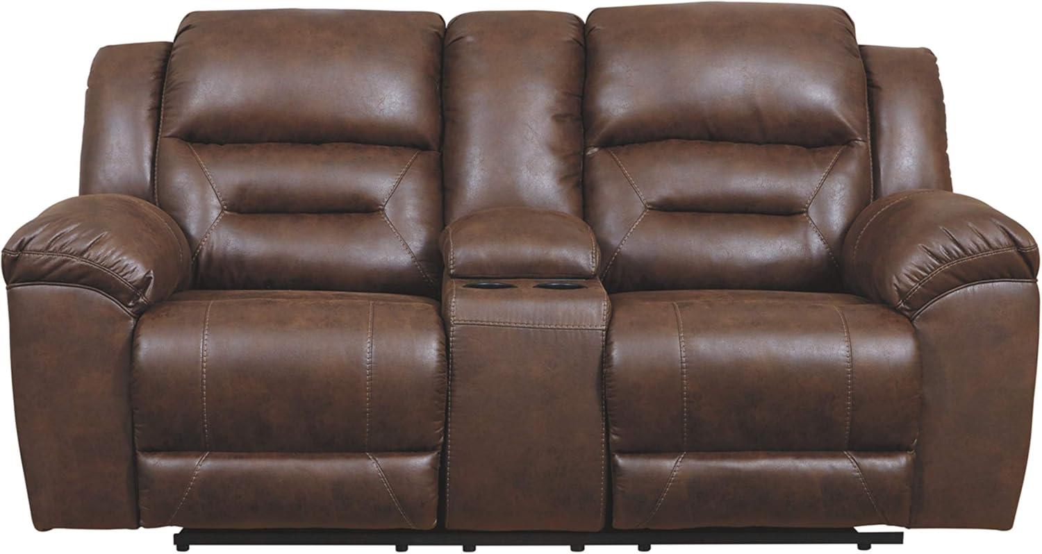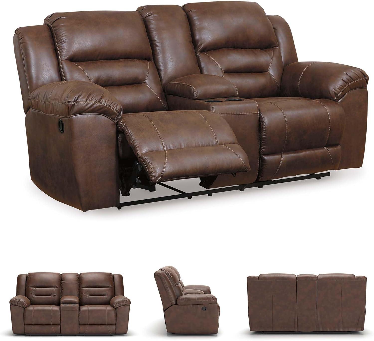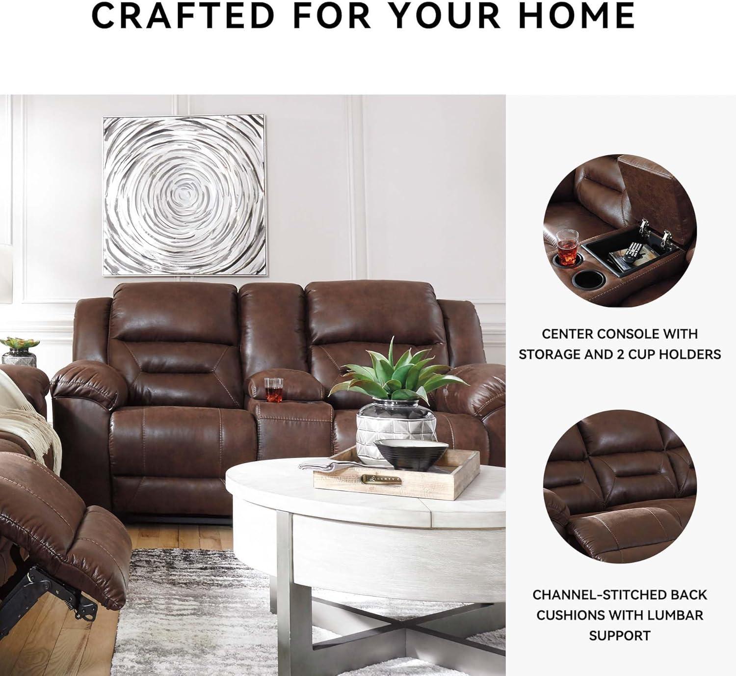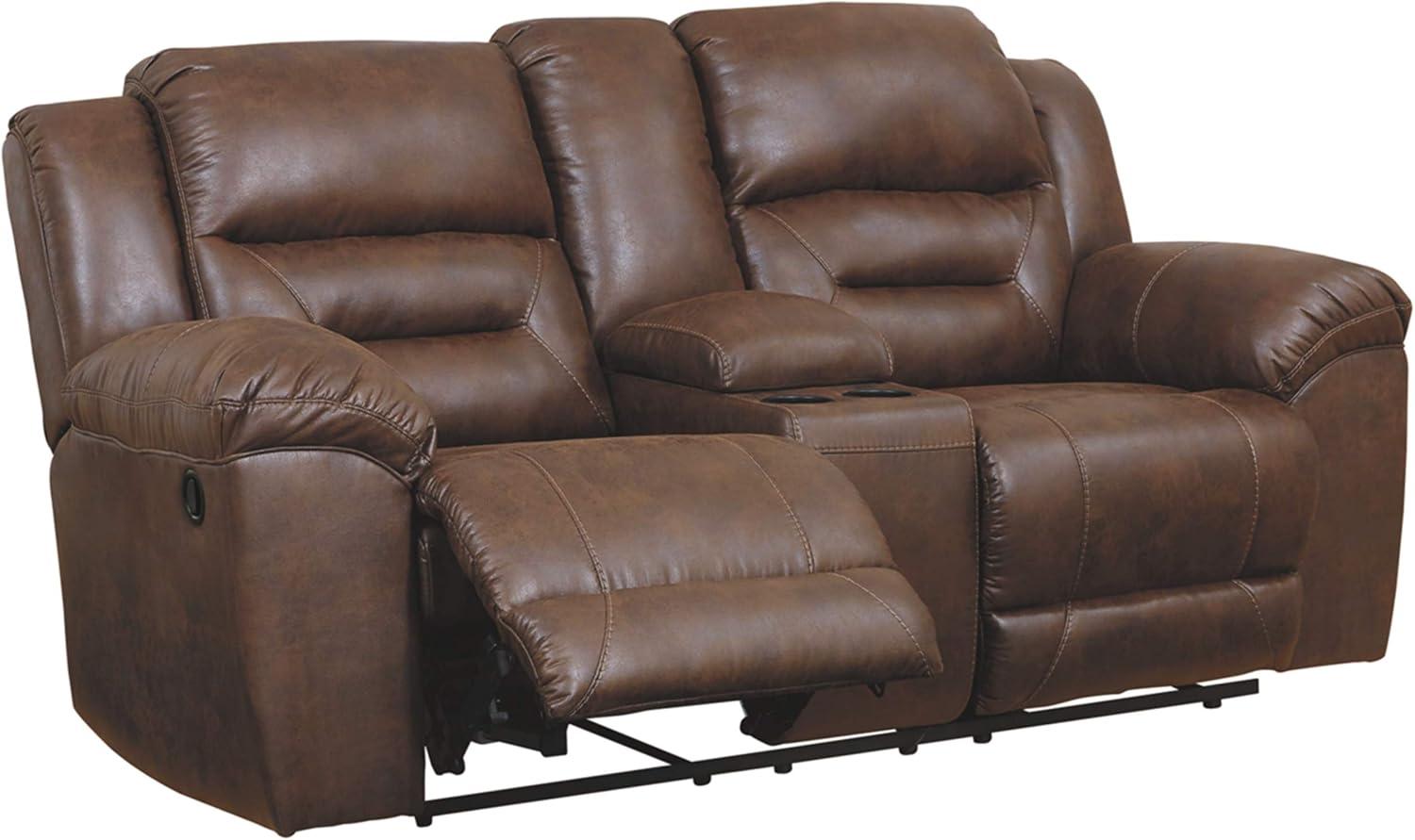 Signature Design by Ashley Stoneland Faux Leather Power Double Reclining Loveseat with Center Console, Dark Brown(Brown)