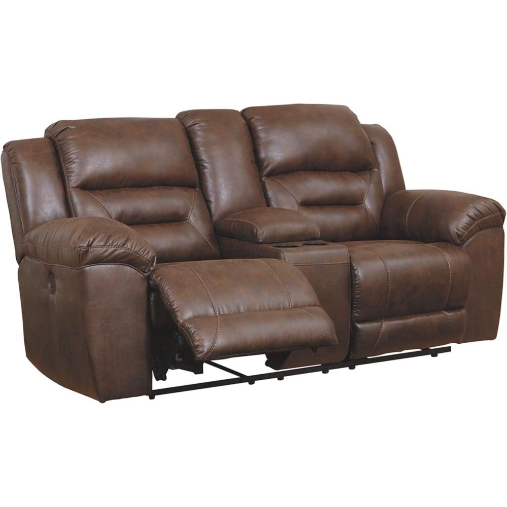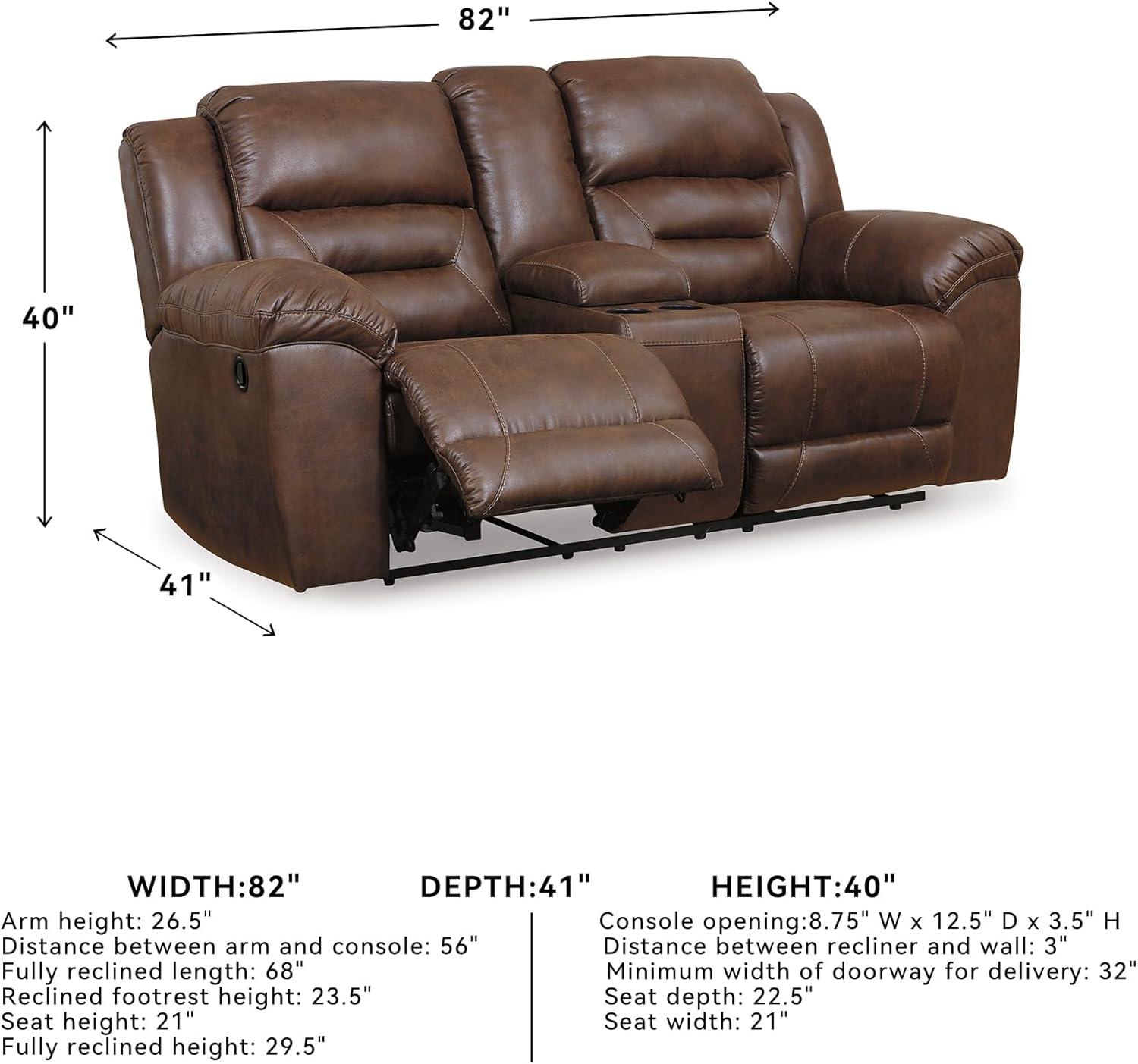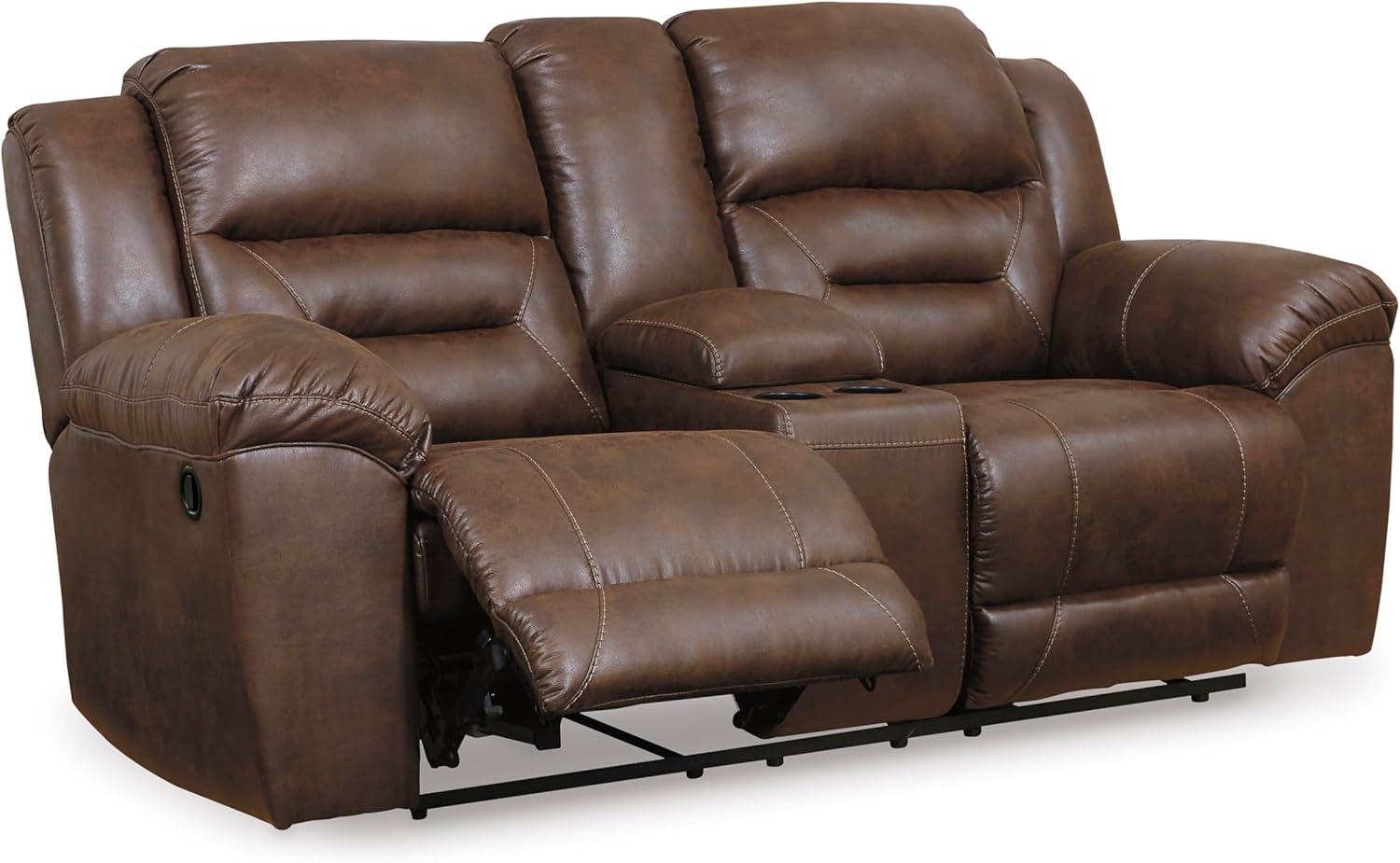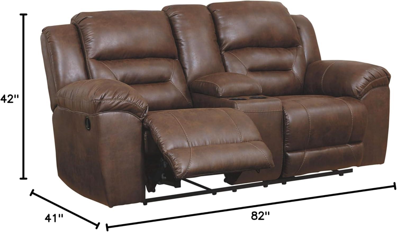 Signature Design by Ashley Stoneland Faux Leather Power Double Reclining Loveseat with Center Console, Dark Brown(Brown)
