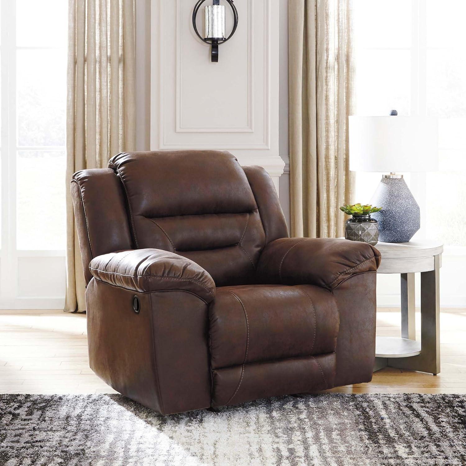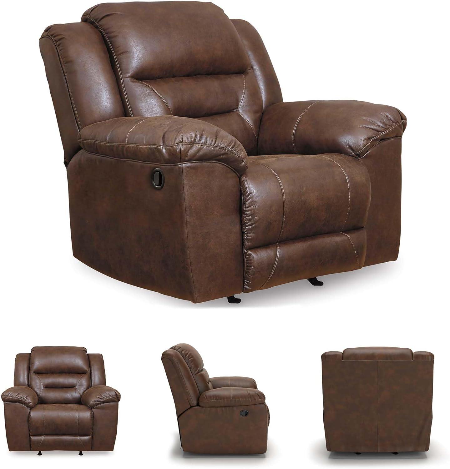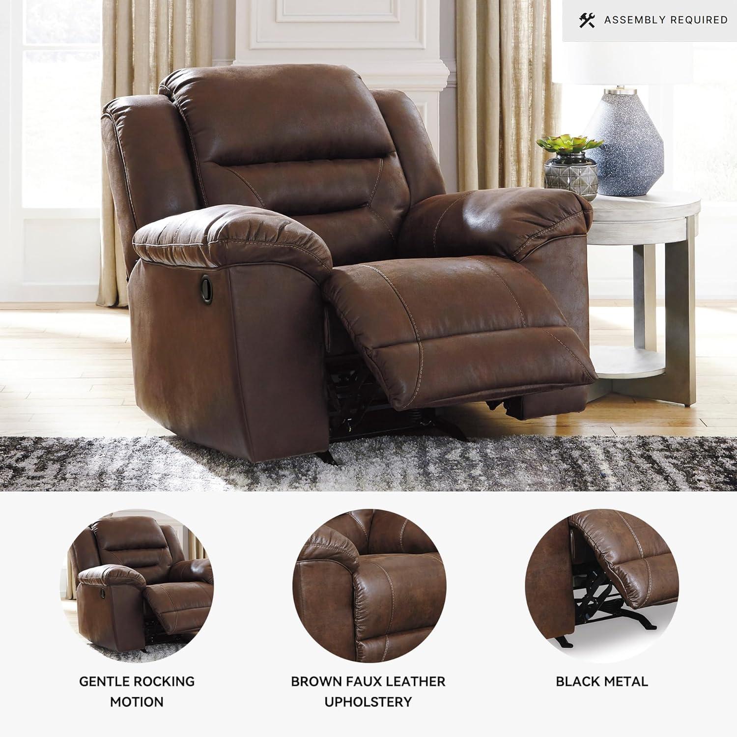 Signature Design by Ashley Stoneland Faux Leather Power Rocker Recliner, Light Brown(Brown)