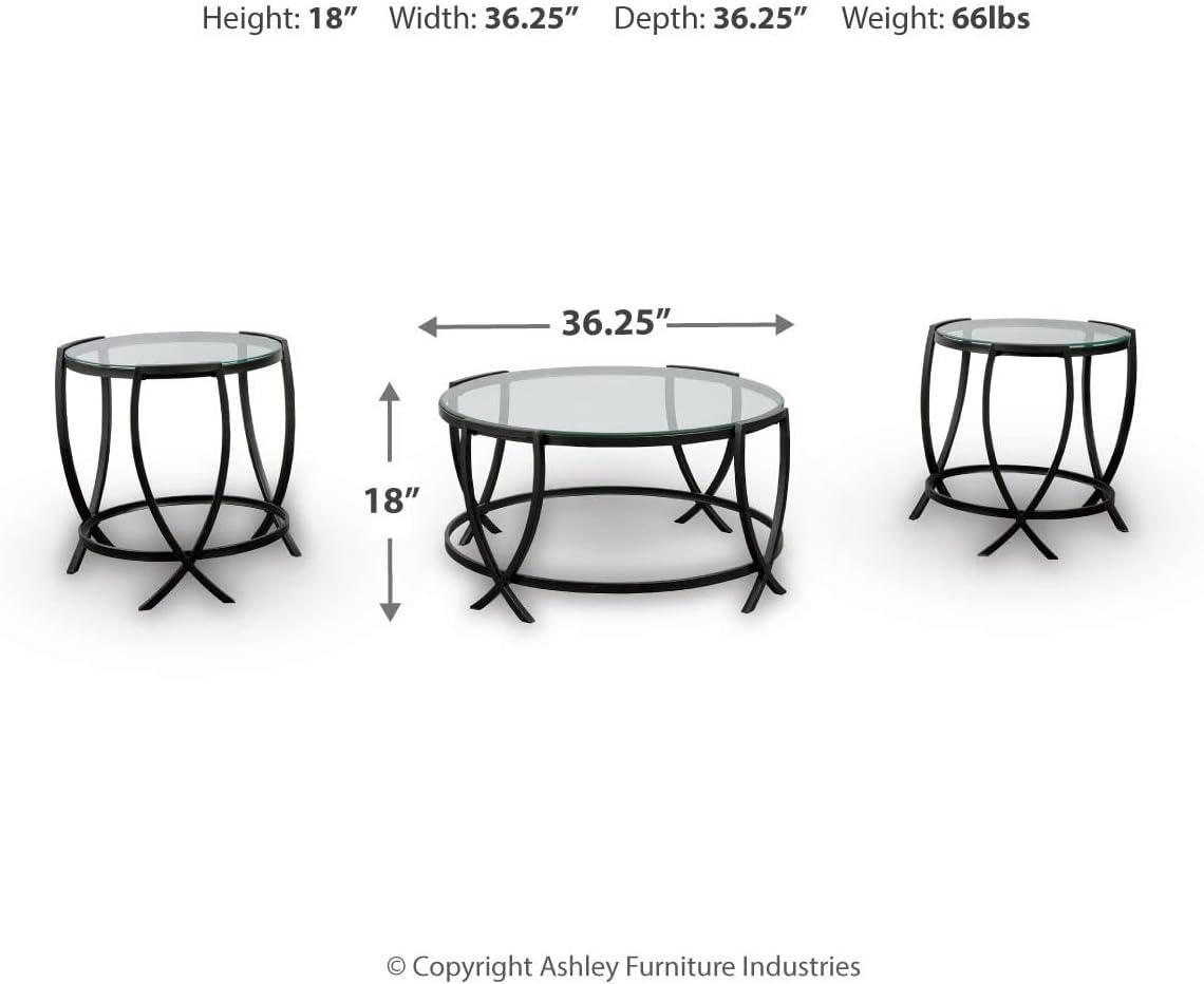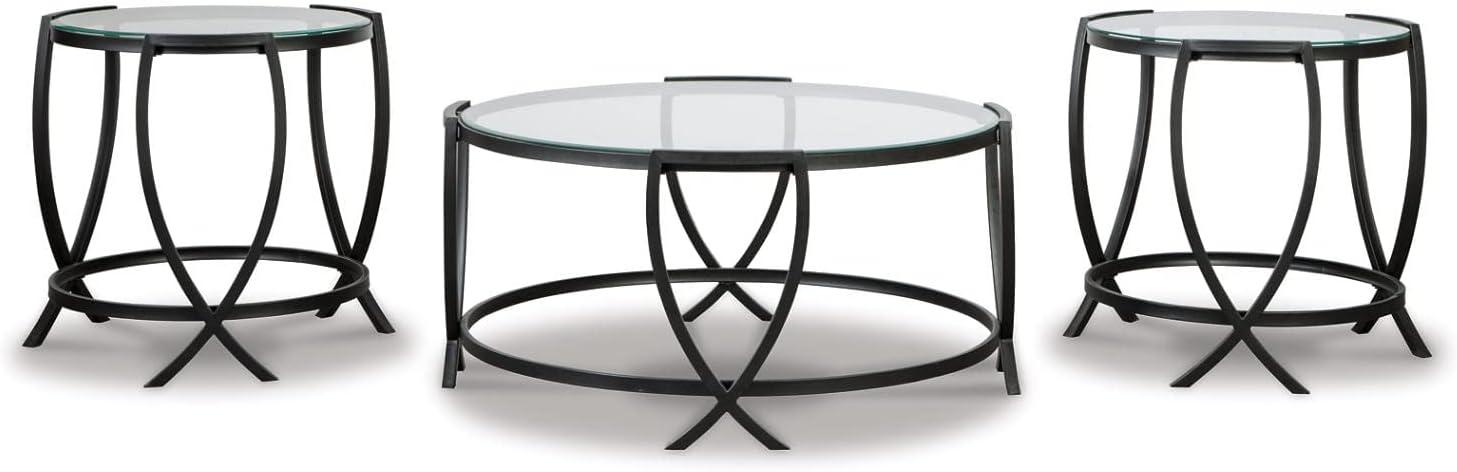 Signature Design by Ashley Tarrin Contemporary Glass Top Round 3-Piece Table Set, Includes Coffee Table and 2 End Tables, Black