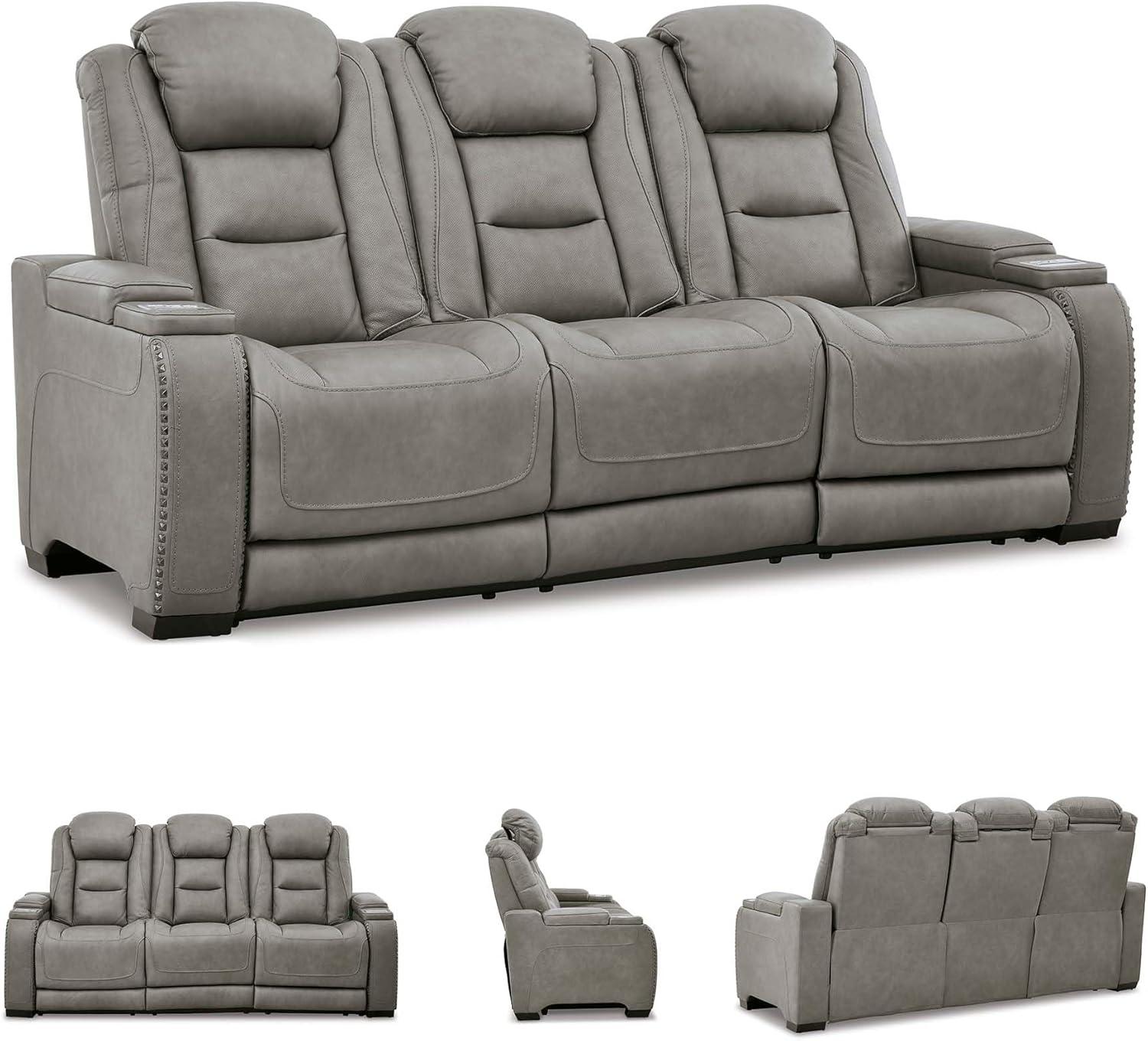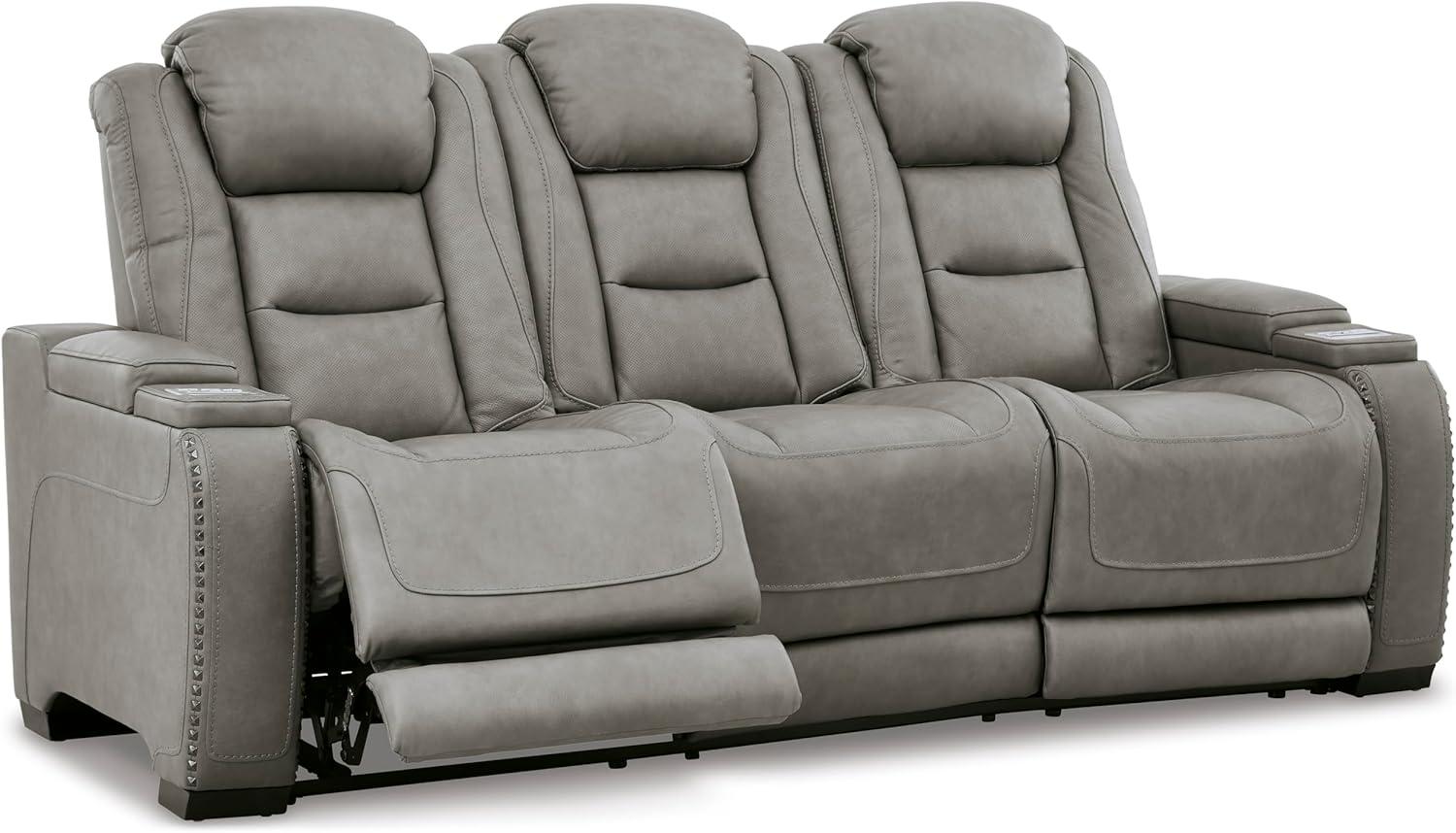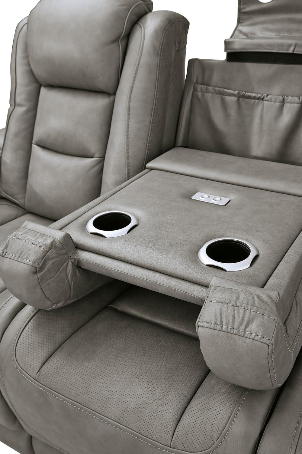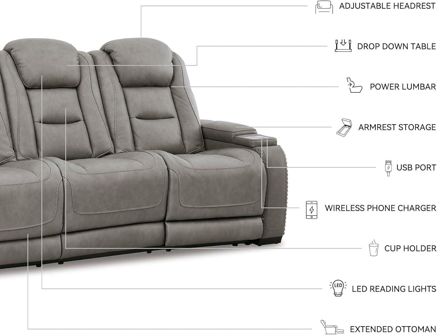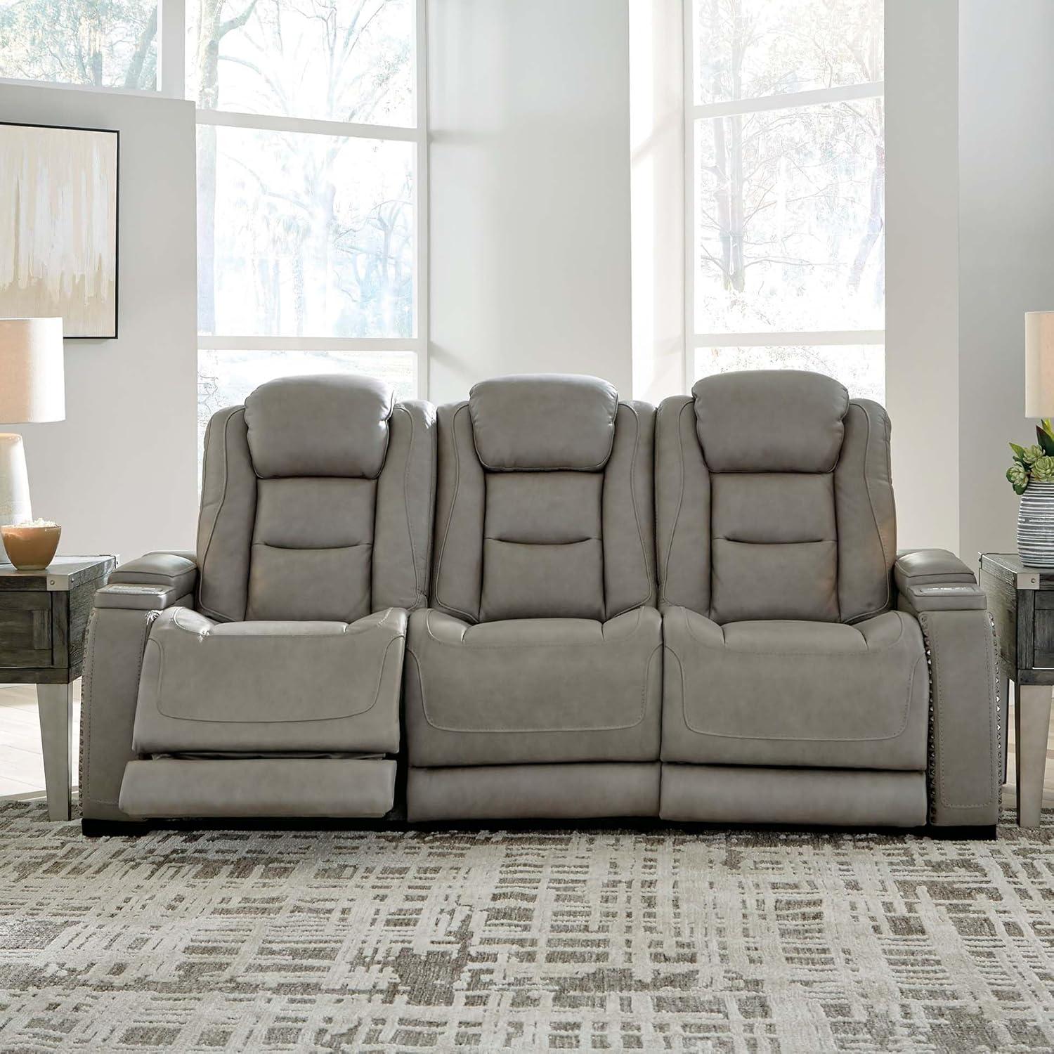 Signature Design by Ashley The Man-Den Leather Power Reclining Sofa with Adjustable Headrests & Wireless Charging, Gray(Grey)