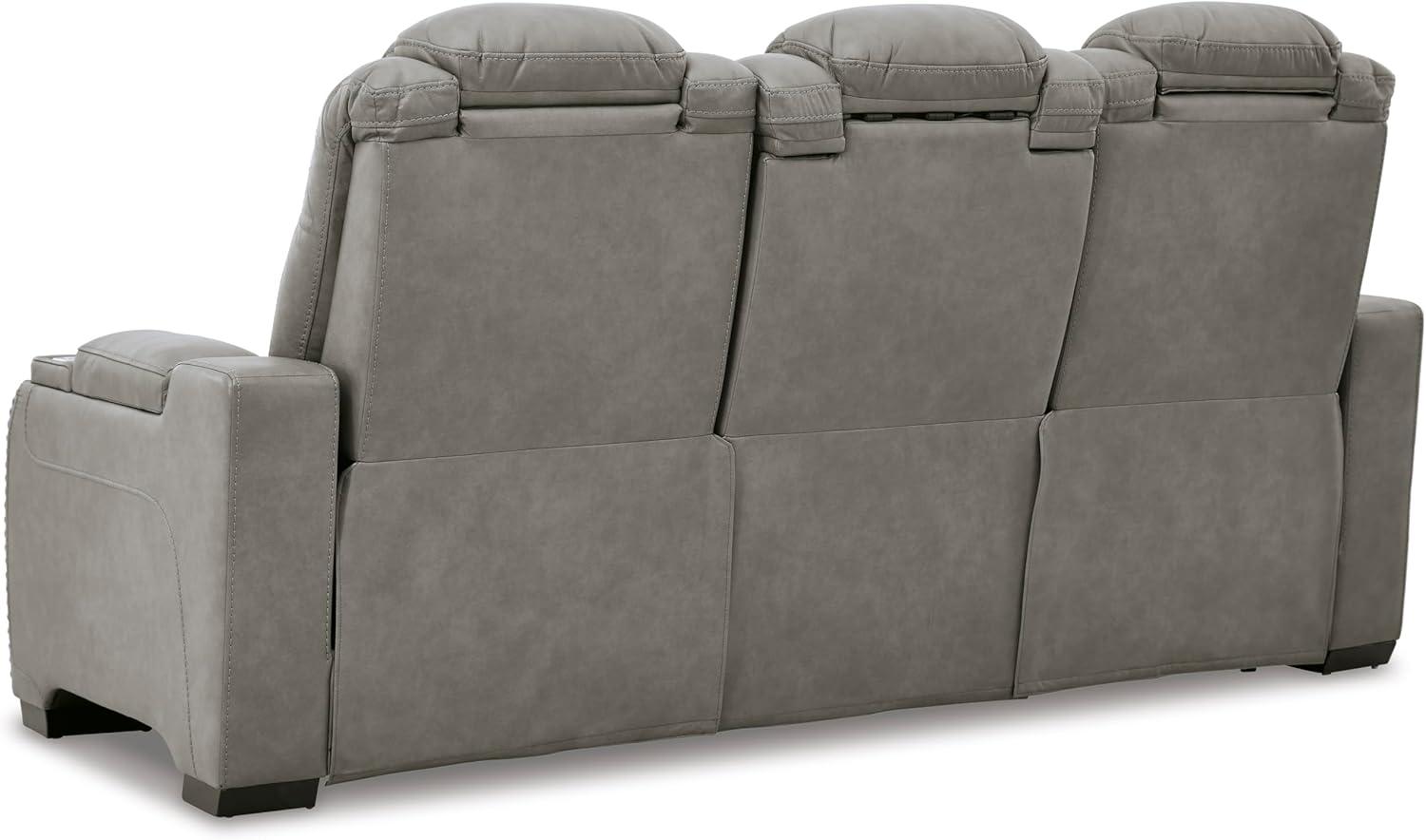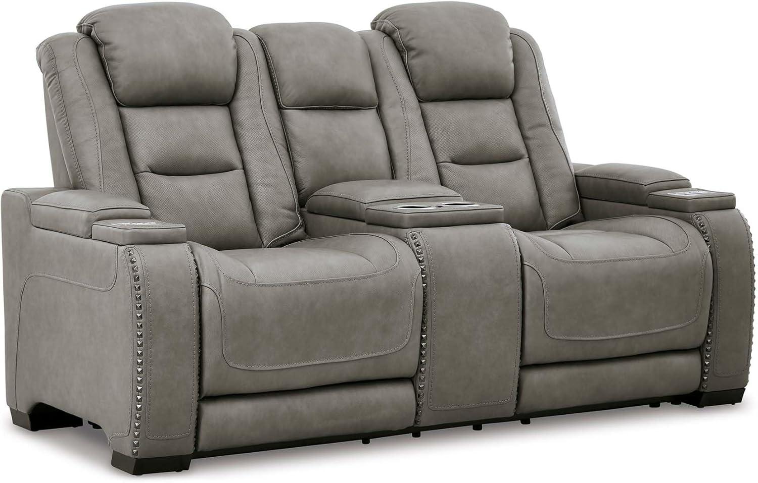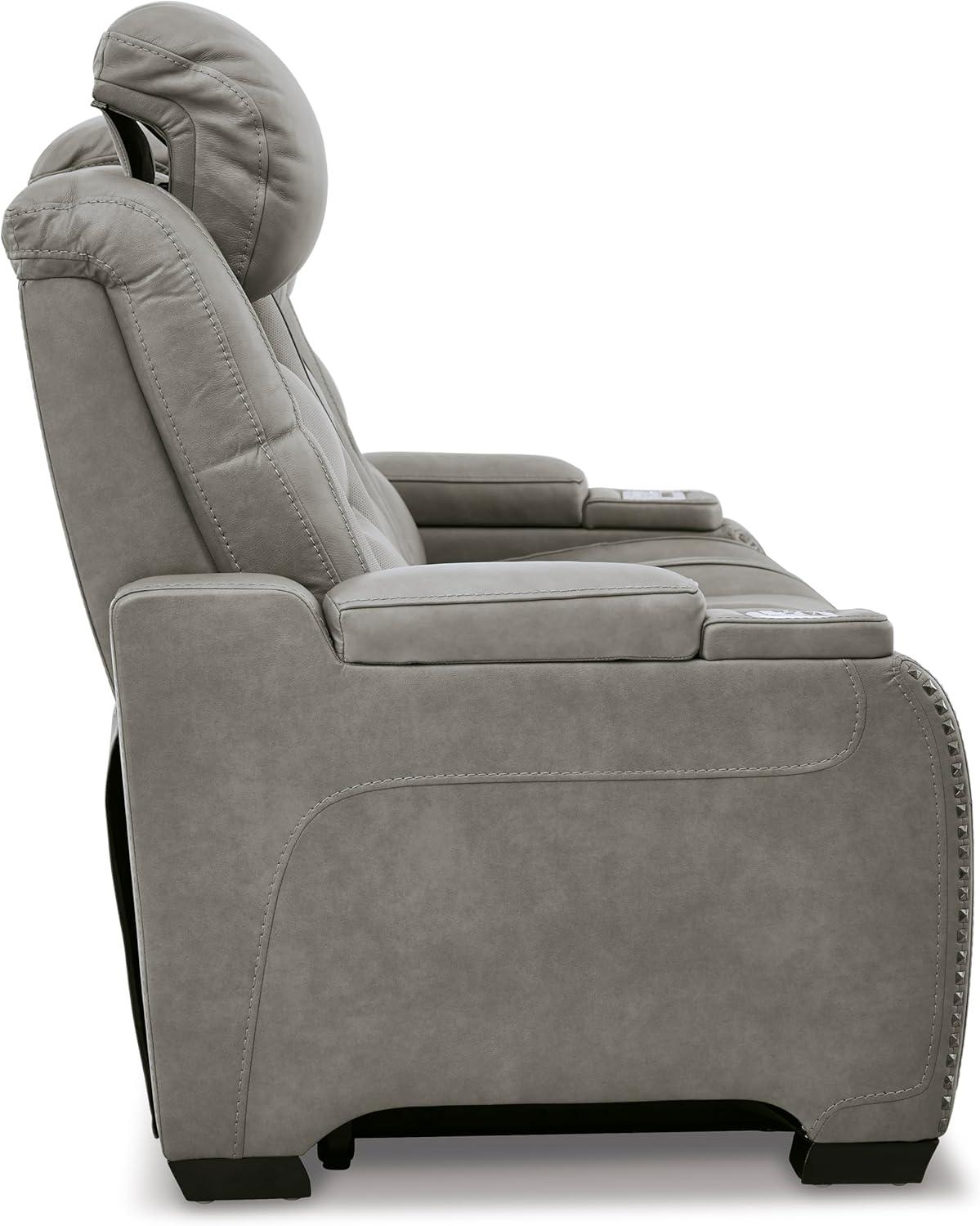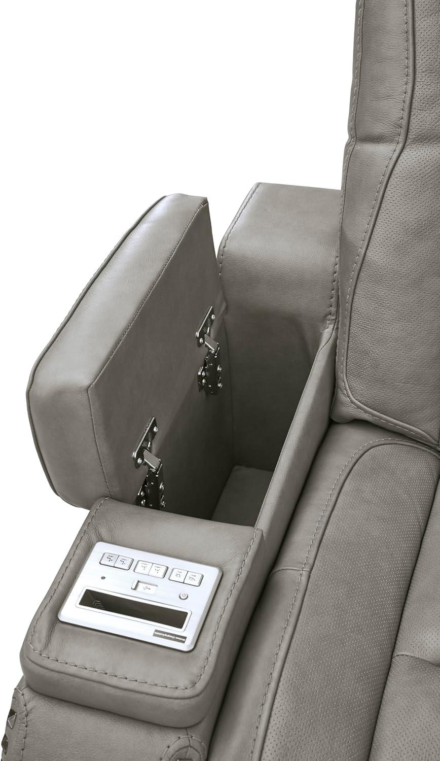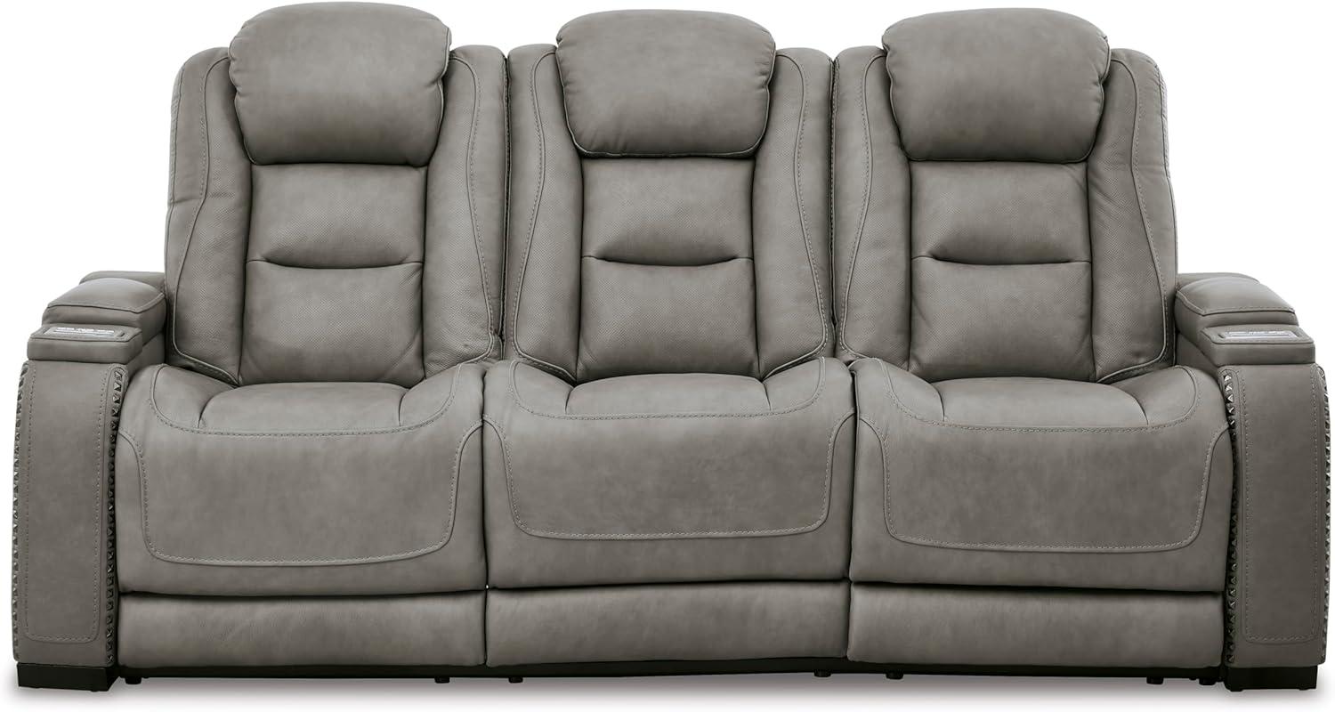 Signature Design by Ashley The Man-Den Leather Power Reclining Sofa with Adjustable Headrests & Wireless Charging, Gray(Grey)