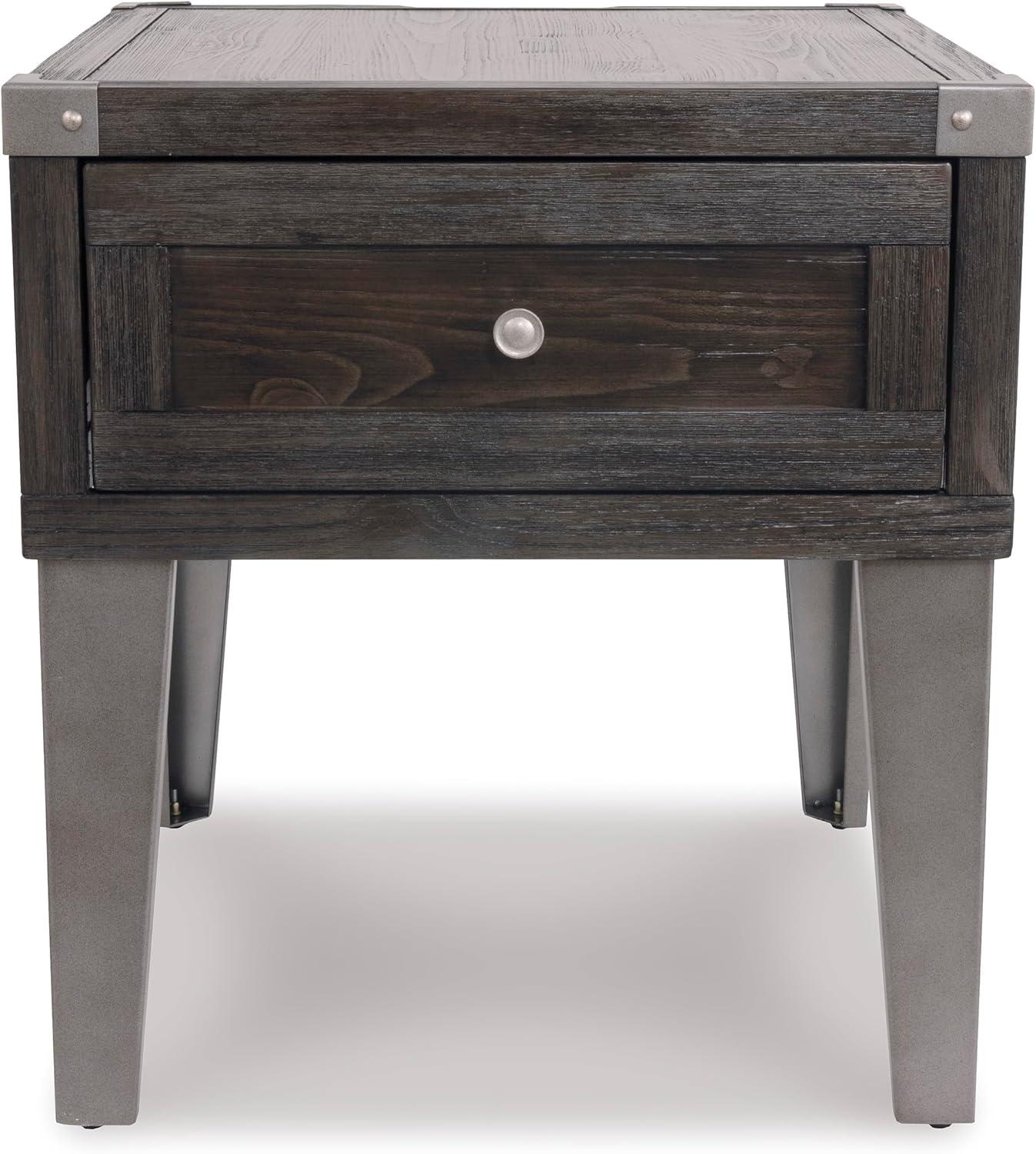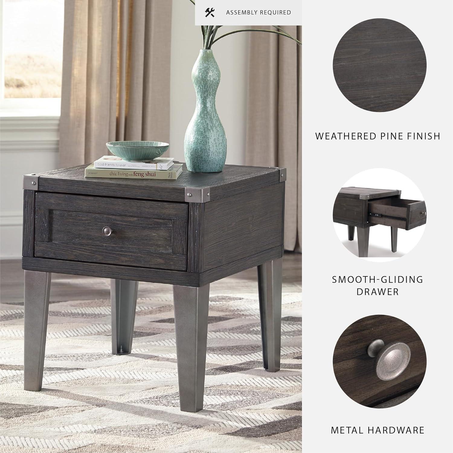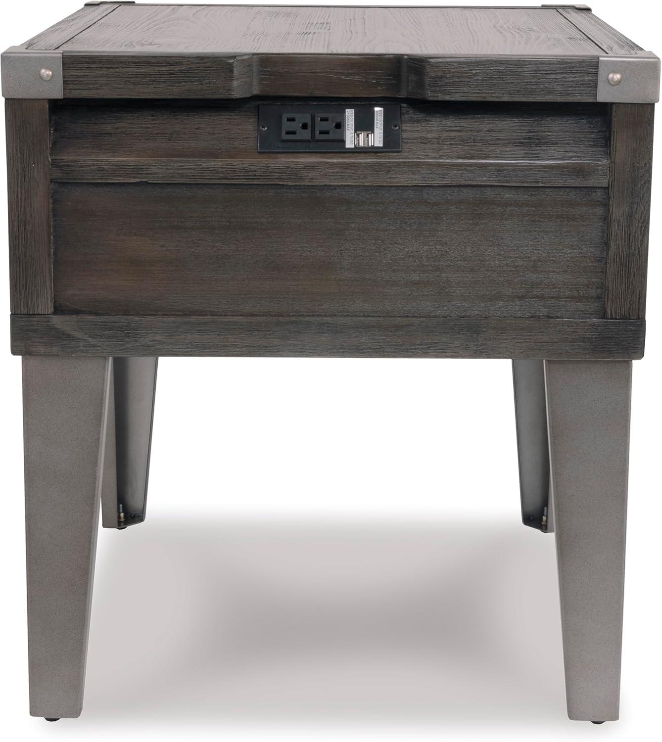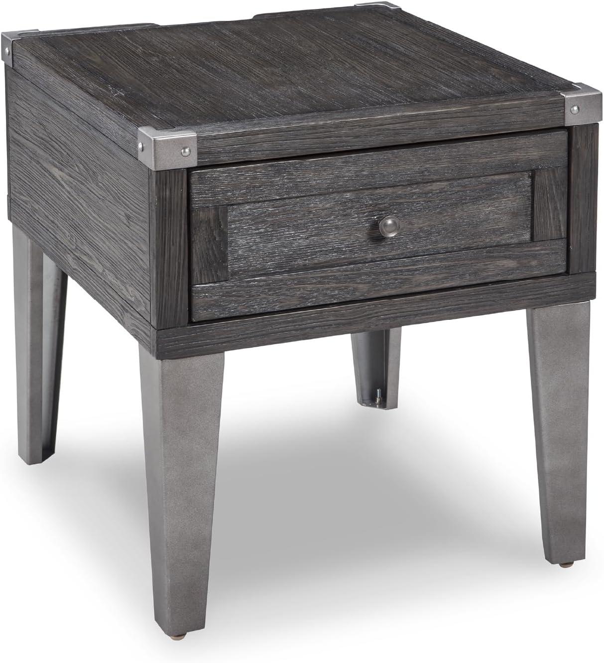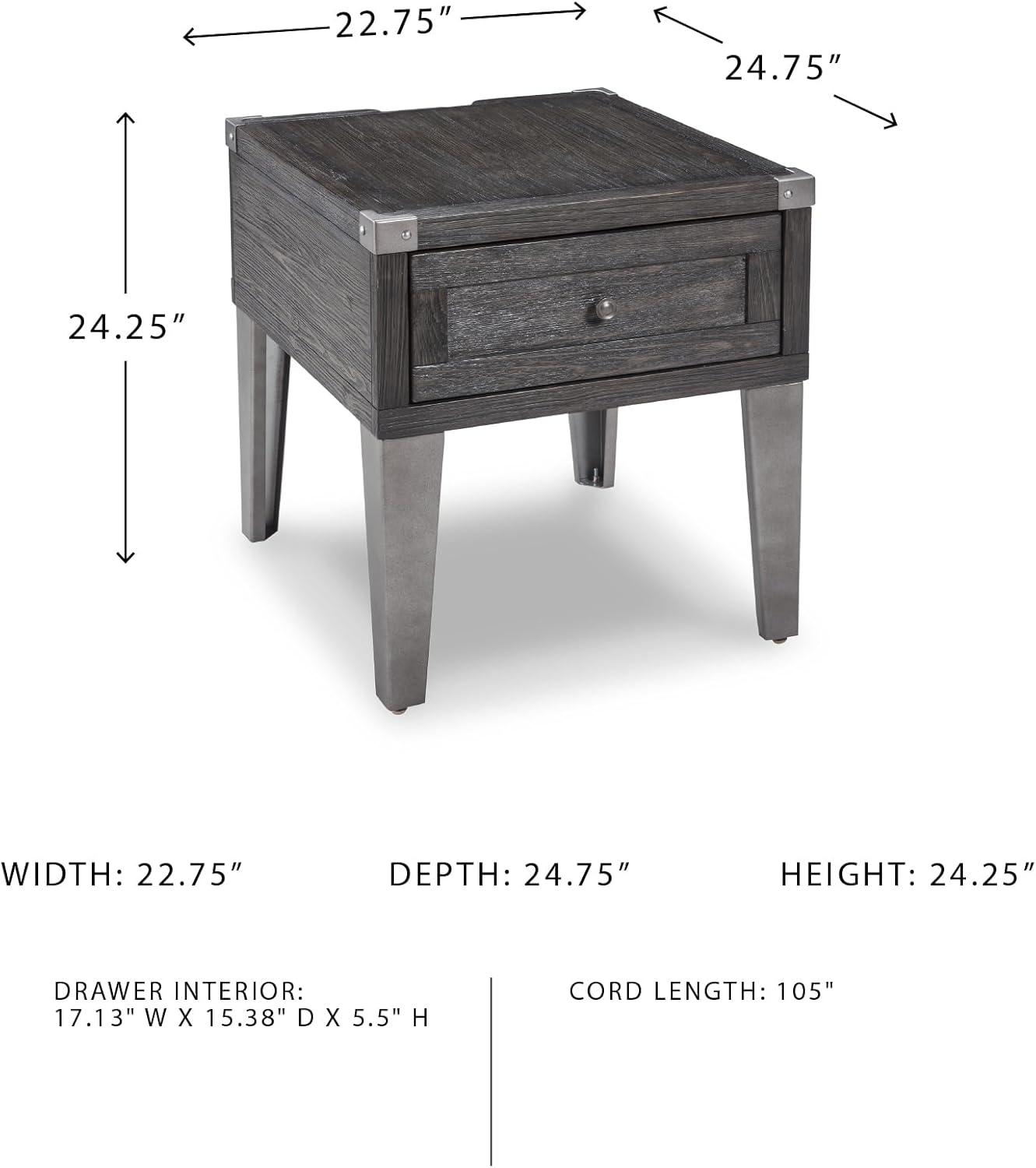 Signature Design by Ashley Todoe Industrial Square End Table with 1 Drawer, 2 Outlets and 2 USB Charging Ports, Dark Gray with Weathered Pine Finish(Dark Gray)