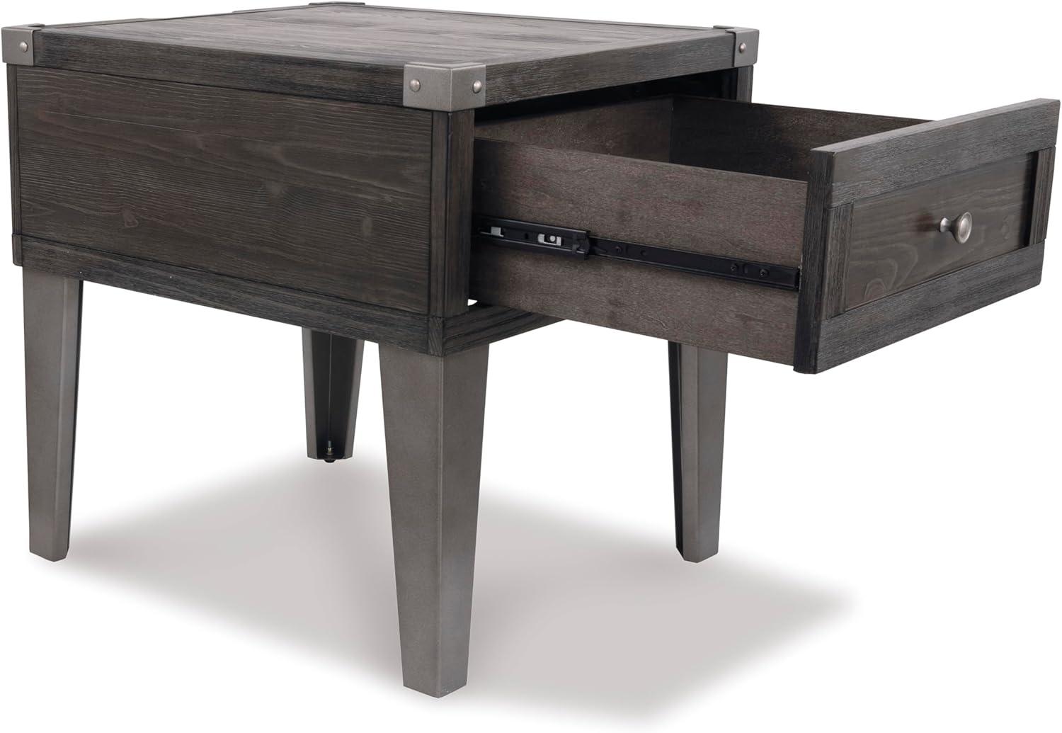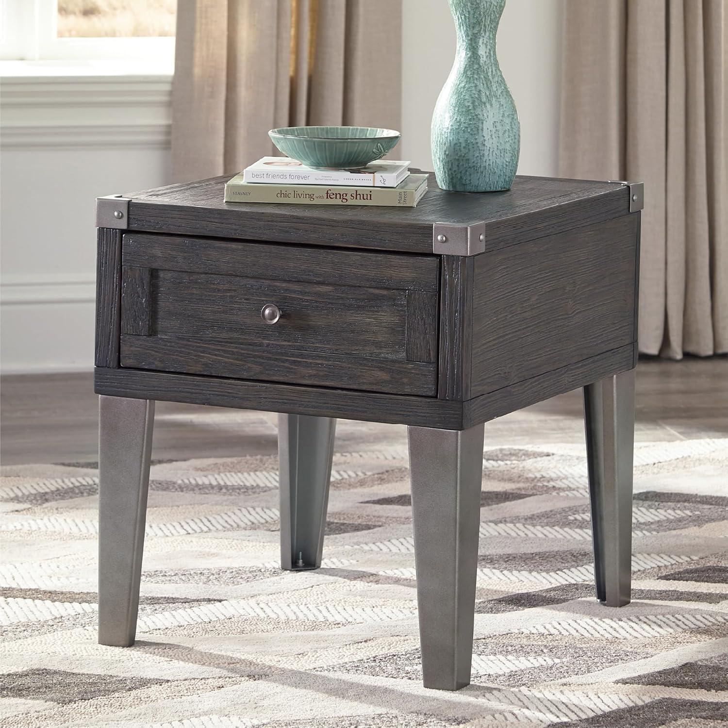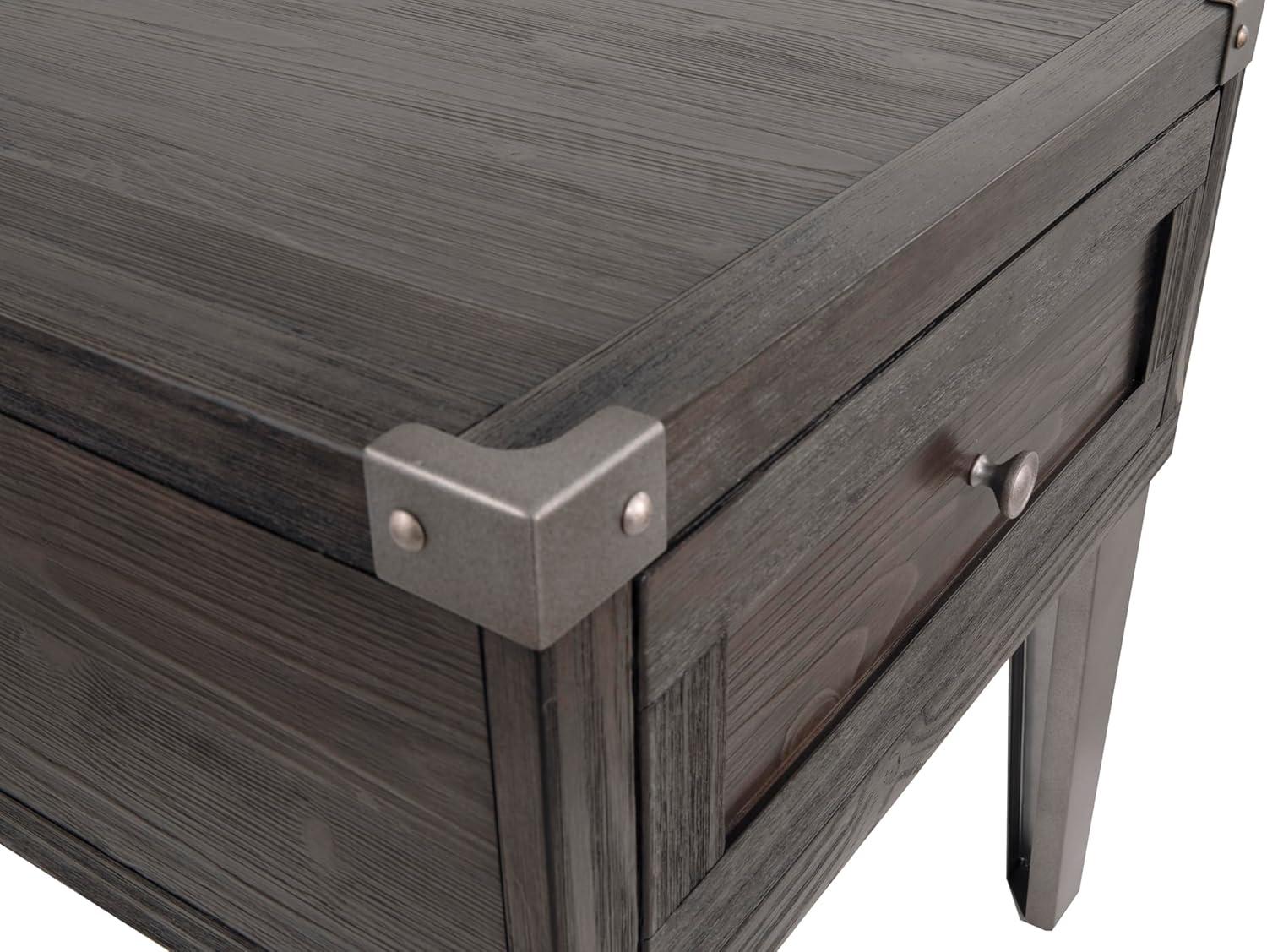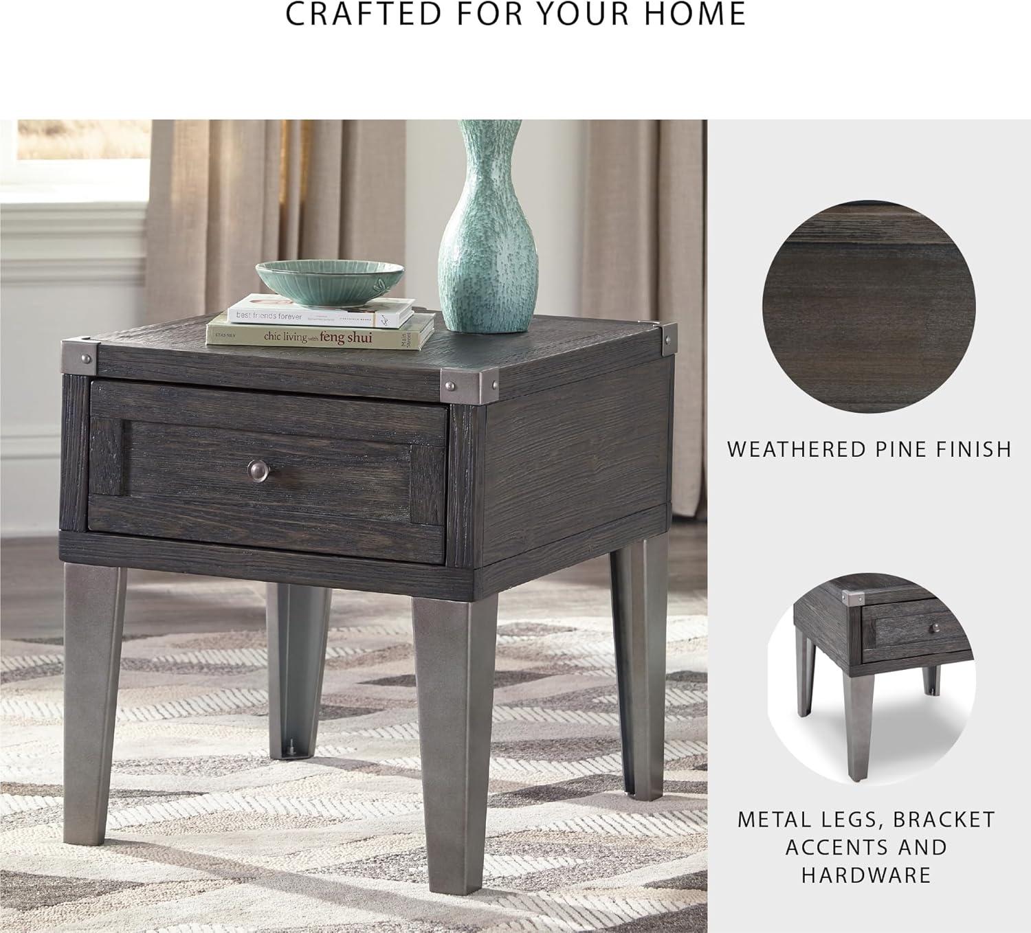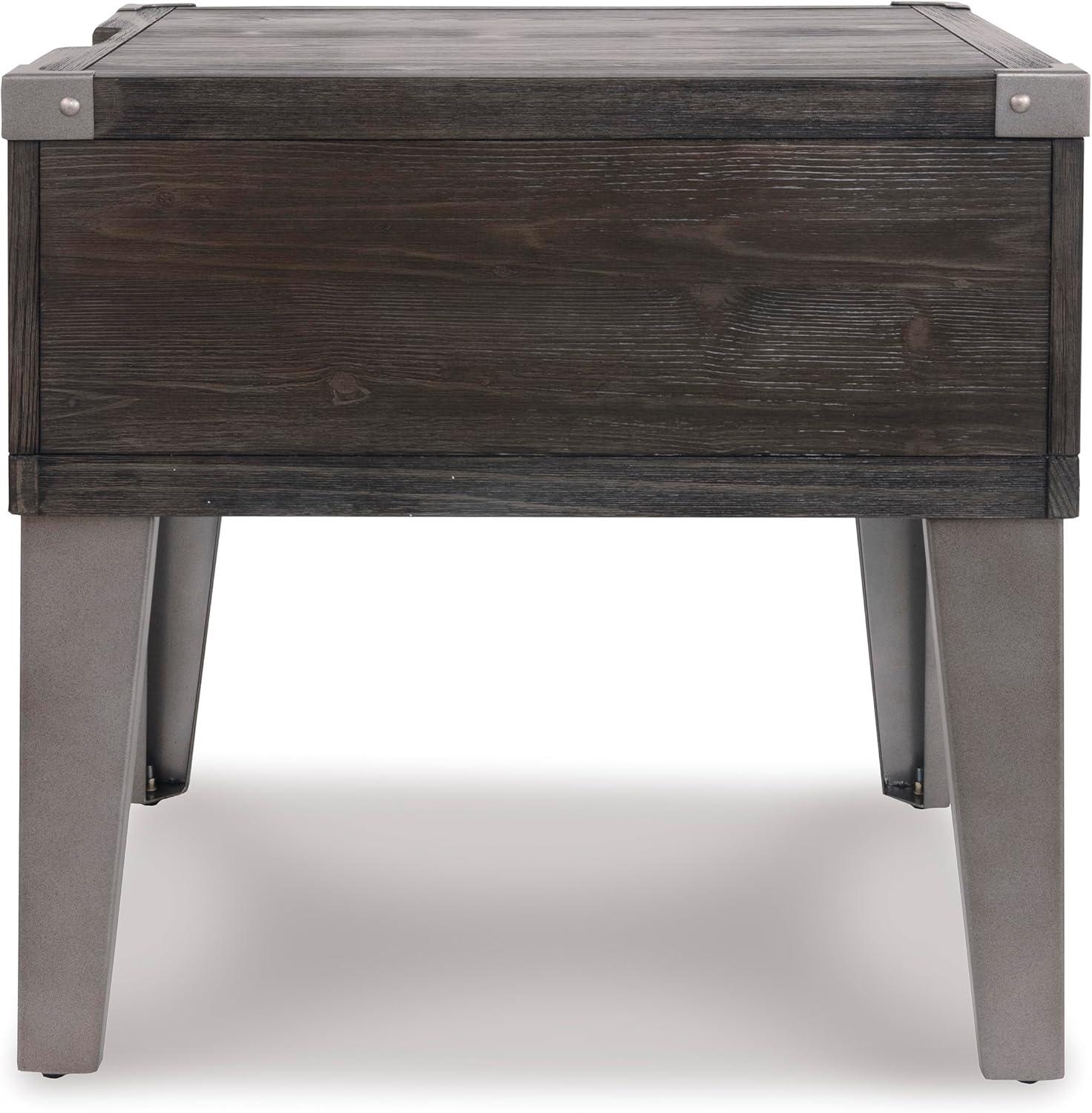 Signature Design by Ashley Todoe Industrial Square End Table with 1 Drawer, 2 Outlets and 2 USB Charging Ports, Dark Gray with Weathered Pine Finish(Dark Gray)