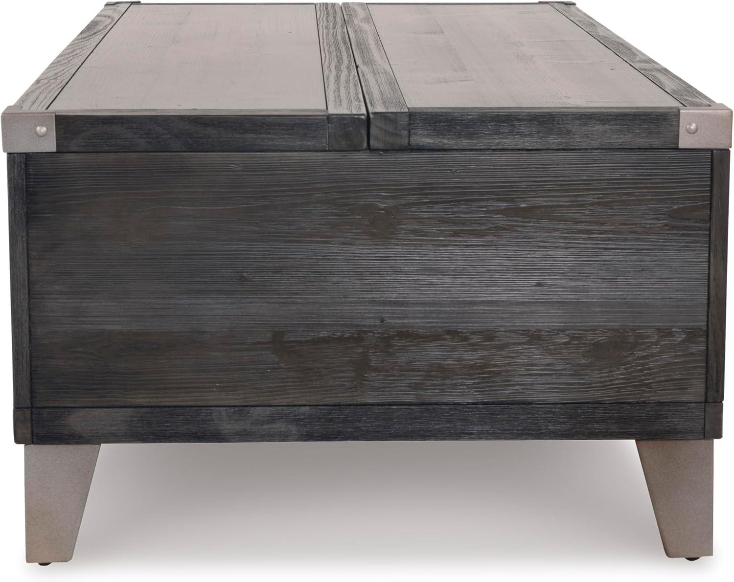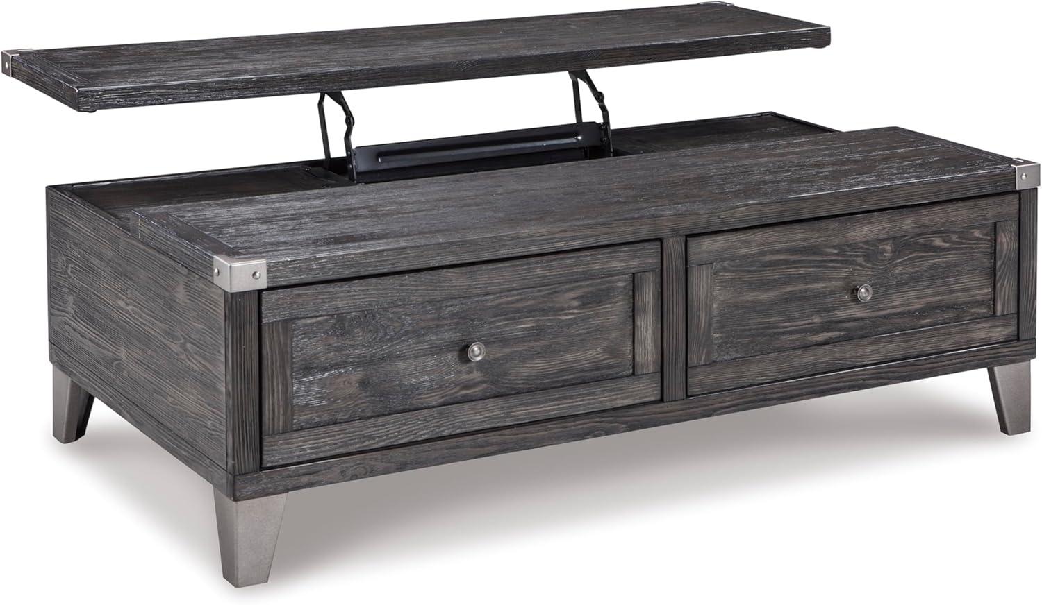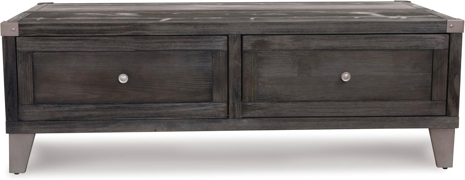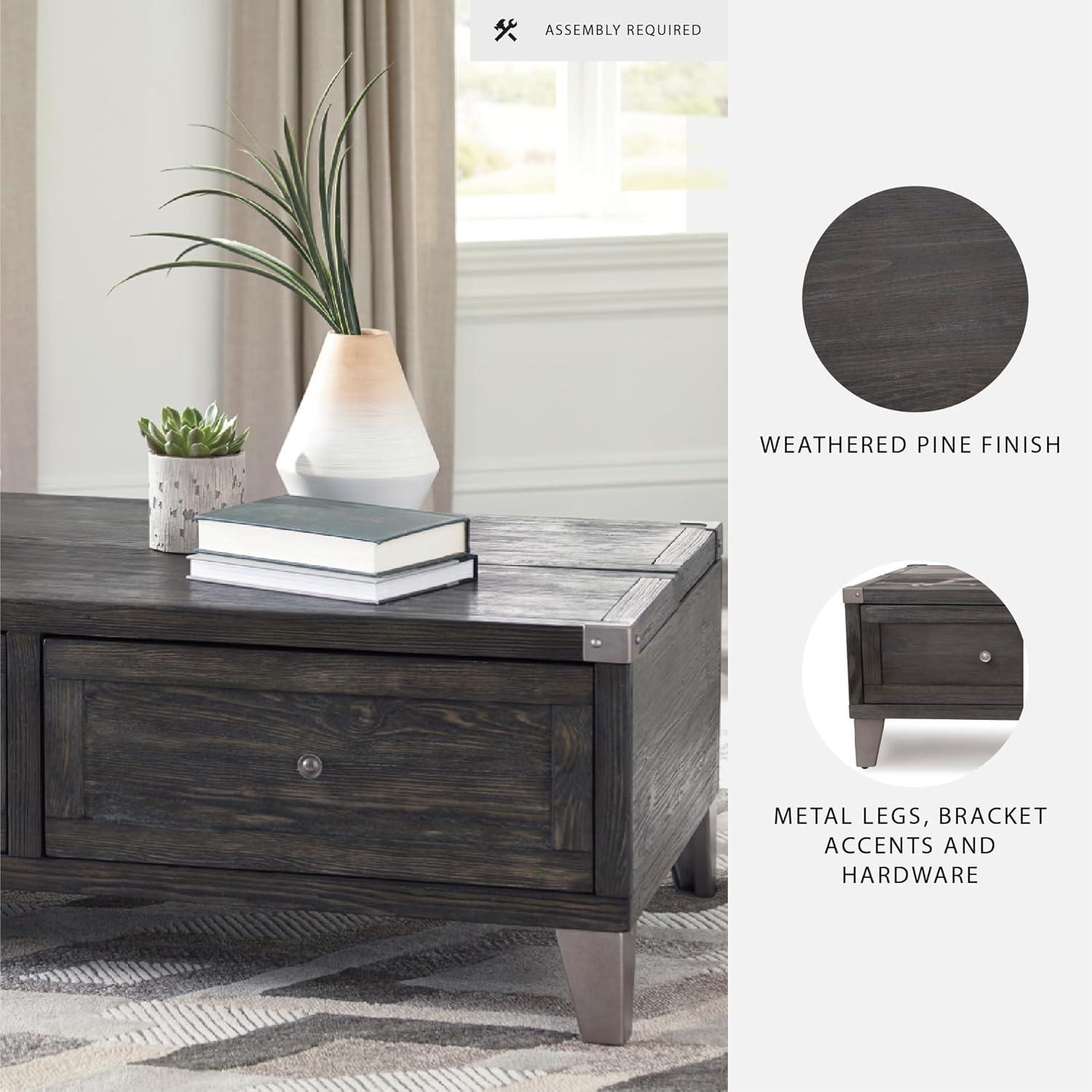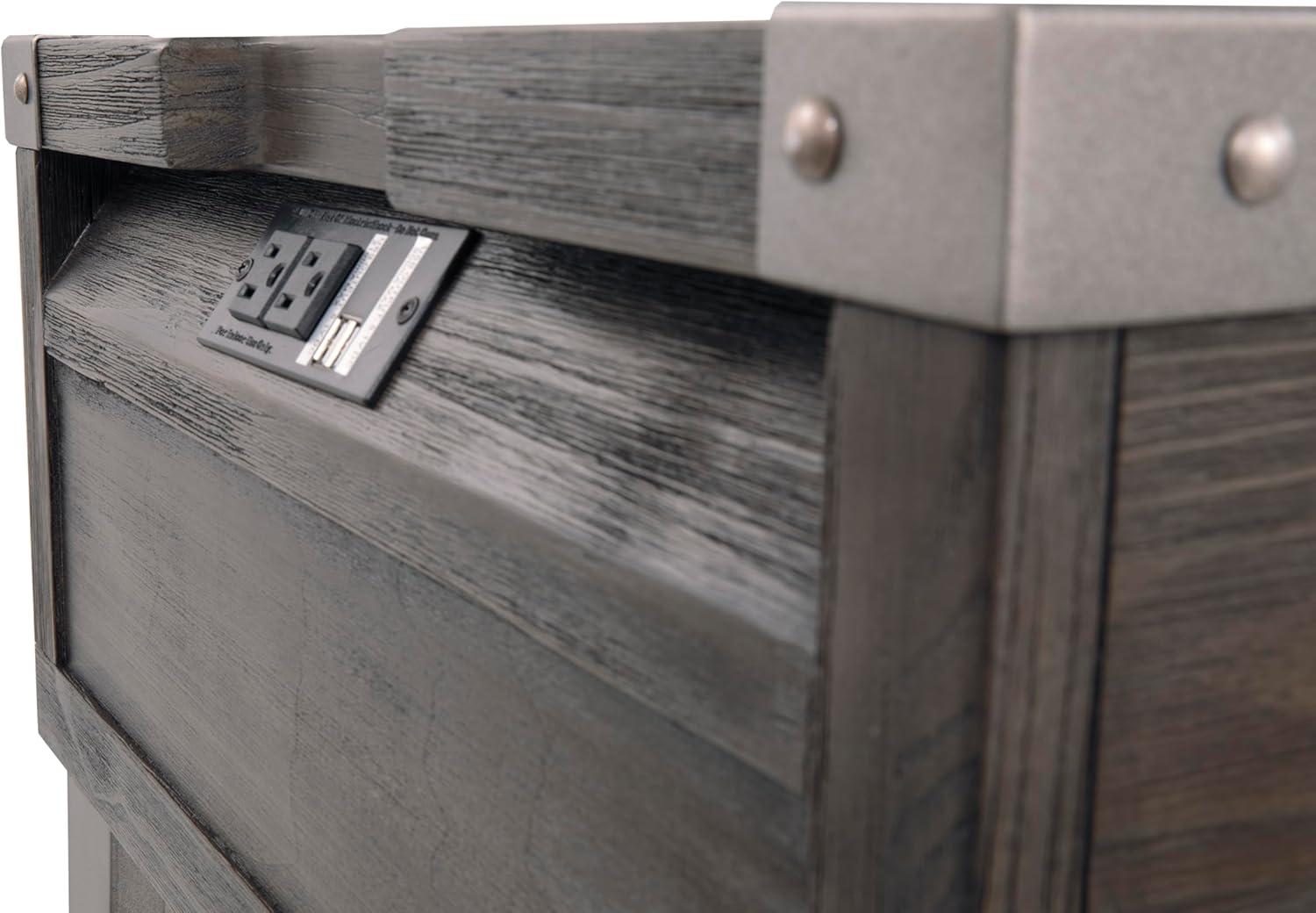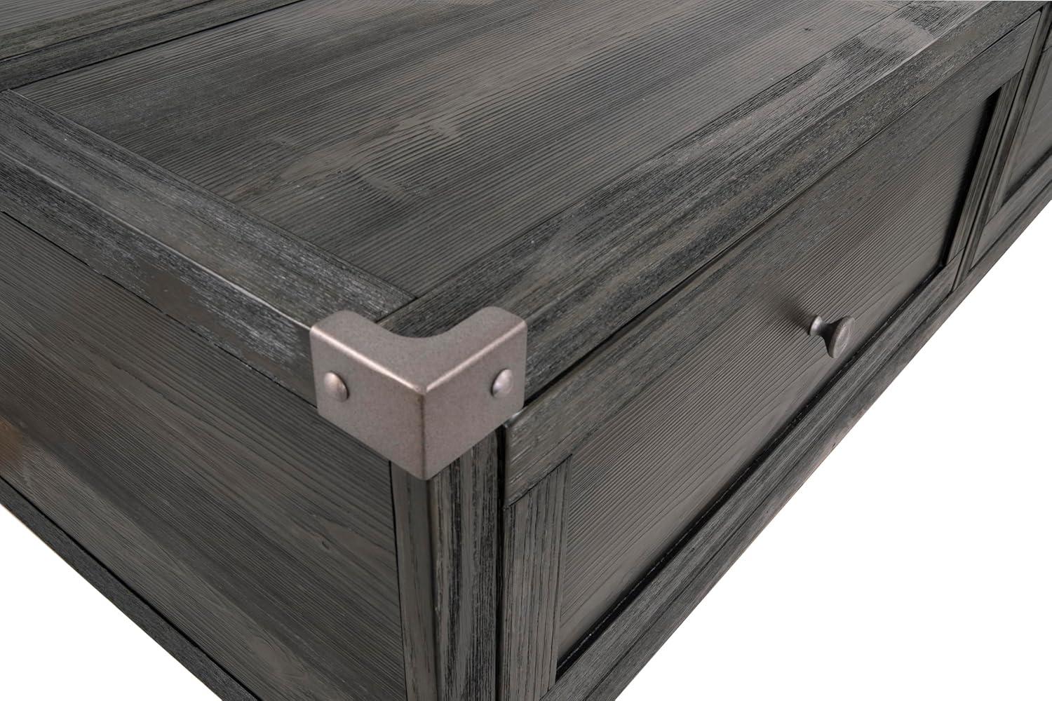 Signature Design by Ashley Todoe Industrial Square End Table with 1 Drawer, 2 Outlets and 2 USB Charging Ports, Dark Gray with Weathered Pine Finish(Dark Gray)