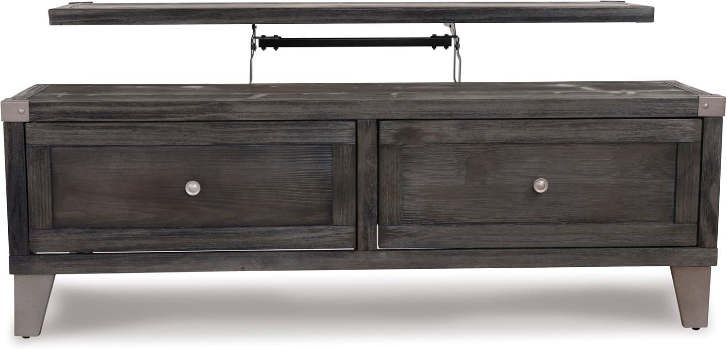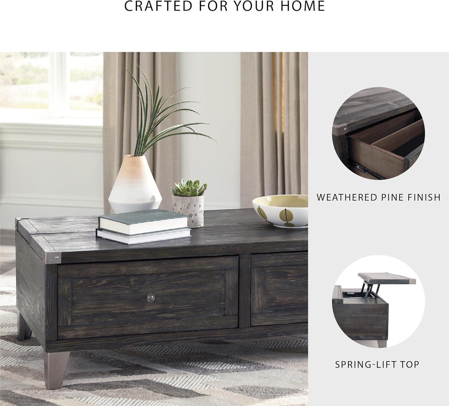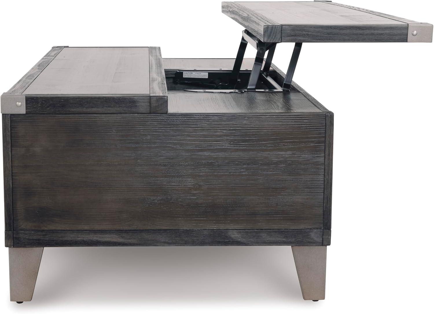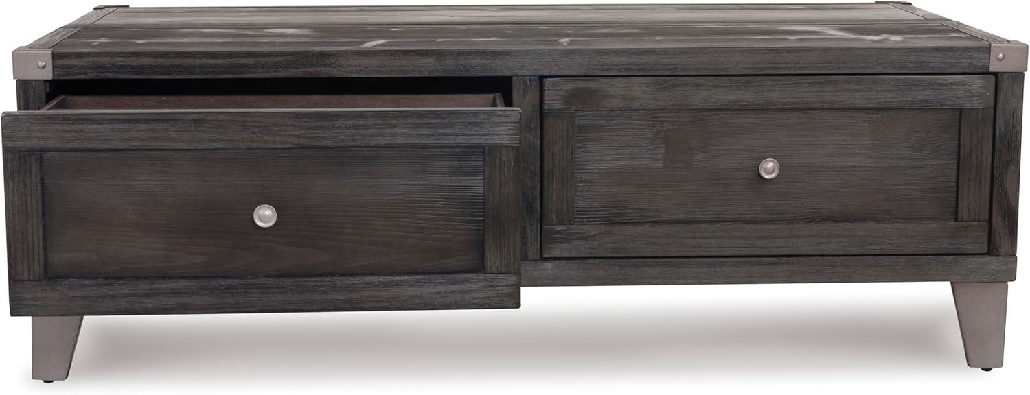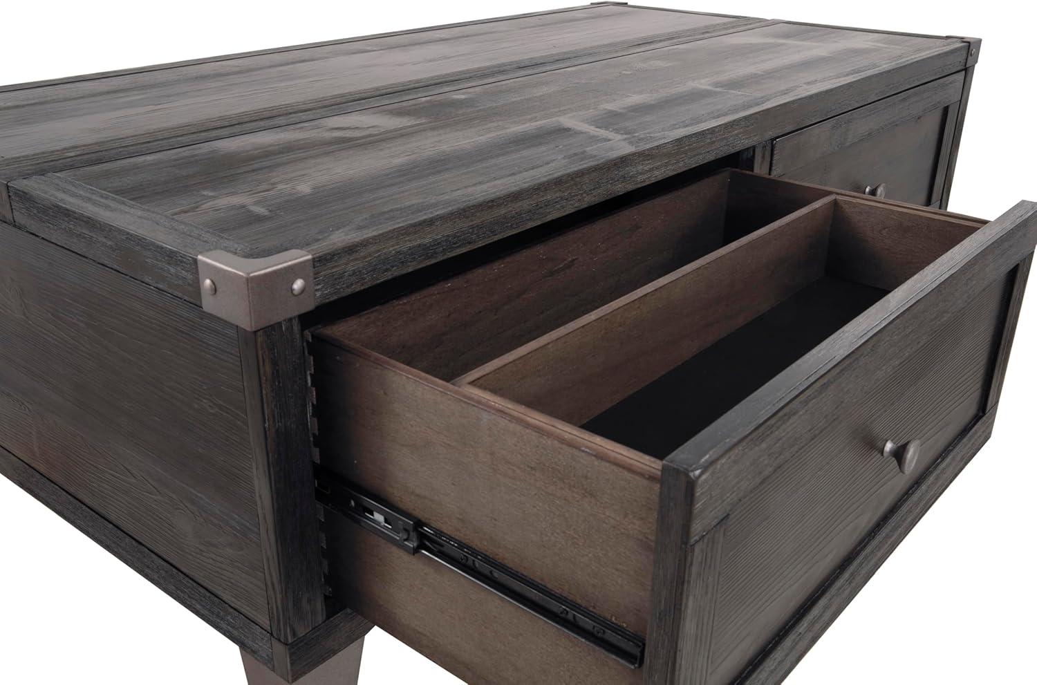 Signature Design by Ashley Todoe Industrial Square End Table with 1 Drawer, 2 Outlets and 2 USB Charging Ports, Dark Gray with Weathered Pine Finish(Dark Gray)